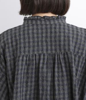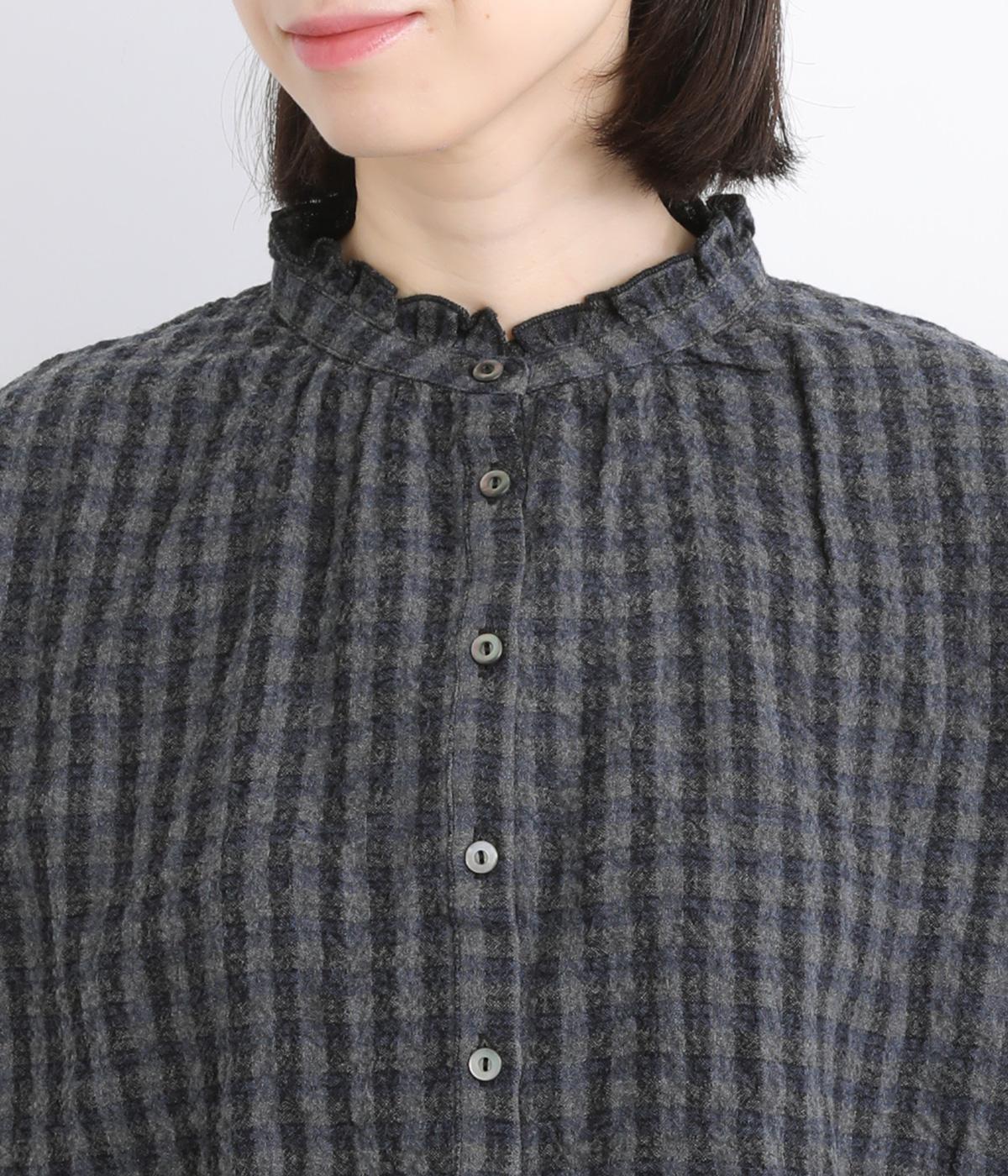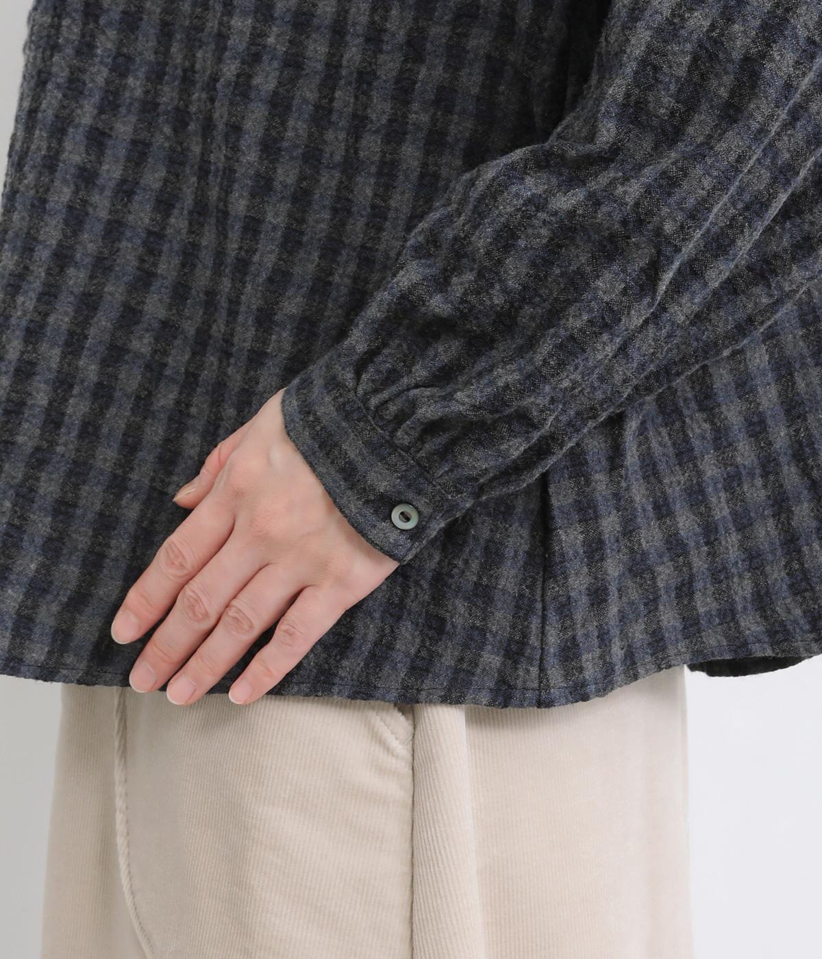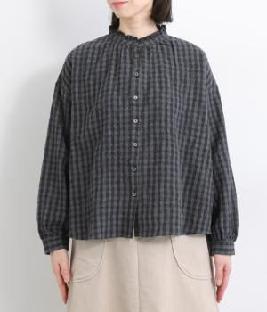 ギンガムチェックにフリルカラーで着こなしのポイントになる一枚。サイズ感もちょうどよく、ゆったりとしたスウェットやニットのインナー使いもおすすめ。ふわりとした袖も可愛らしく、甘すぎないフェミニンさが魅力です。