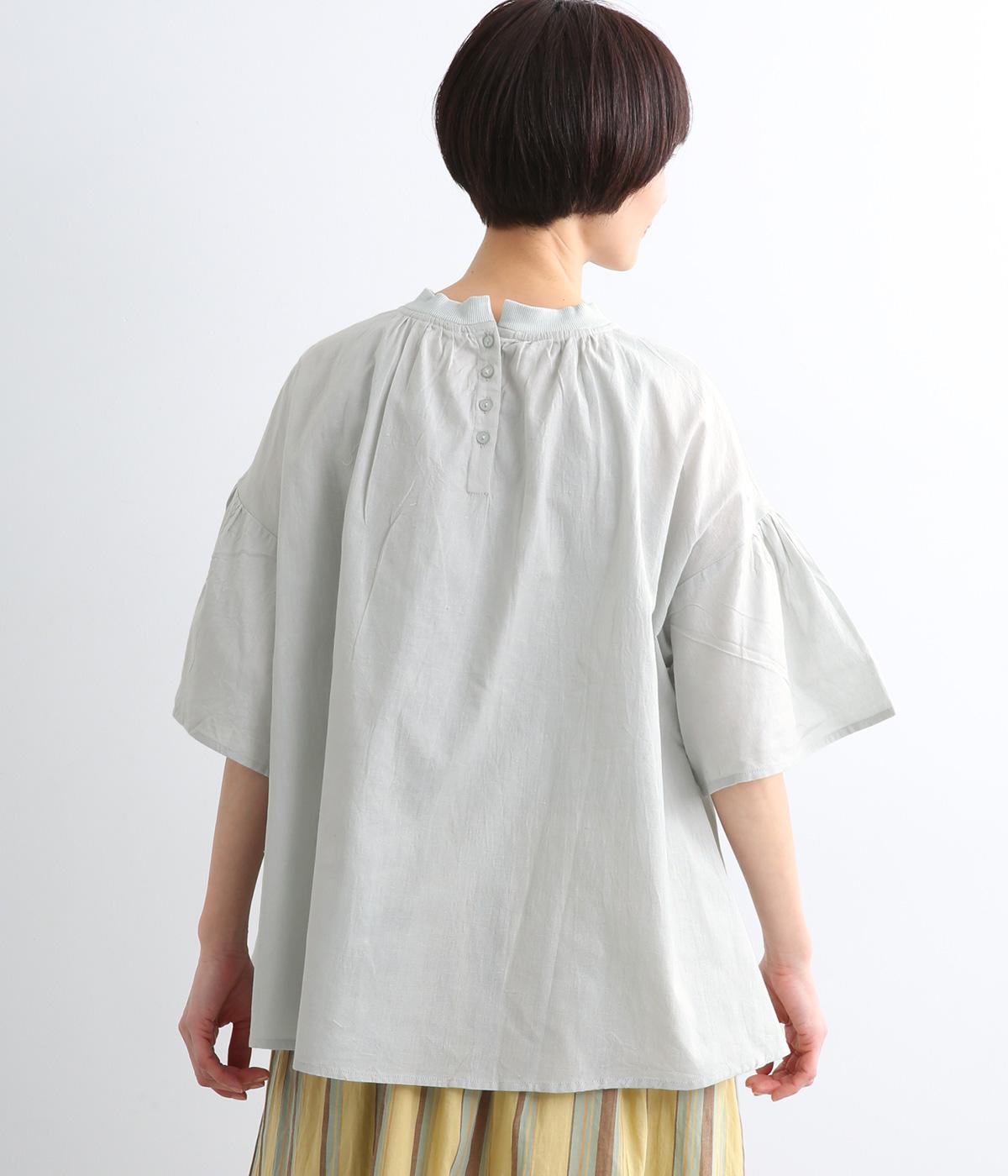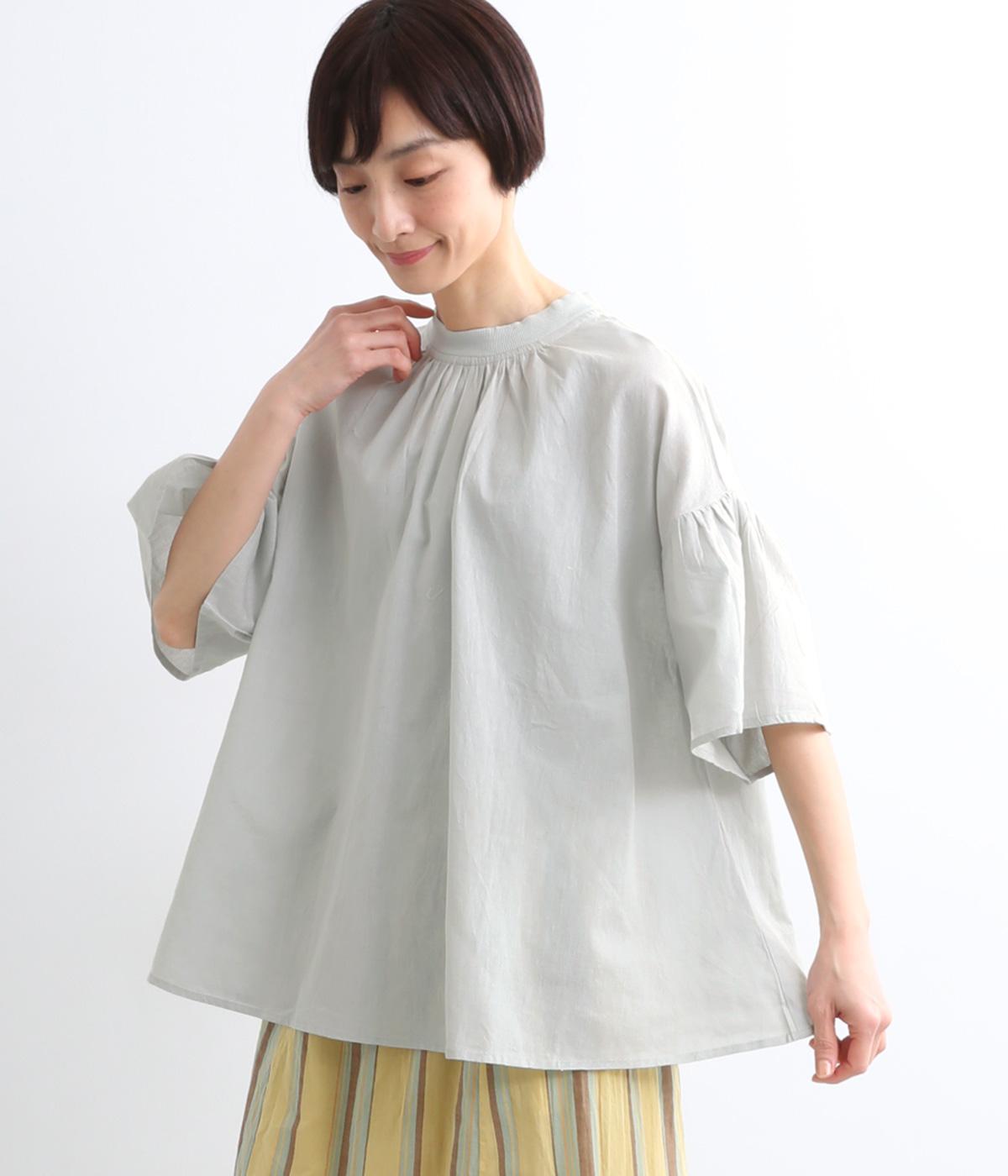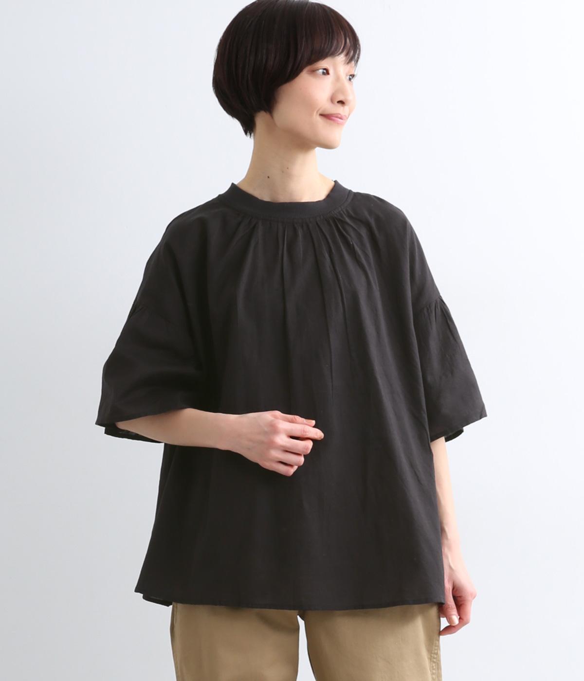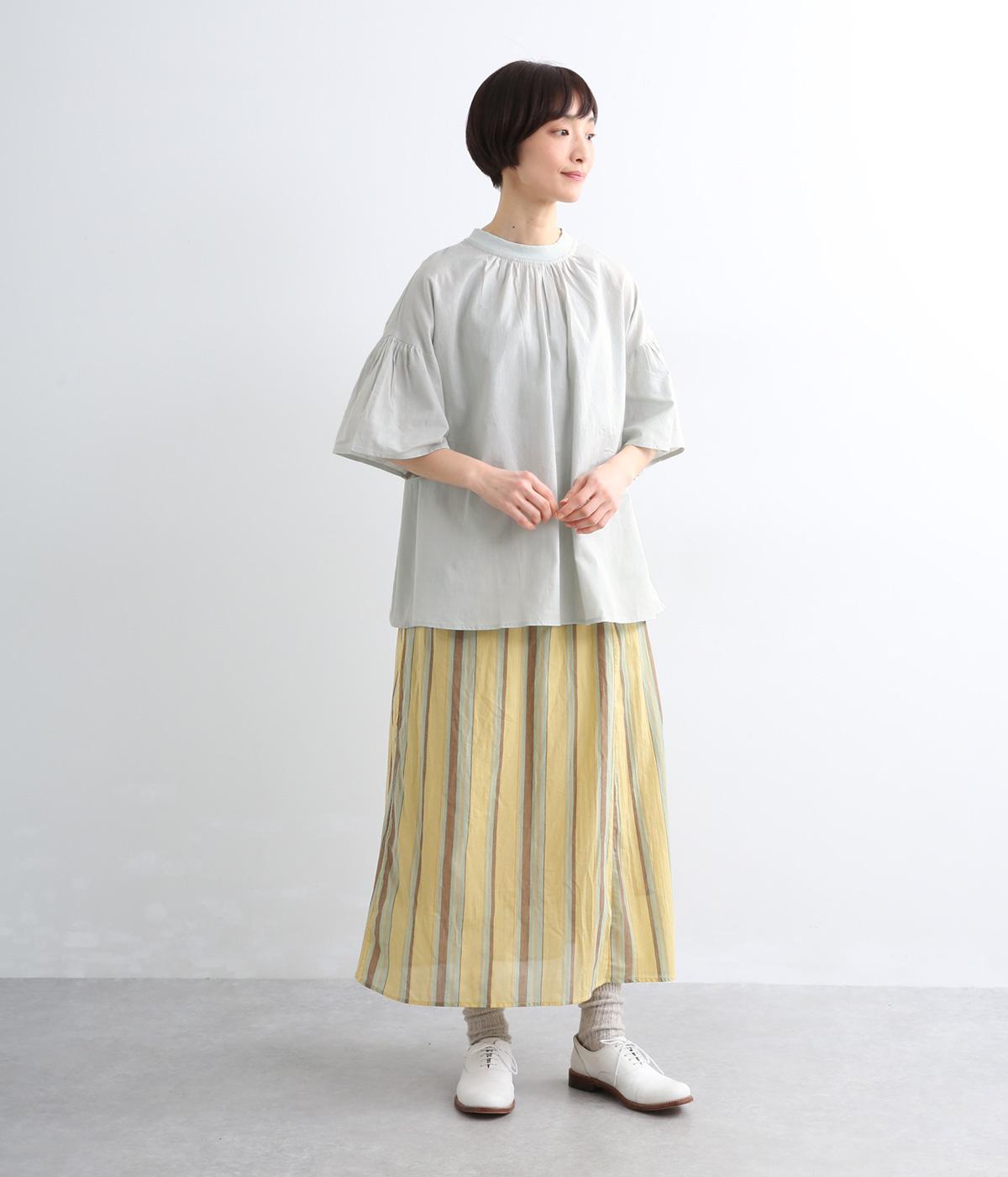 ギャザーでたっぷり生地を用いた、風に泳ぐフレアシルエットが優雅な印象を与えます。肌にまとわりつきにくく風が気持ちよく通る快適な着心地も魅力のひとつ。襟ぐりのリブが適度にカジュアルダウンさせ、後ろボタンが着脱をアシスト。