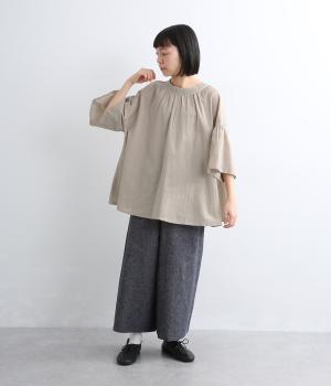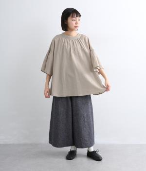 天然素材ならではの風合いが心地よいコットンリネンの混紡生地を使用。涼し気な肌触りで通気性もよく、汗ばむ季節も快適な着用感が得られます。