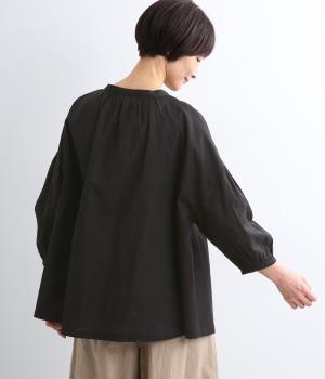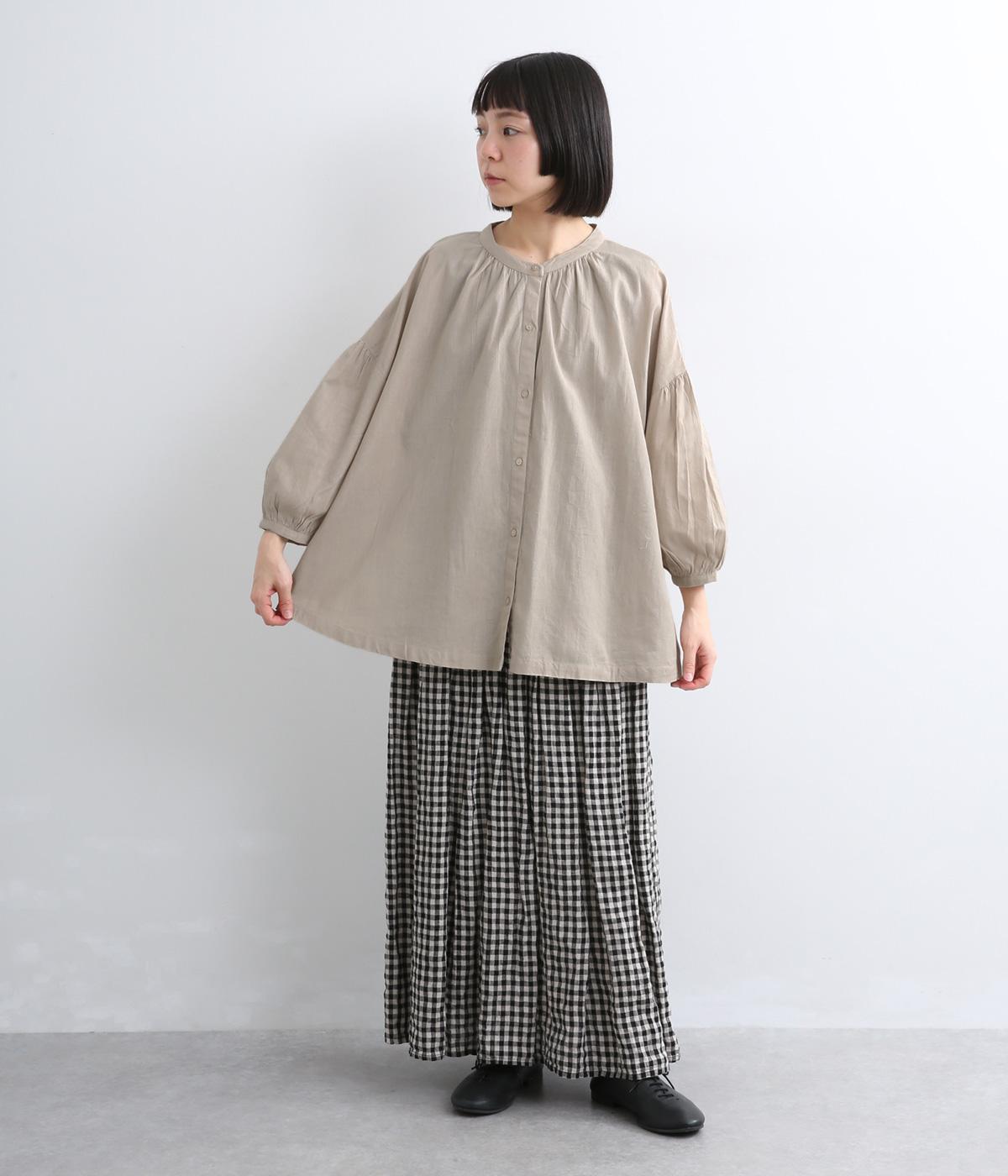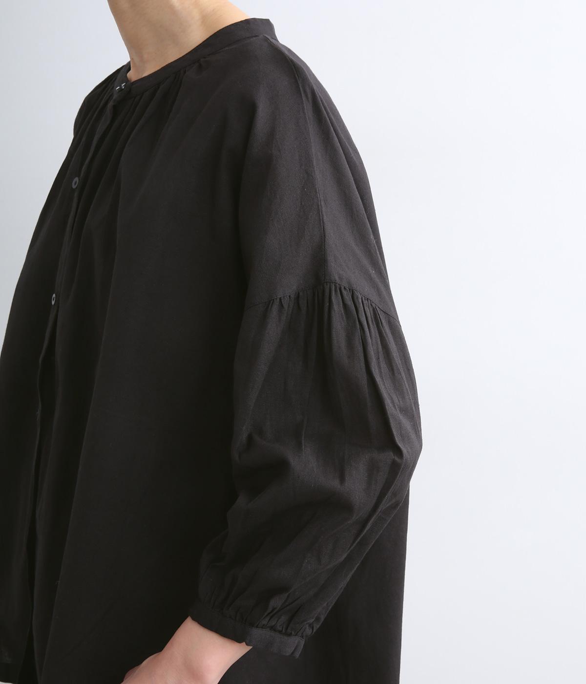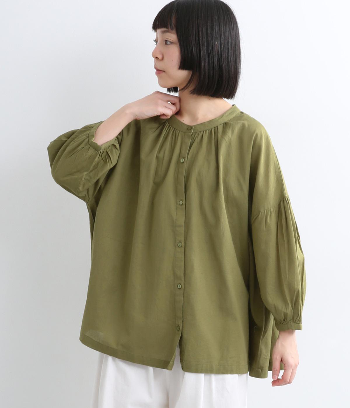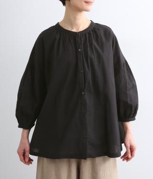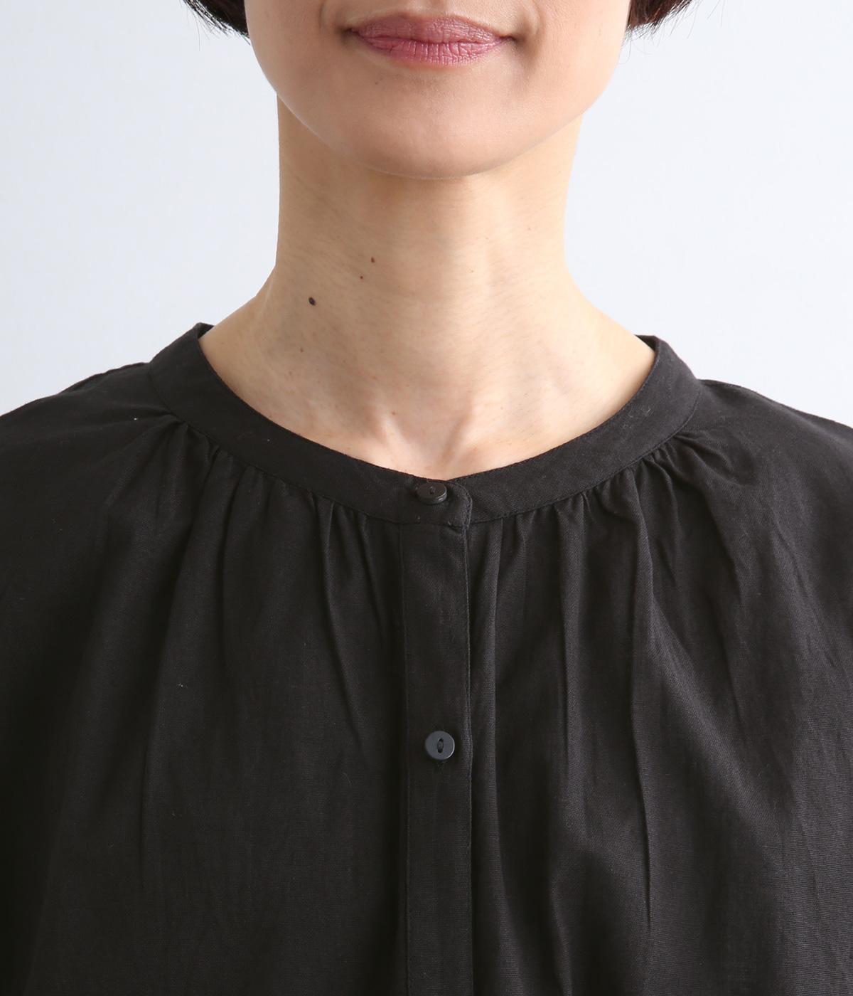 体のラインを拾いにくい、ふわりとしたディテールが特徴的なギャザープルオーバー。すっきりしたバンドカラーや手首をきれいに見せた袖丈がちょうどいい抜け感に。羽織りとしてレイヤードスタイルを楽しむのもおすすめ。