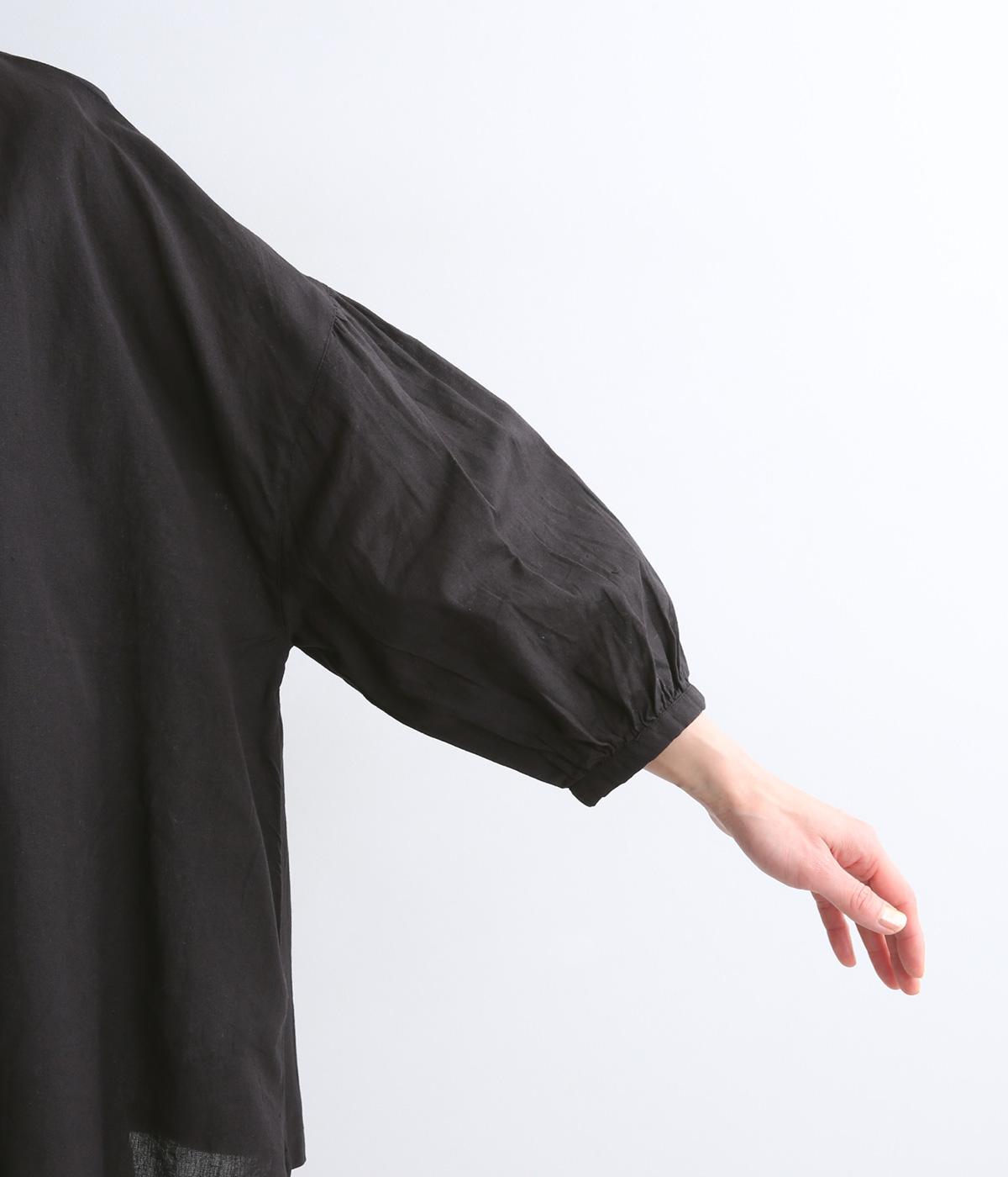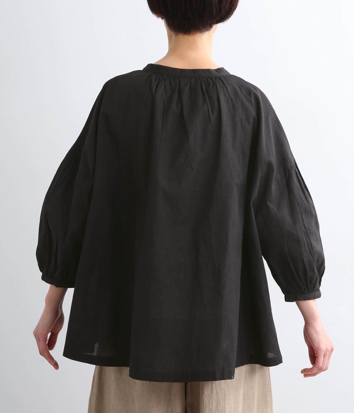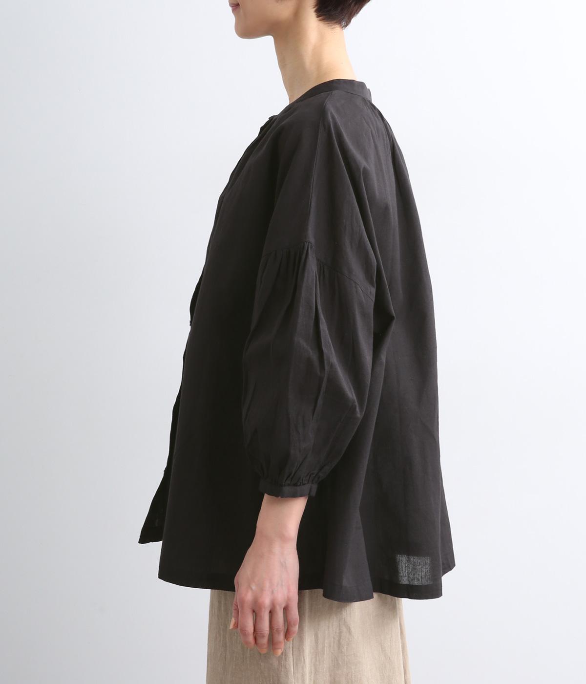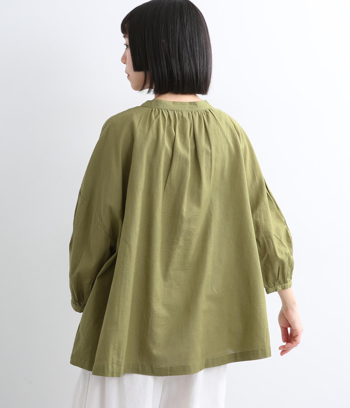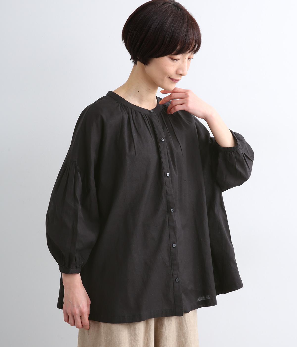 体のラインを拾いにくい、ふわりとしたディテールが特徴的なギャザープルオーバー。すっきりしたバンドカラーや手首をきれいに見せた袖丈がちょうどいい抜け感に。羽織りとしてレイヤードスタイルを楽しむのもおすすめ。