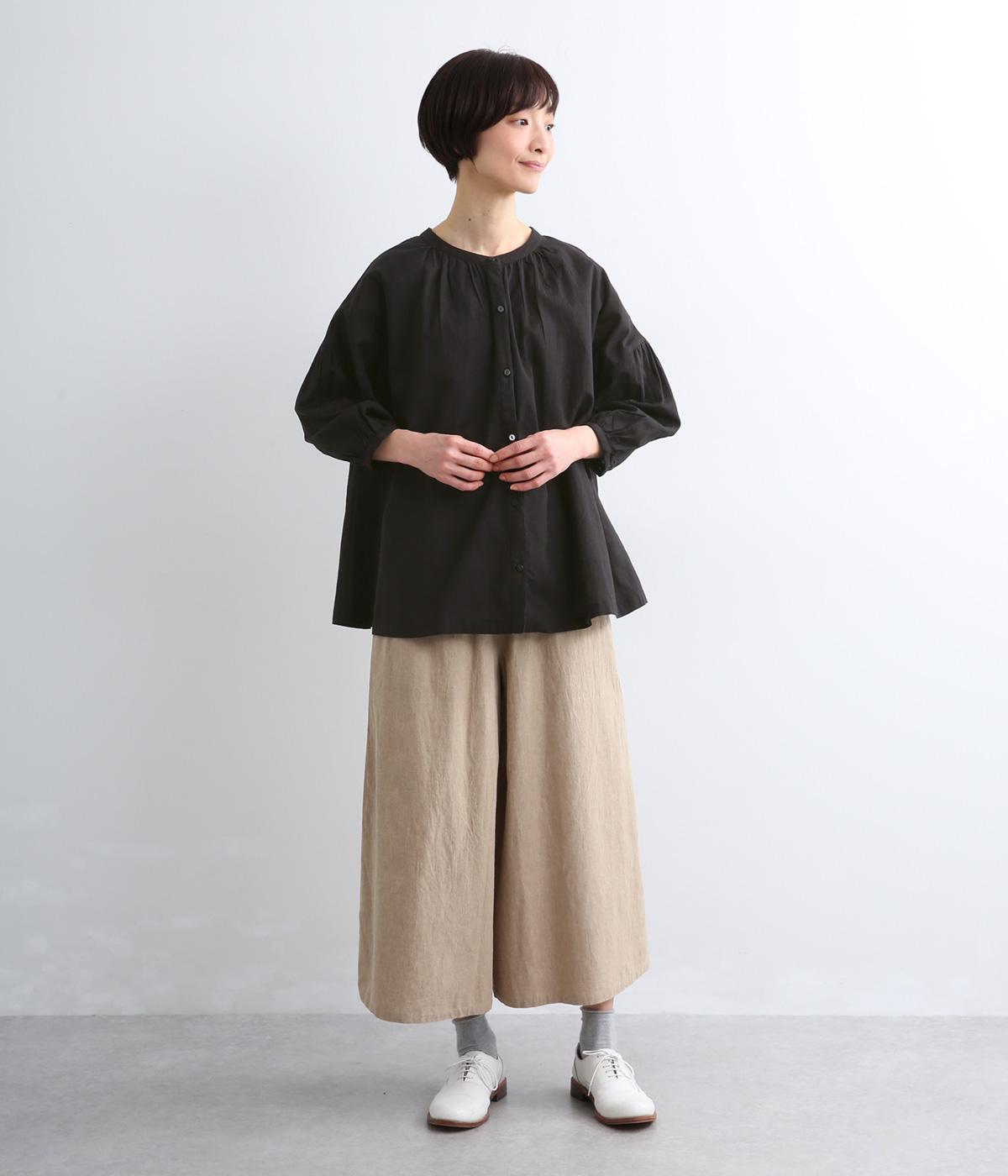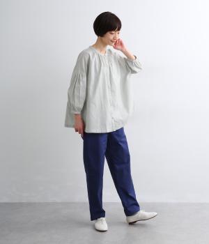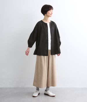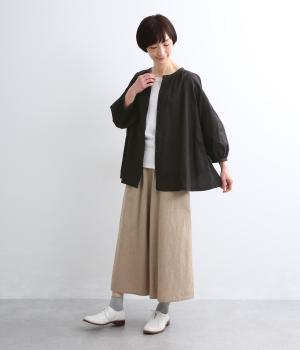 天然素材ならではの風合いが心地よいコットンリネンの混紡生地を使用。涼し気な肌触りで通気性もよく、汗ばむ季節も快適な着用感が得られます。