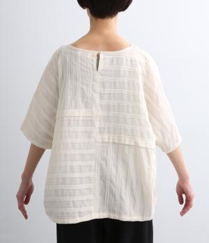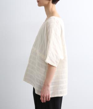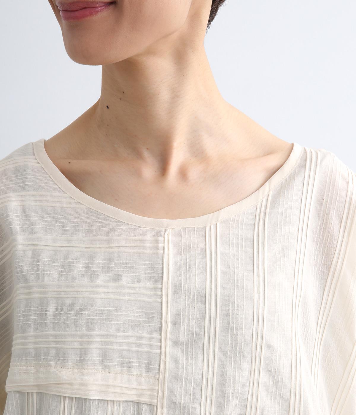 表情豊かなストライプ柄を浮かび上がらせたタックドビー生地を贅沢に使用。軽やかで通気性に優れたインド綿を用いているので、さらりとドライでやわらかなタッチに。