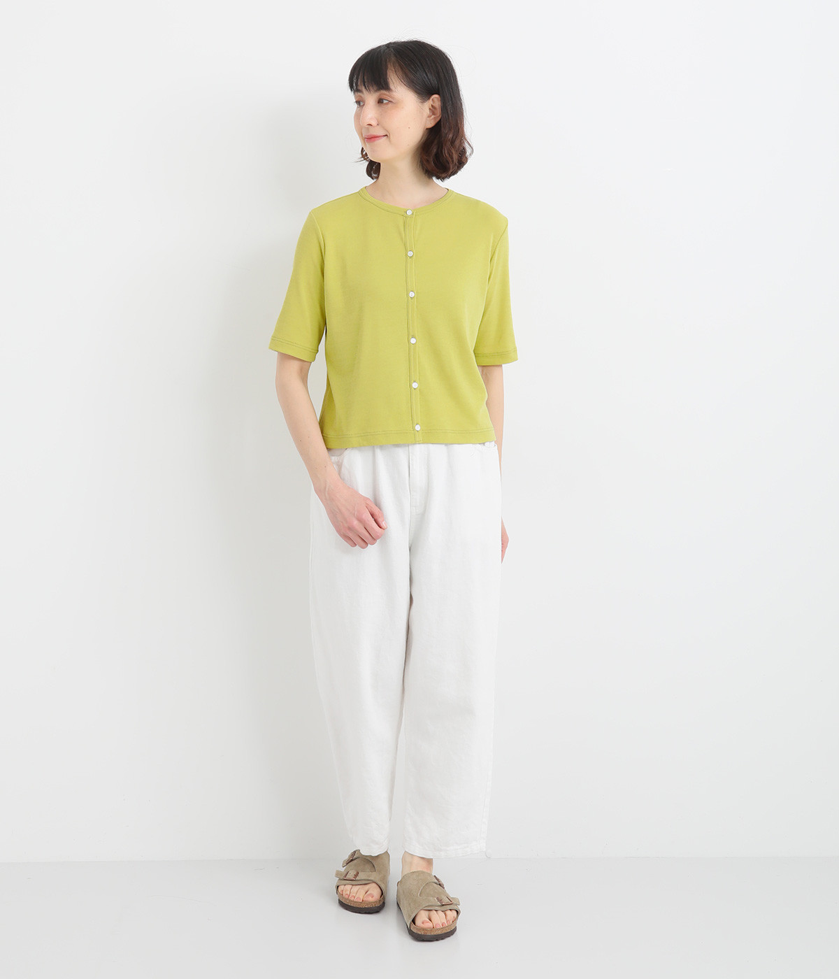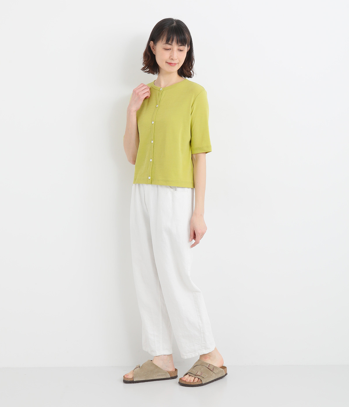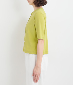 サッと羽織りやすく、Tシャツ感覚でも着こなせるカーディガンです。すこしゆとりのある身幅にすっきりした着丈のコンパクトなシルエット。夏場は冷房対策に持ち歩くなど、ロングシーズン活躍します。