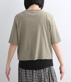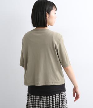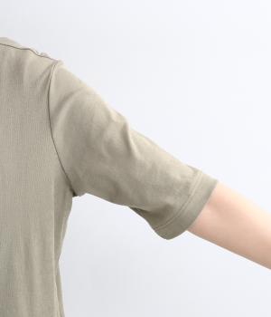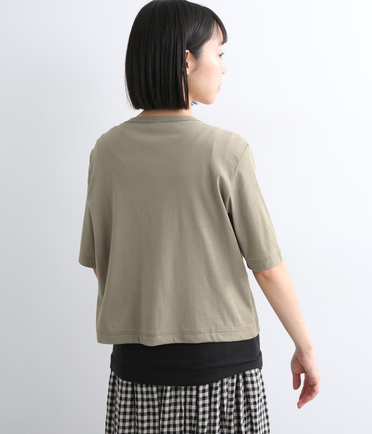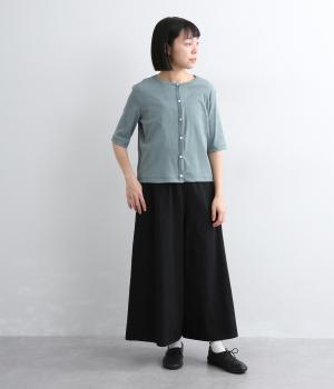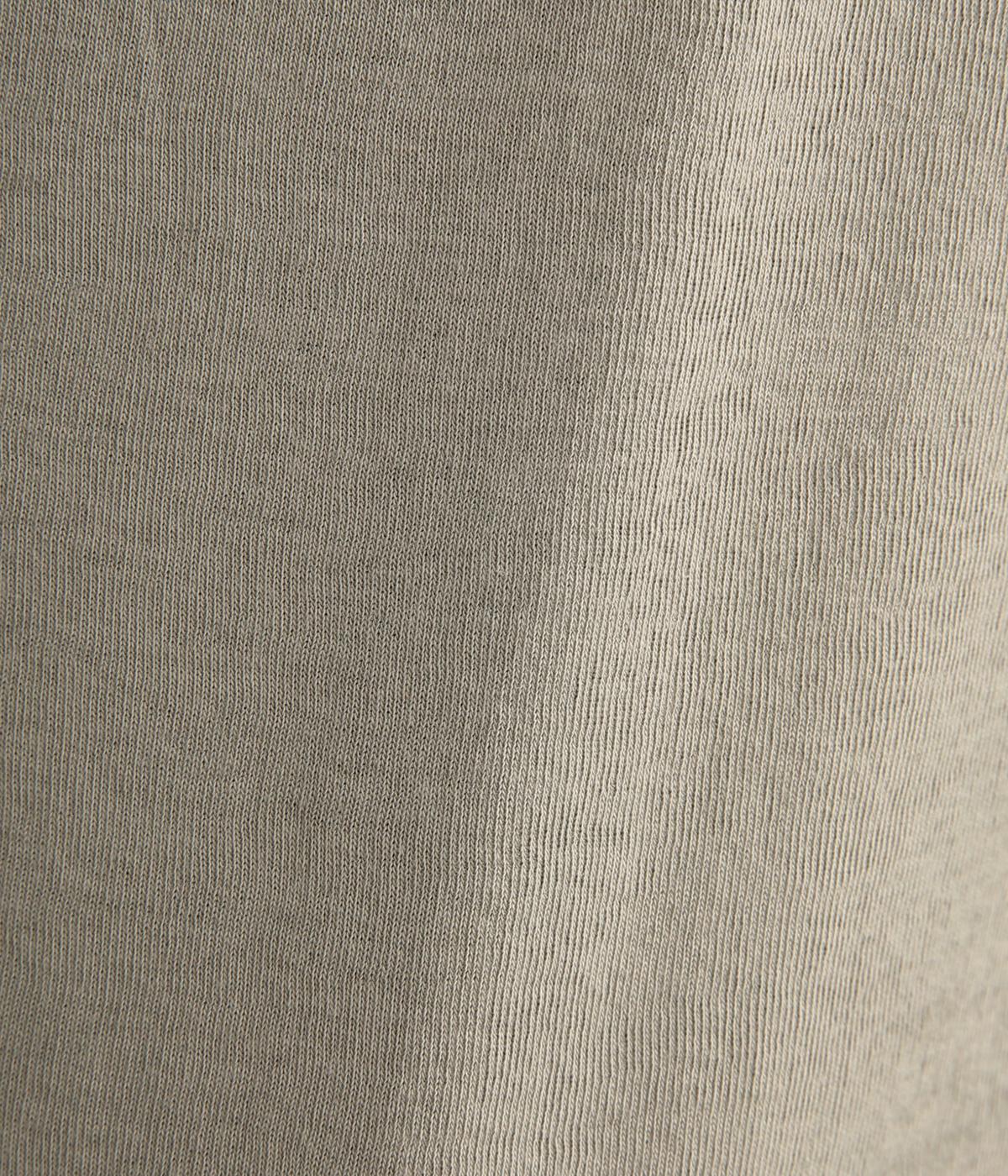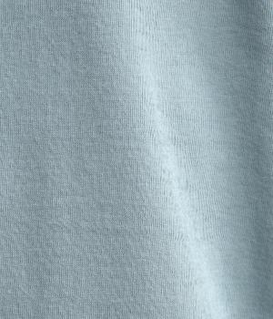 強撚糸にガス焼きをほどこし、なめらかで光沢感のある綿ガーゼフライス生地に。ガーゼ調に編み立て、薄手でやわらかく、ドライな清涼感があり肌あたりも快適です。
