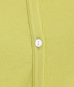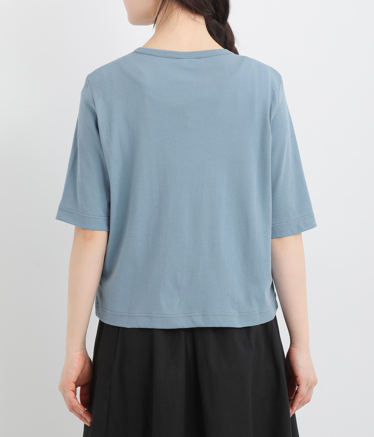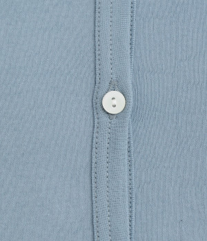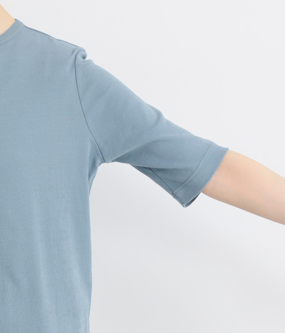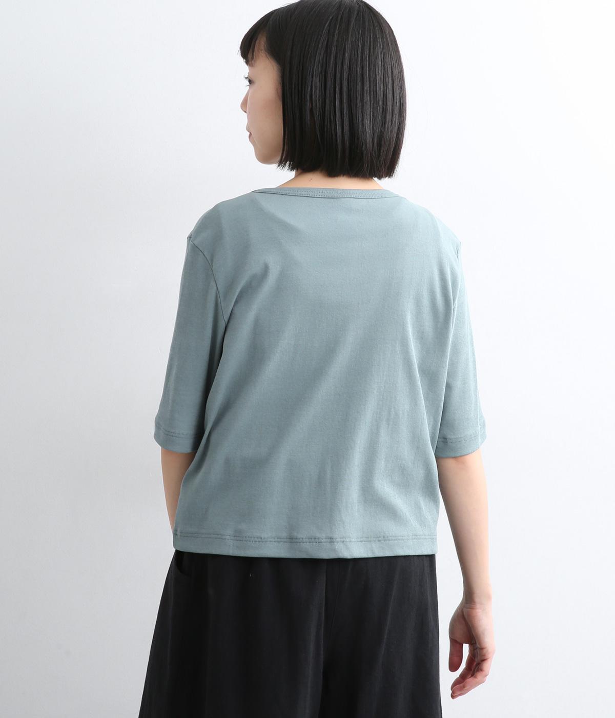 強撚糸にガス焼きをほどこし、なめらかで光沢感のある綿ガーゼフライス生地に。ガーゼ調に編み立て、薄手でやわらかく、ドライな清涼感があり肌あたりも快適です。