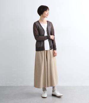 極細のリネンとナイロンを撚糸した糸で編み上げました。麻の清涼感を残しながらも、ナイロンを加えることによって毛羽立ちが抑えられ、取り扱いやすく仕上がっています。