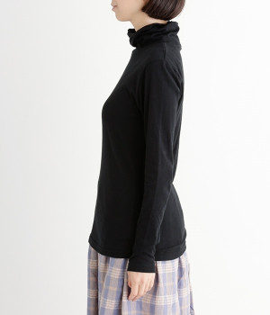 オーガニックコットンを薄くガーゼの様に編んだ生地で仕立てられたプルオーバーです。上品で優しい杢調の色目と、柔らかな肌触りが特徴。衿部分に少しねじりを入れて裾部分はカーブを付け、ベーシックながらもお洒落要素をプラスすることで重ね着しやすいアイテムになっています。