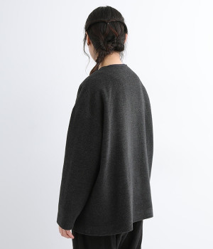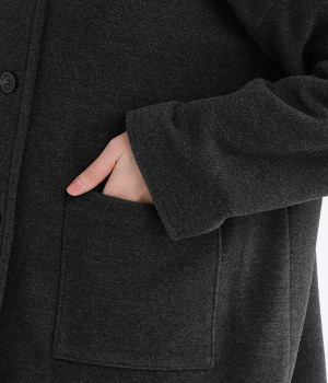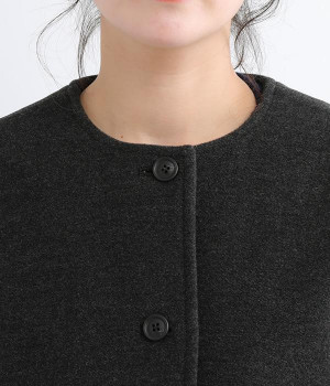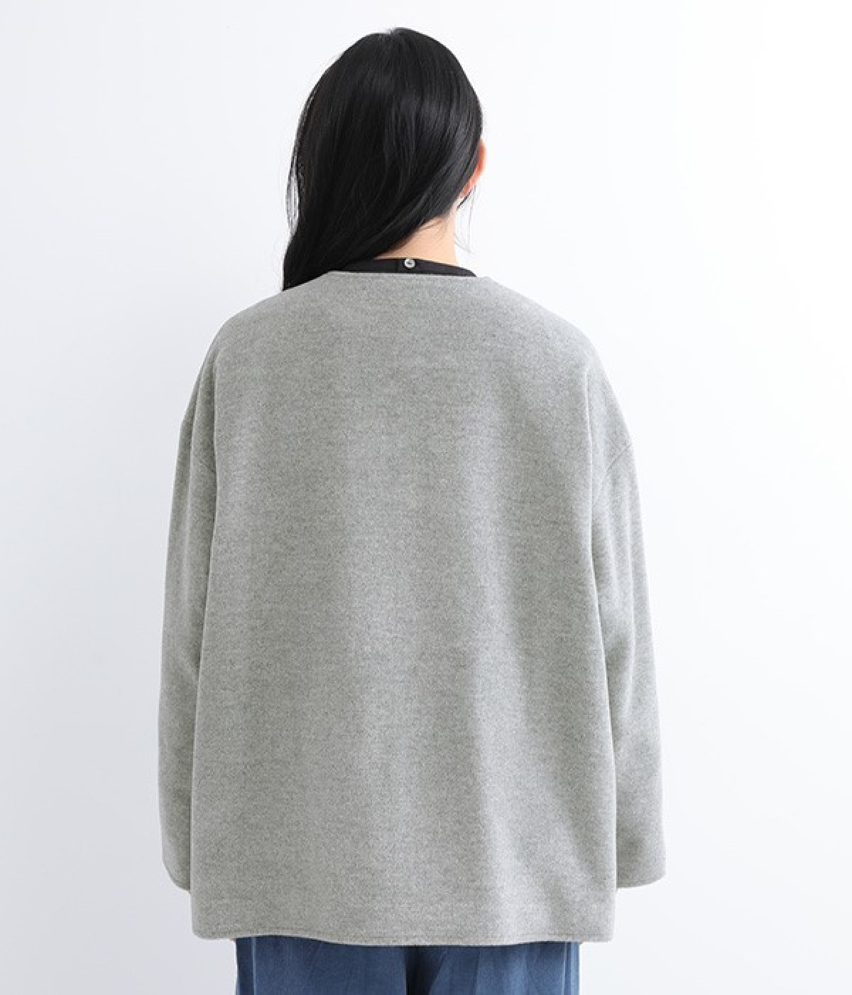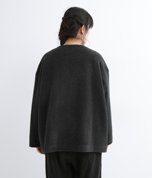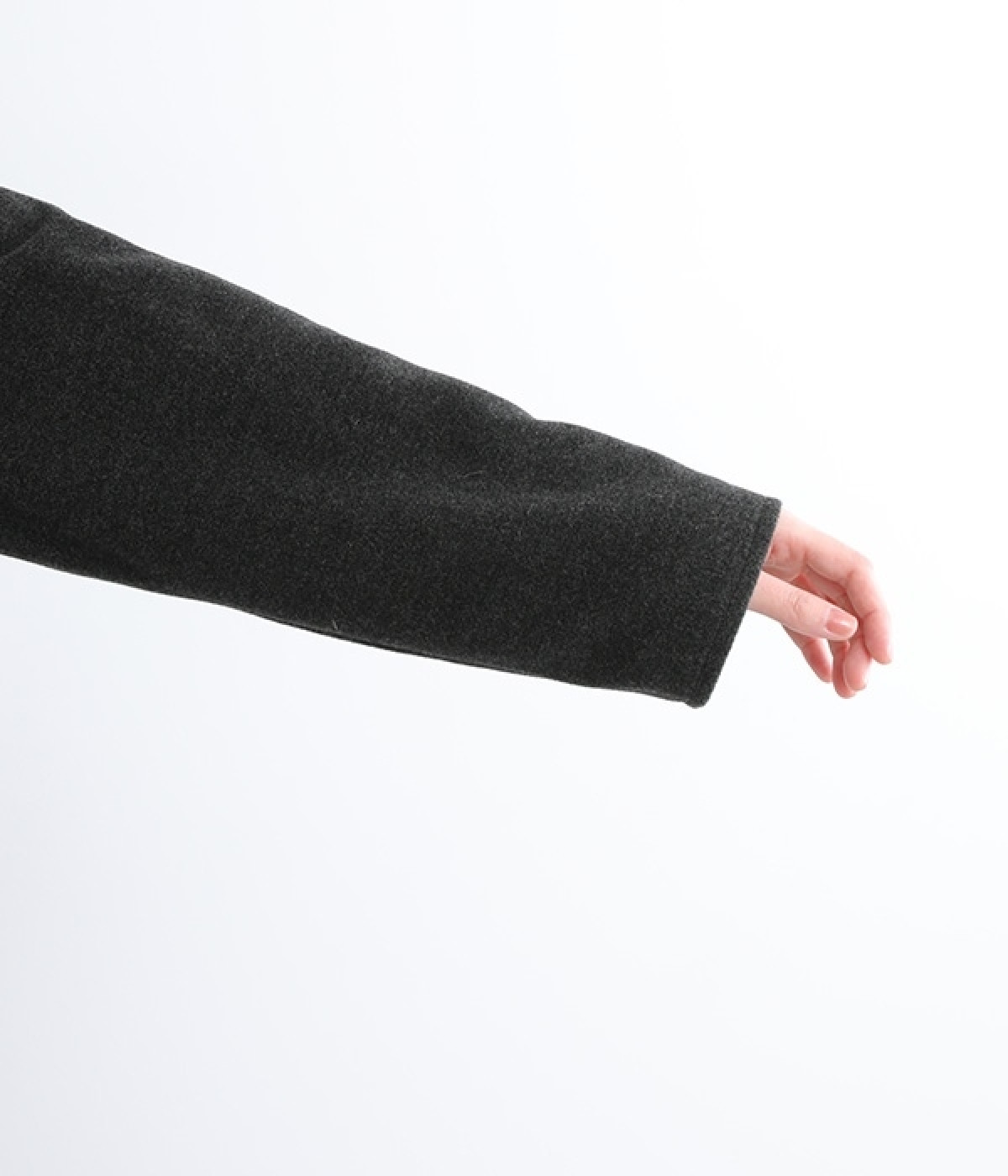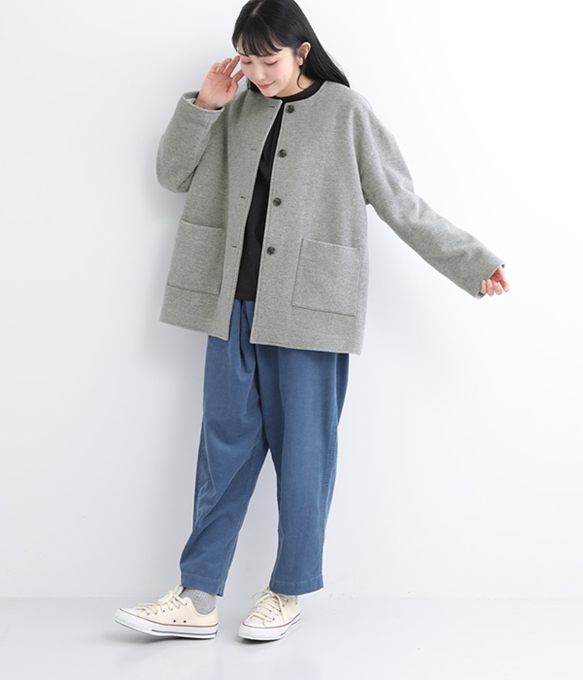 しっかりとしたスエードのような、なめらかな肌触りがとても心地よいジャケットです。軽くあたたかみのあるアンゴラ混素材で仕立てました。やわらかな肌あたりのコットン裏地もセットして、着脱もスムーズに。襟高のインナーや巻きものでアクセントをつけやすいノーカラーデザインです。