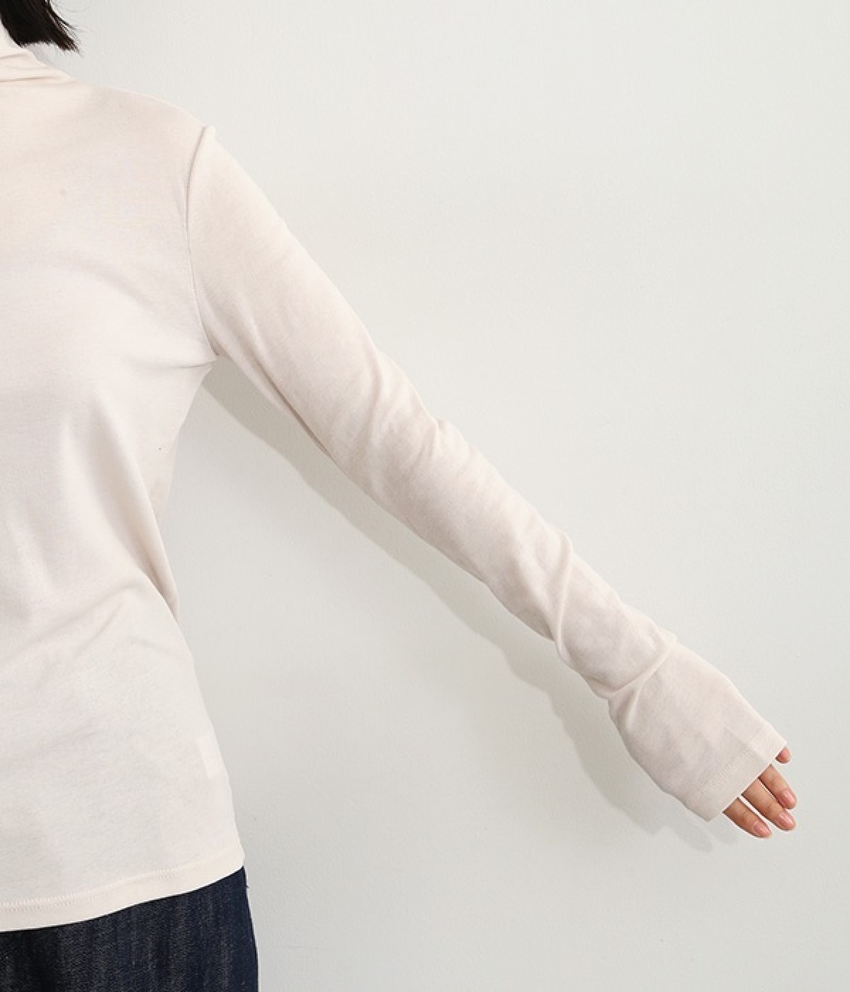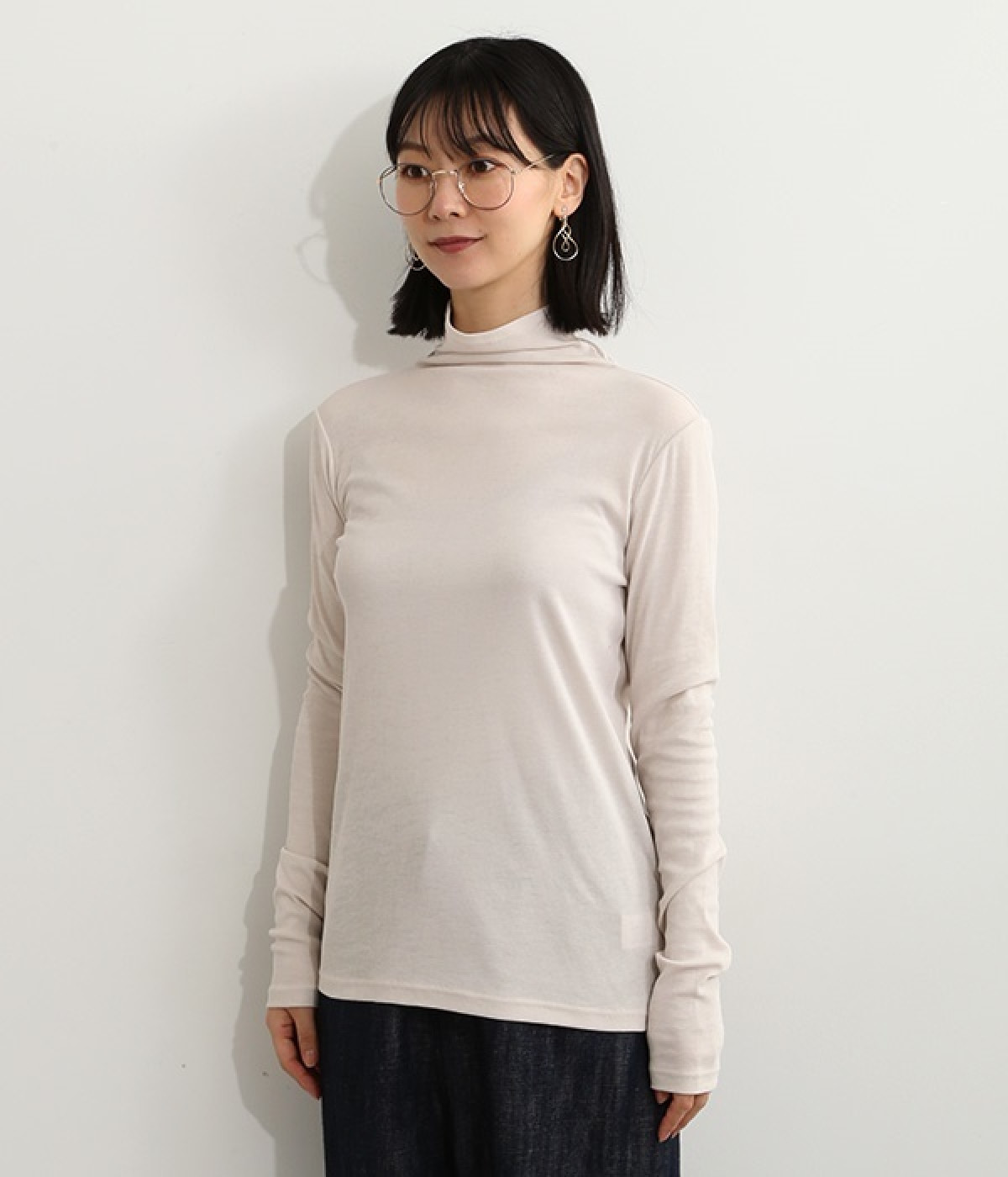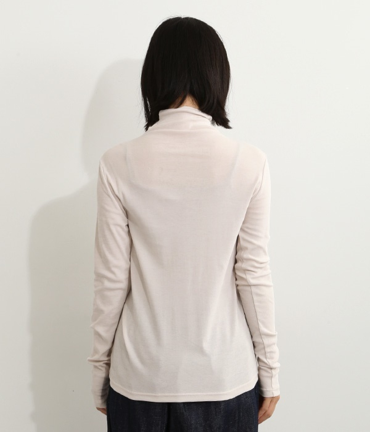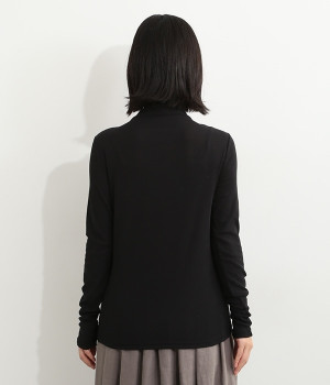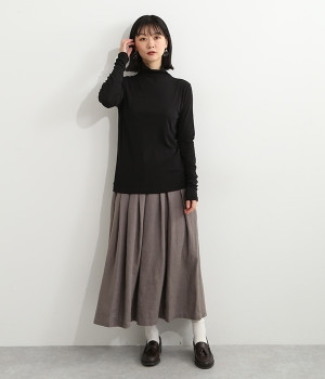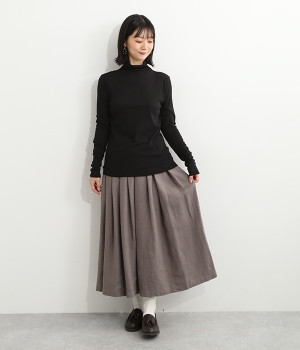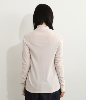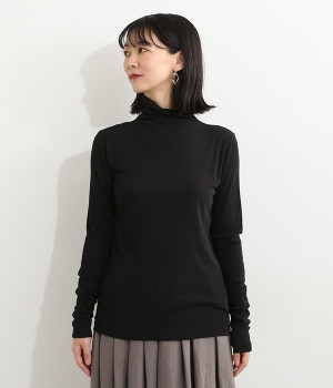 ハイネックで首元をカバーしながらも、くしゅっとしたやわらかなデザインで締めつけが少ないプルオーバーです。強撚糸をガス焼きすることで、ドライタッチな風合いに仕上げたコットンのガーゼフライスを使用。品の良い透け感がある薄手の素材なので、ニットやワンピースのインナーとしても重宝します。袖口を見せて配色を楽しめるように、袖丈は少し長めに設定しました。
