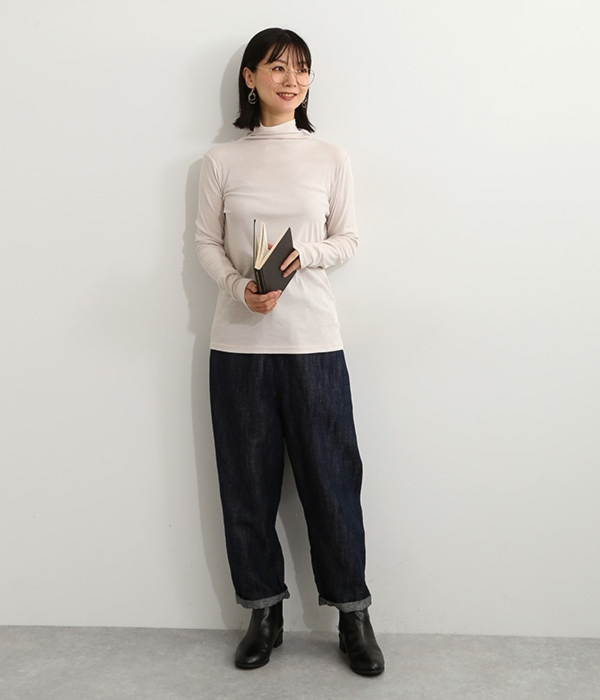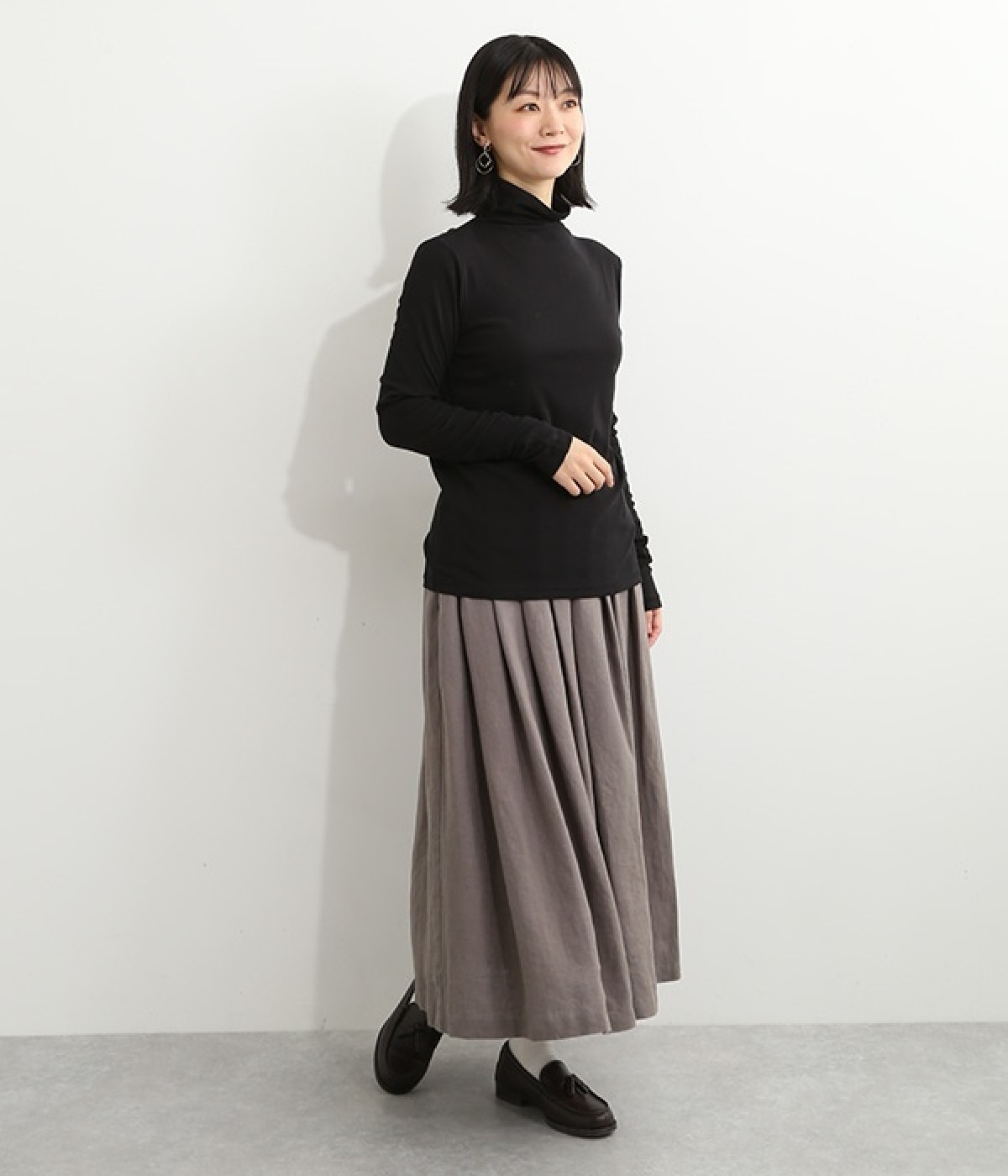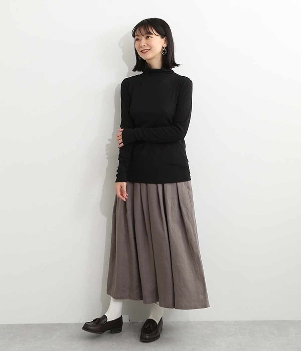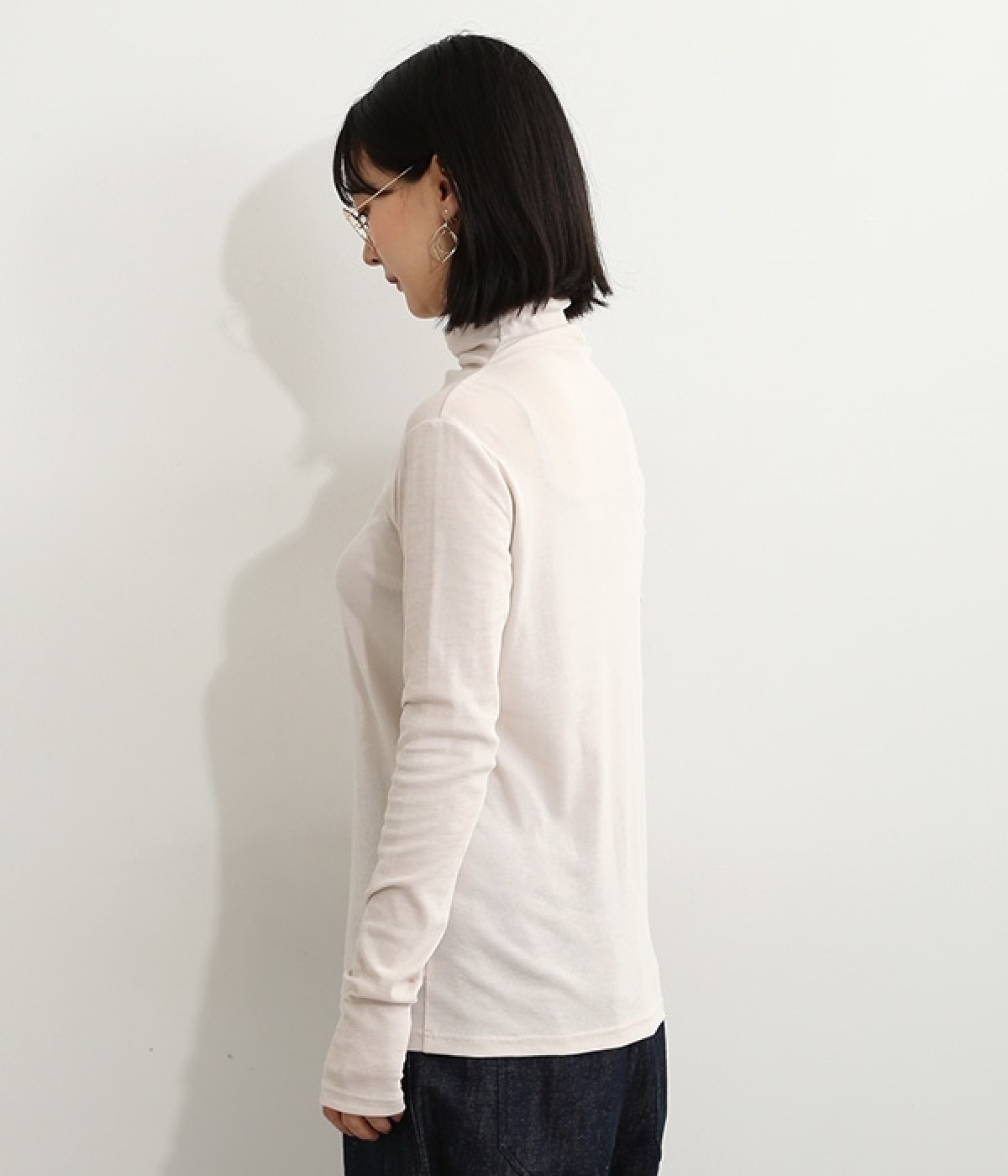 ハイネックで首元をカバーしながらも、くしゅっとしたやわらかなデザインで締めつけが少ないプルオーバーです。強撚糸をガス焼きすることで、ドライタッチな風合いに仕上げたコットンのガーゼフライスを使用。品の良い透け感がある薄手の素材なので、ニットやワンピースのインナーとしても重宝します。袖口を見せて配色を楽しめるように、袖丈は少し長めに設定しました。