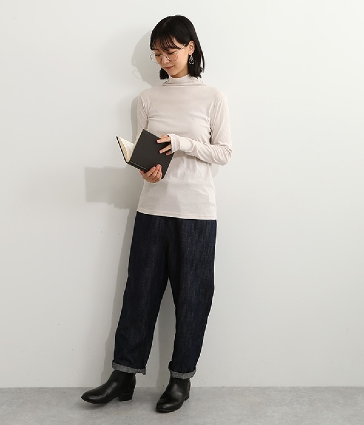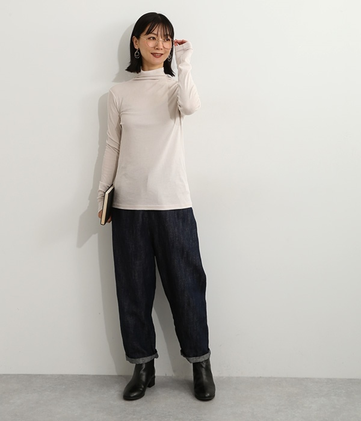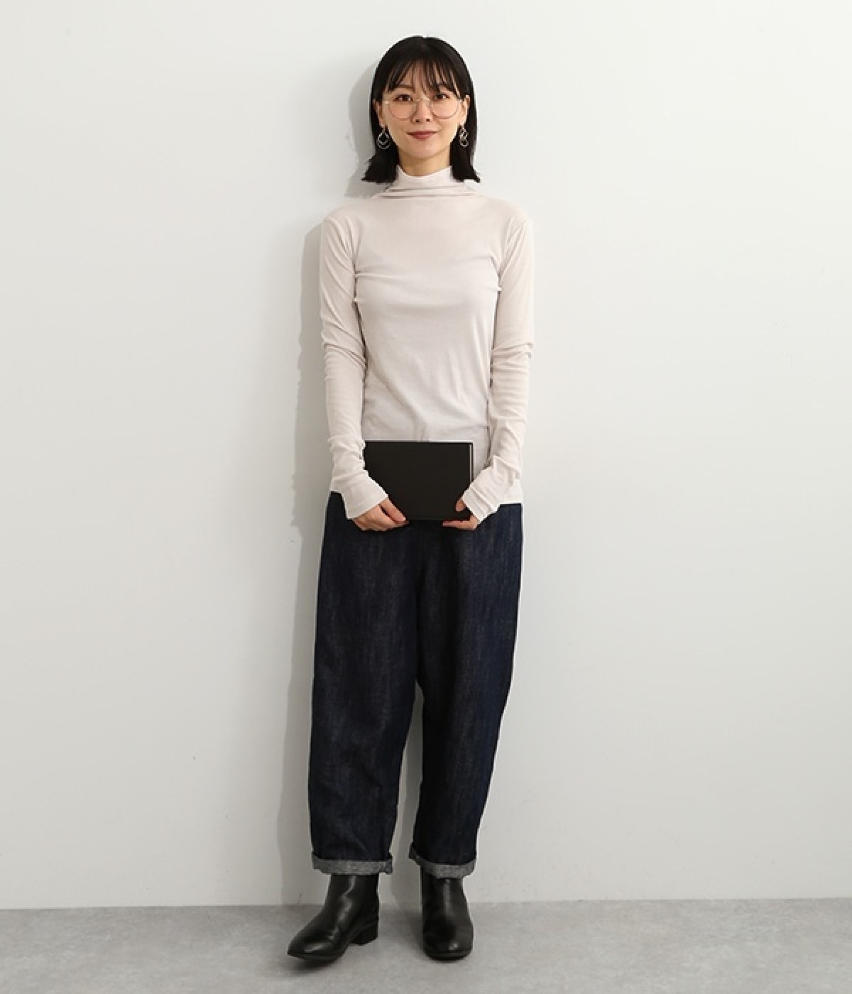 ハイネックで首元をカバーしながらも、くしゅっとしたやわらかなデザインで締めつけが少ないプルオーバーです。強撚糸をガス焼きすることで、ドライタッチな風合いに仕上げたコットンのガーゼフライスを使用。品の良い透け感がある薄手の素材なので、ニットやワンピースのインナーとしても重宝します。袖口を見せて配色を楽しめるように、袖丈は少し長めに設定しました。