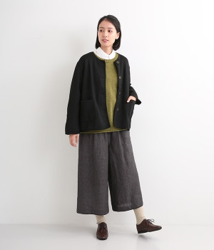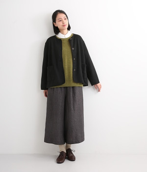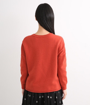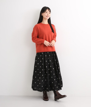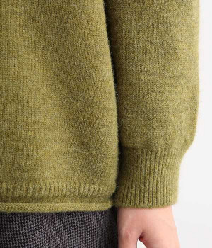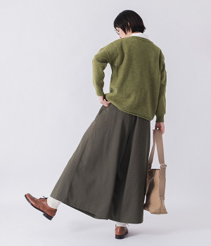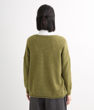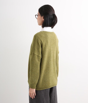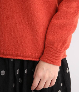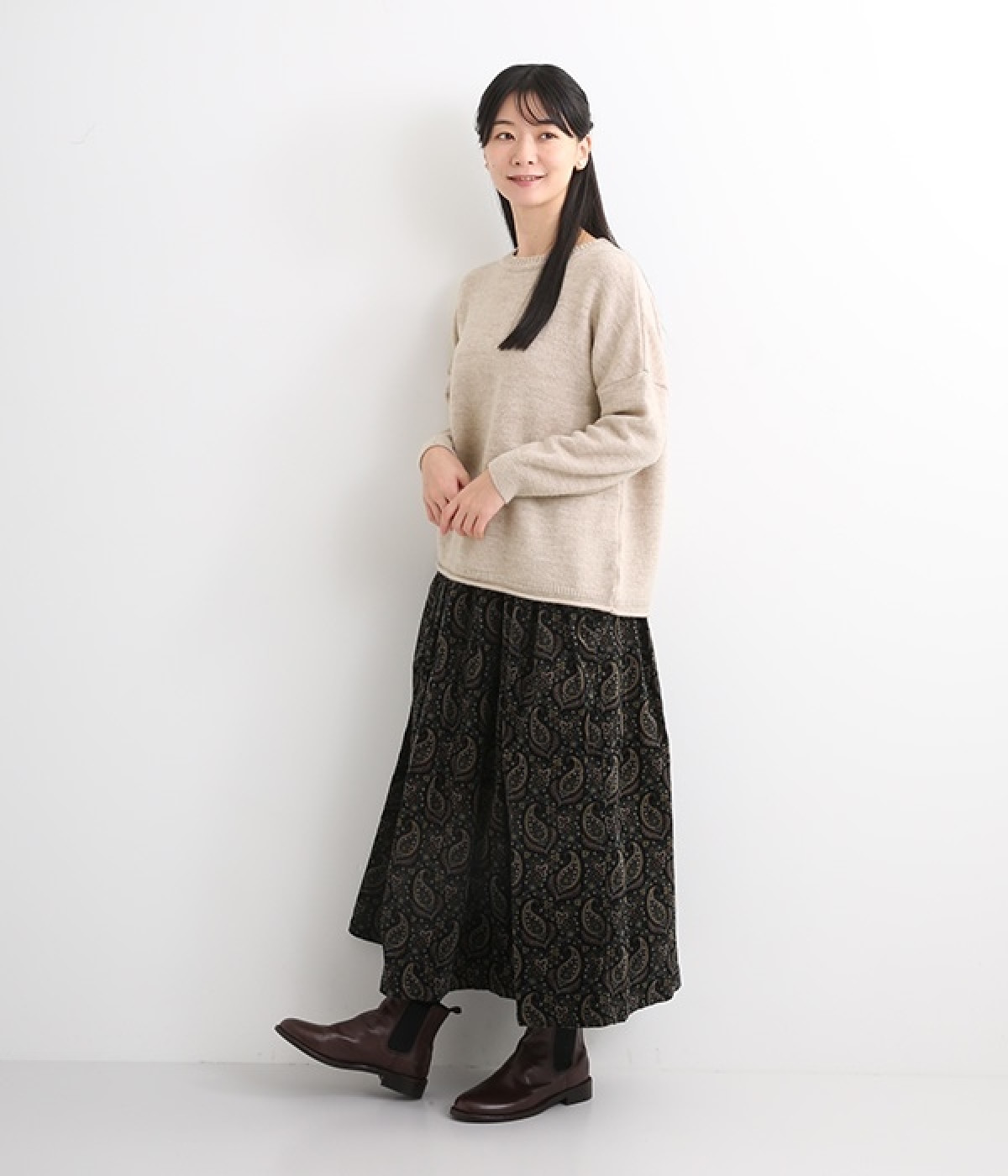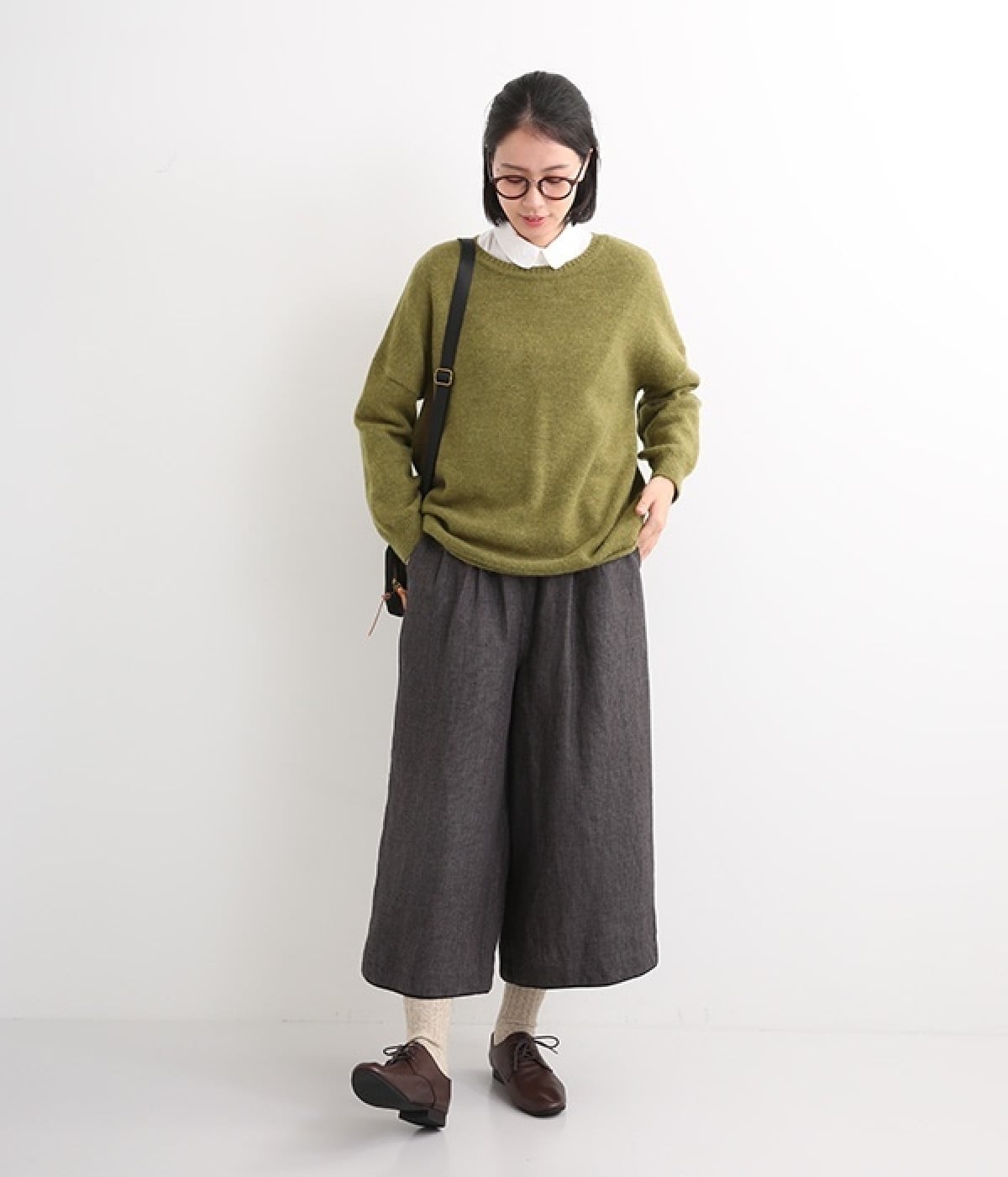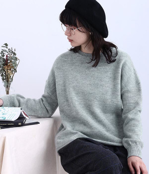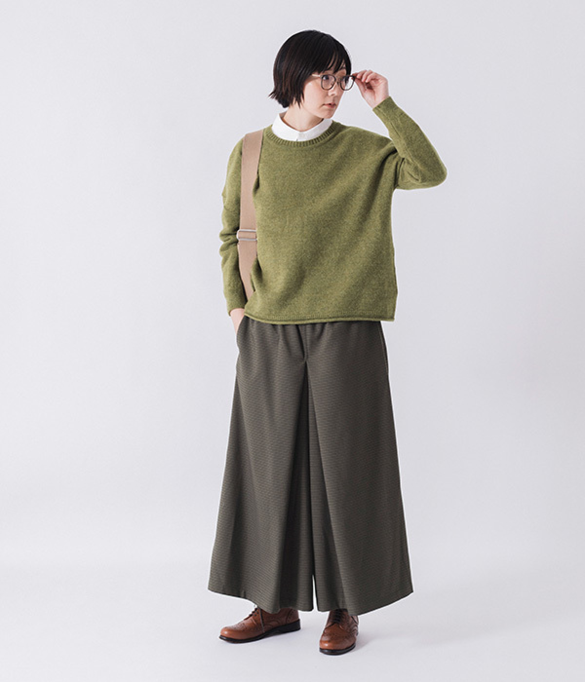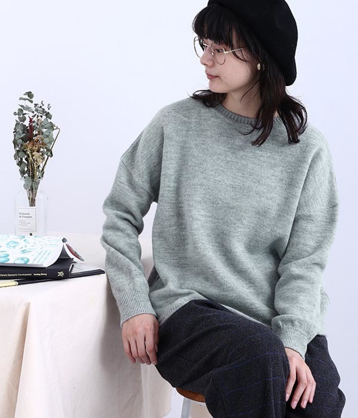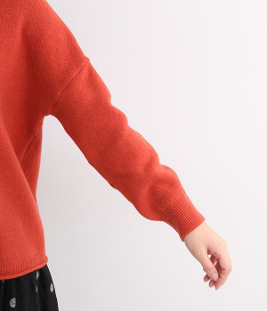 ベビーアルパカとウールをミックスした上質な素材を使用。やわらかくふんわりとした肌触りが気持ちいいニットプルオーバーです。シャツやカットソーなどのインナーを合わせやすく、一枚で着てもきれいに見えるよう、襟ぐりの開きにこだわったデザイン。着心地のよさはもちろん、ボリュームのあるボトムにもバランスのいいシルエットに仕上げました。ロールした裾がナチュラルな雰囲気を漂わせます。