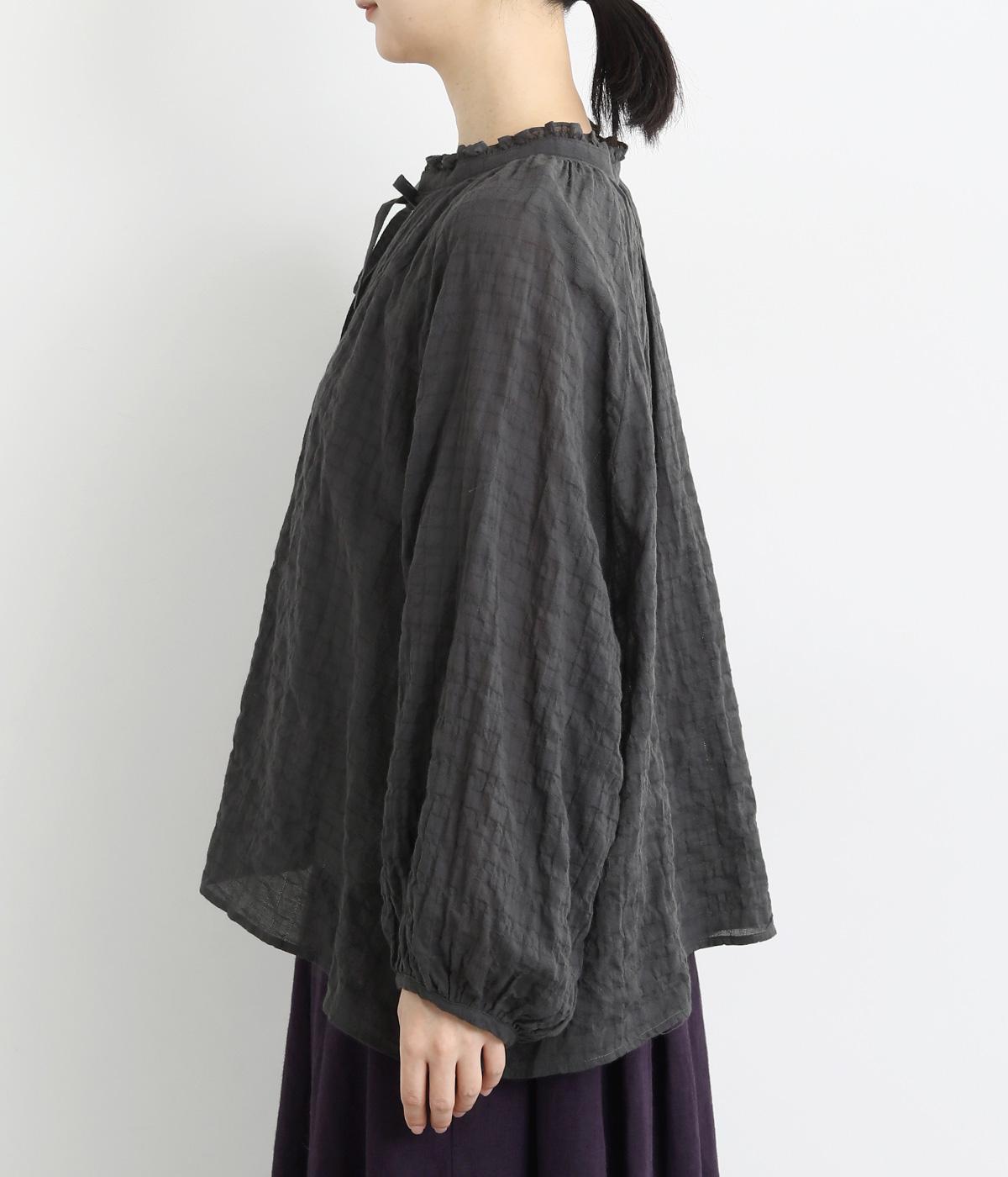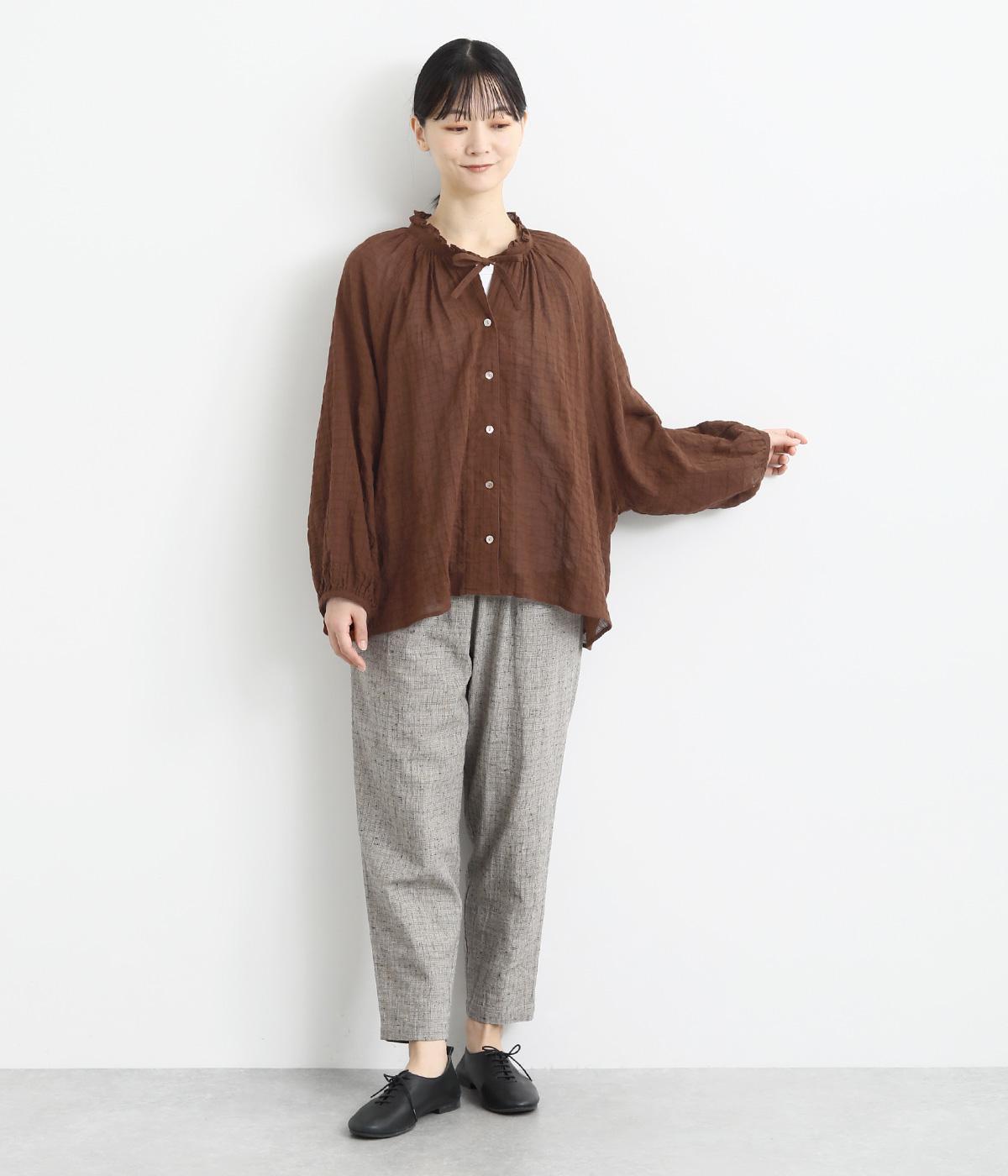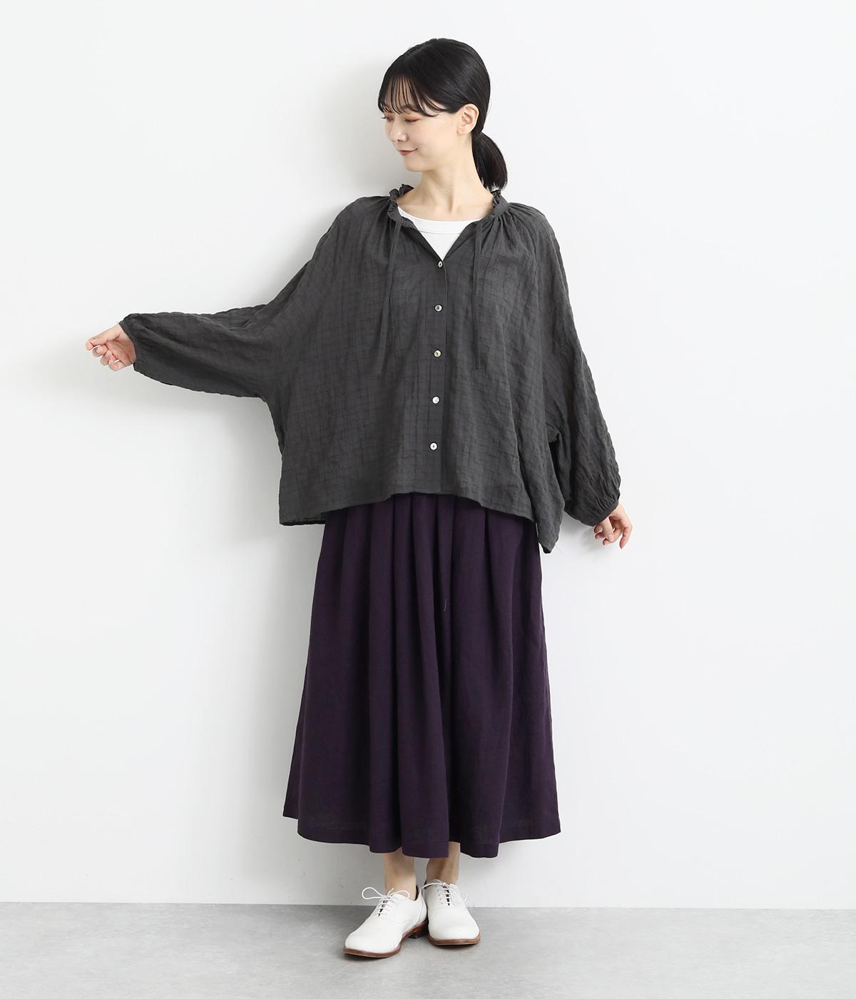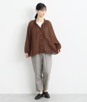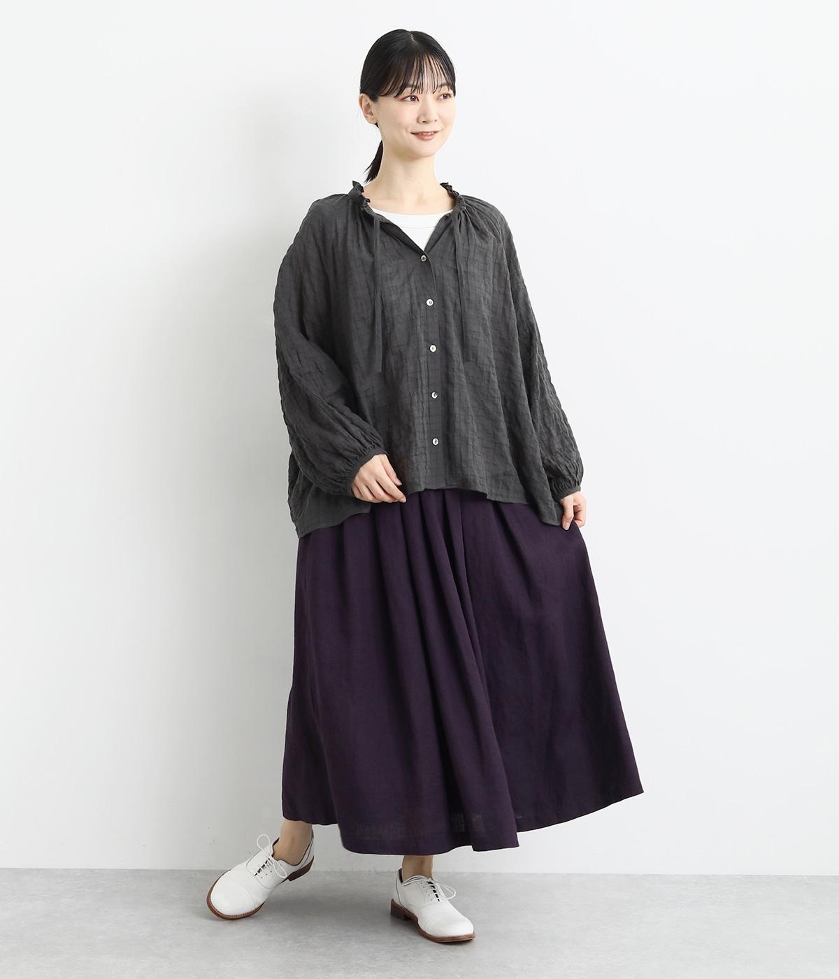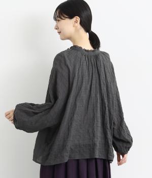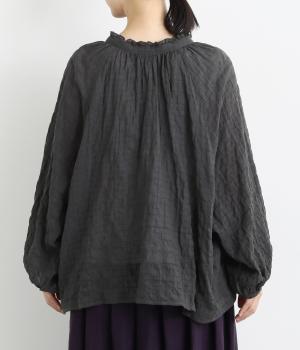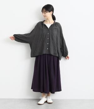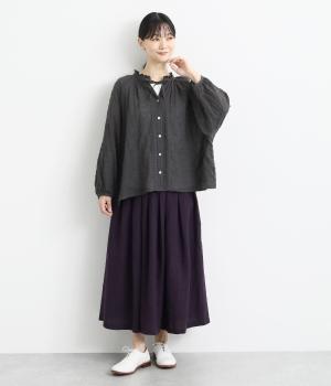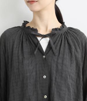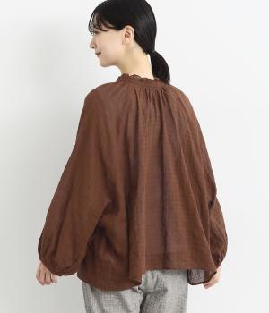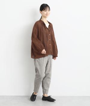 襟元の控えめなフリルやパフスリーブで、甘すぎない上品な雰囲気に仕上げました。アウターを重ね着したときにのぞくフリルは、コーディネートのポイントにも。羽織りにも使える、汎用性の高さも魅力です。