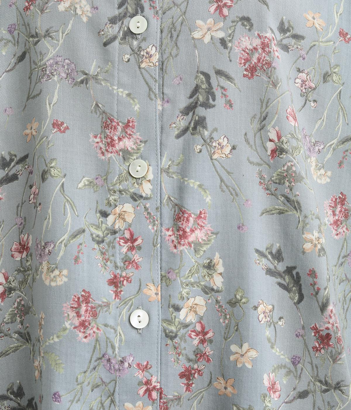繊細な花柄がフェミニンな印象のビエラ素材を使用しました。コットンウールの心地よさに、レーヨンの落ち感をプラスした風合いが特徴です。