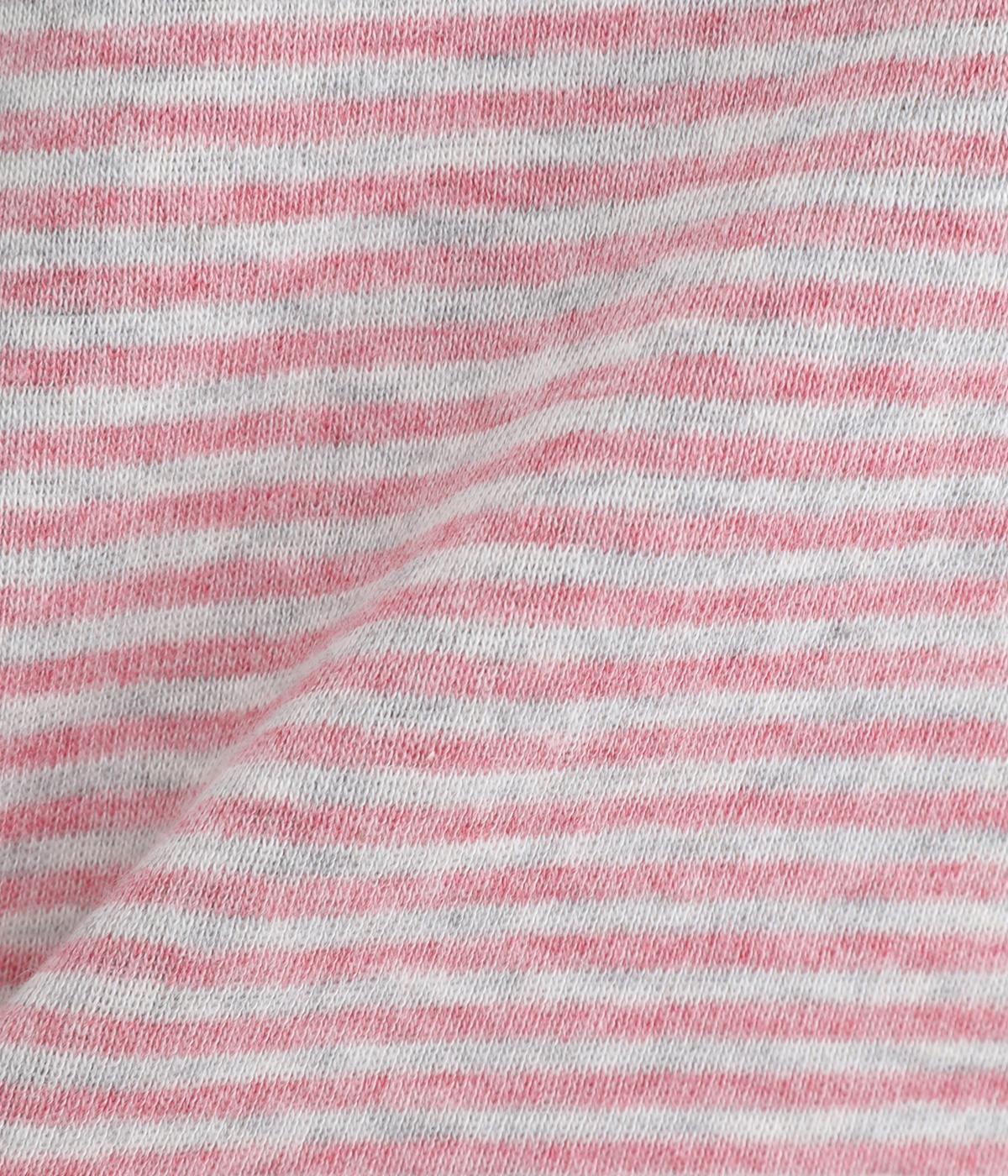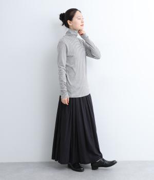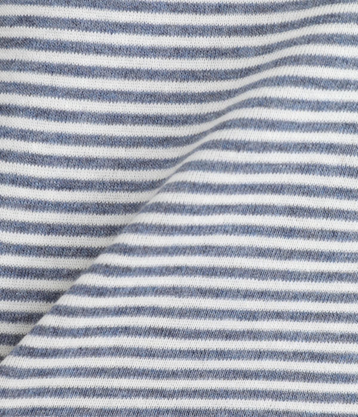主張しすぎない細めのボーダーがコーディネートになじみやすくもニュアンスを足してくれる一枚。体にやさしくフィットするのでサロペットなどのインに合わせるのもおすすめ。着丈はやや長めで裾からチラ見せする使い方も◎。