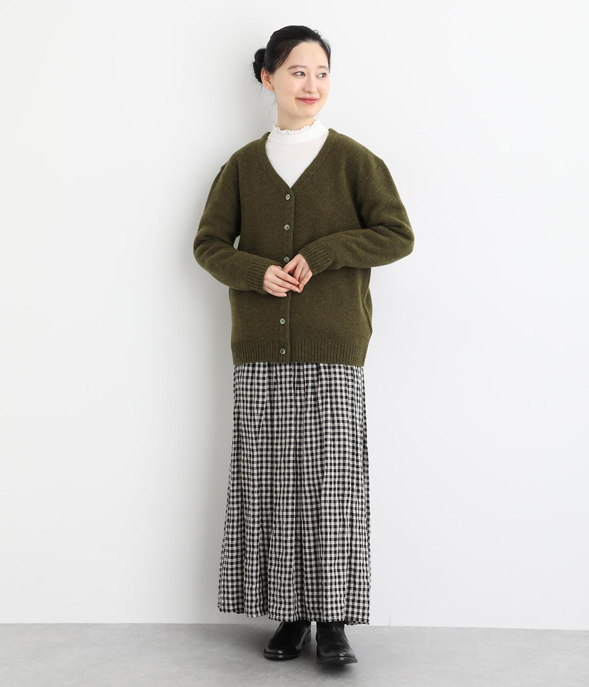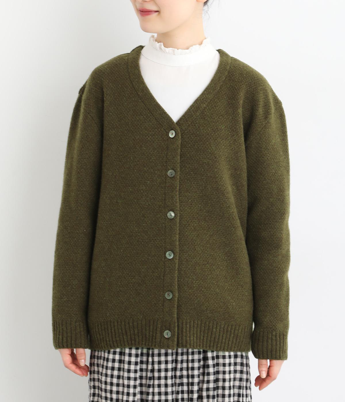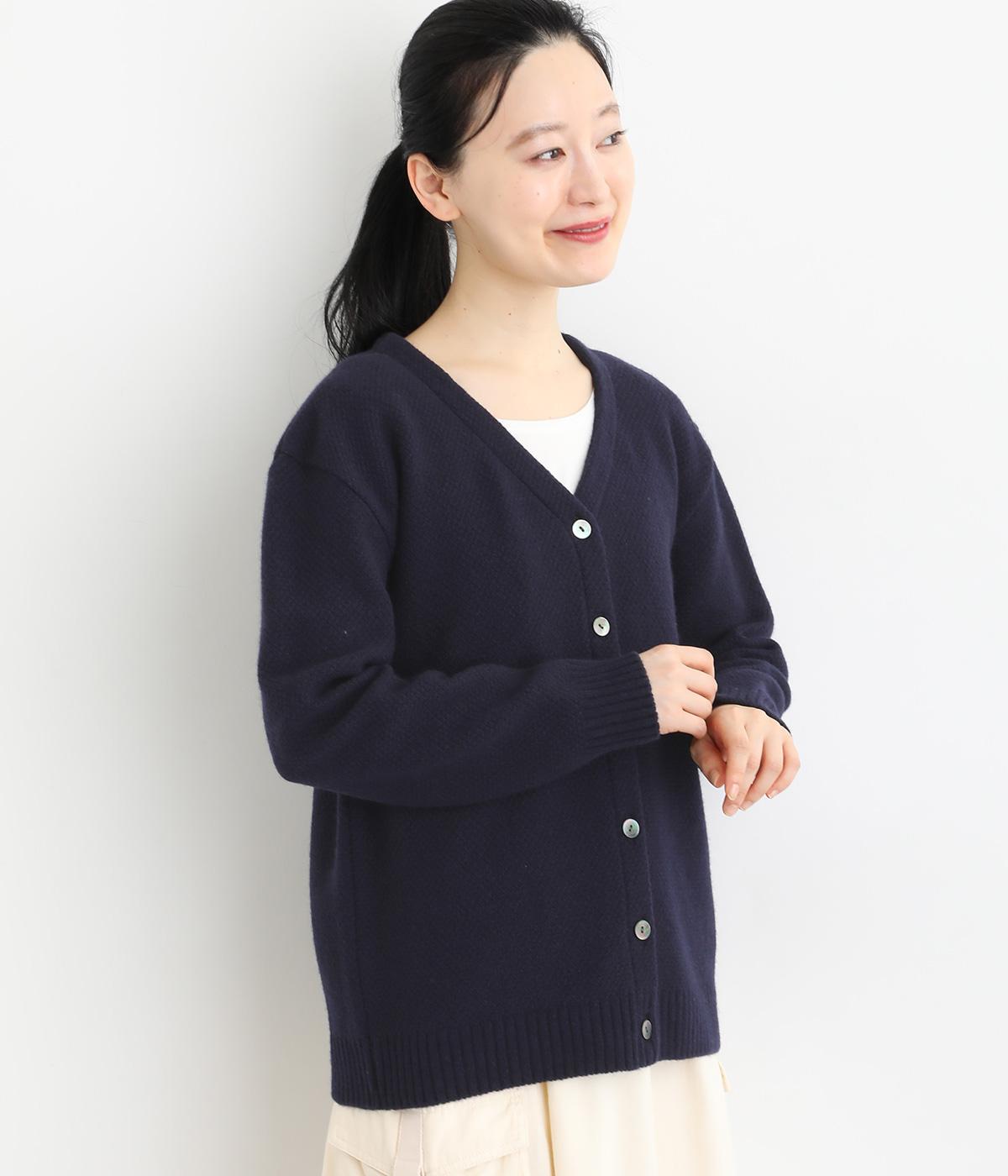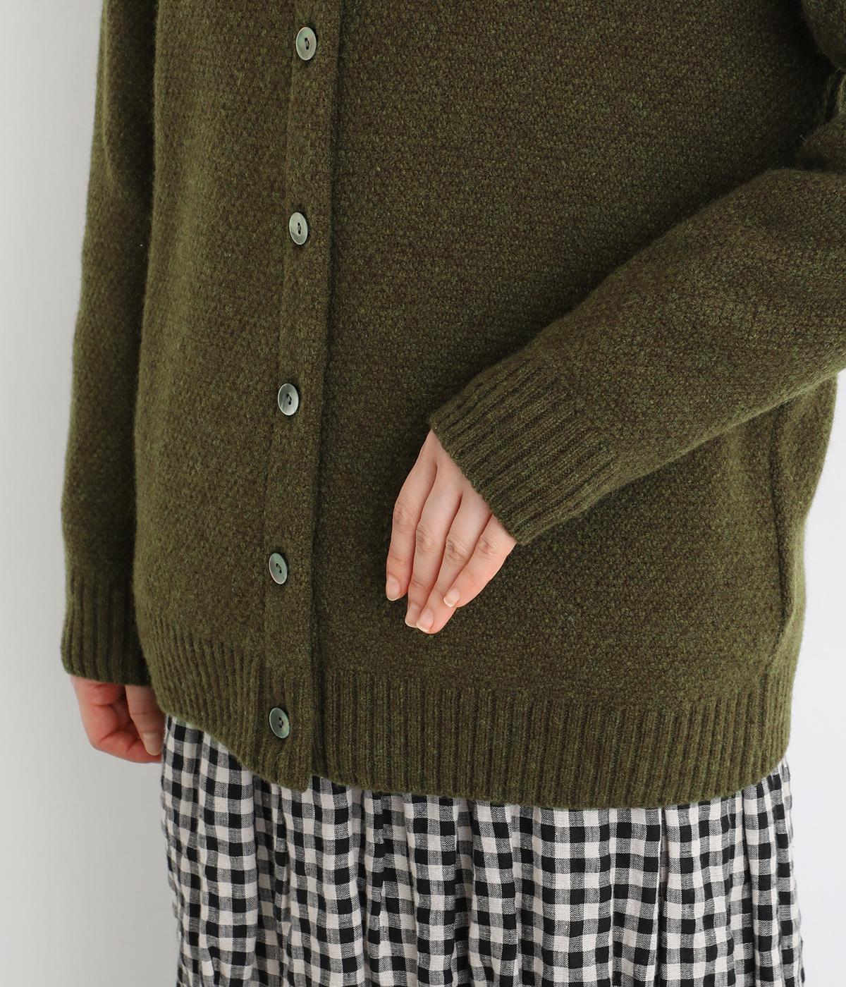 鹿の子編みによる凹凸のある生地が、独特のニュアンスを生み出すVネックカーディガン。無地の生地を表情豊かに見せました。着まわしがきく、ベーシックなVネックなので、インナーを選ばず、さまざまなコーディネートが楽しめます。