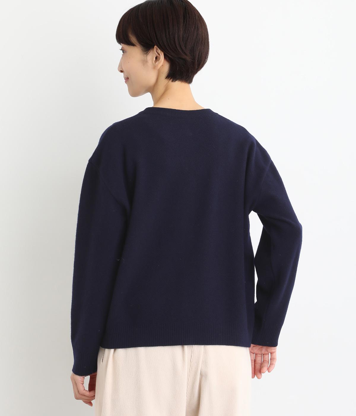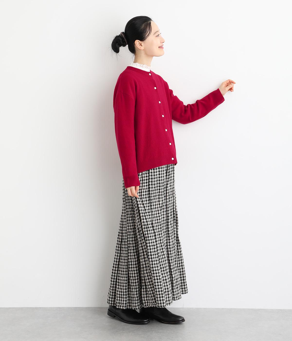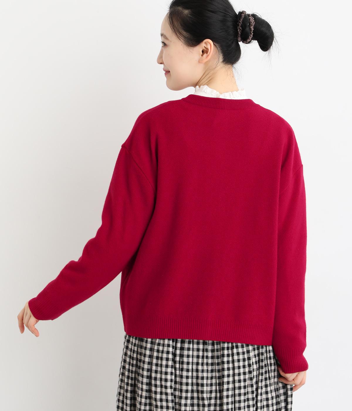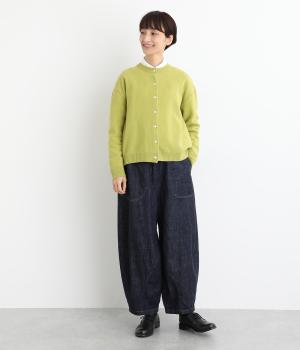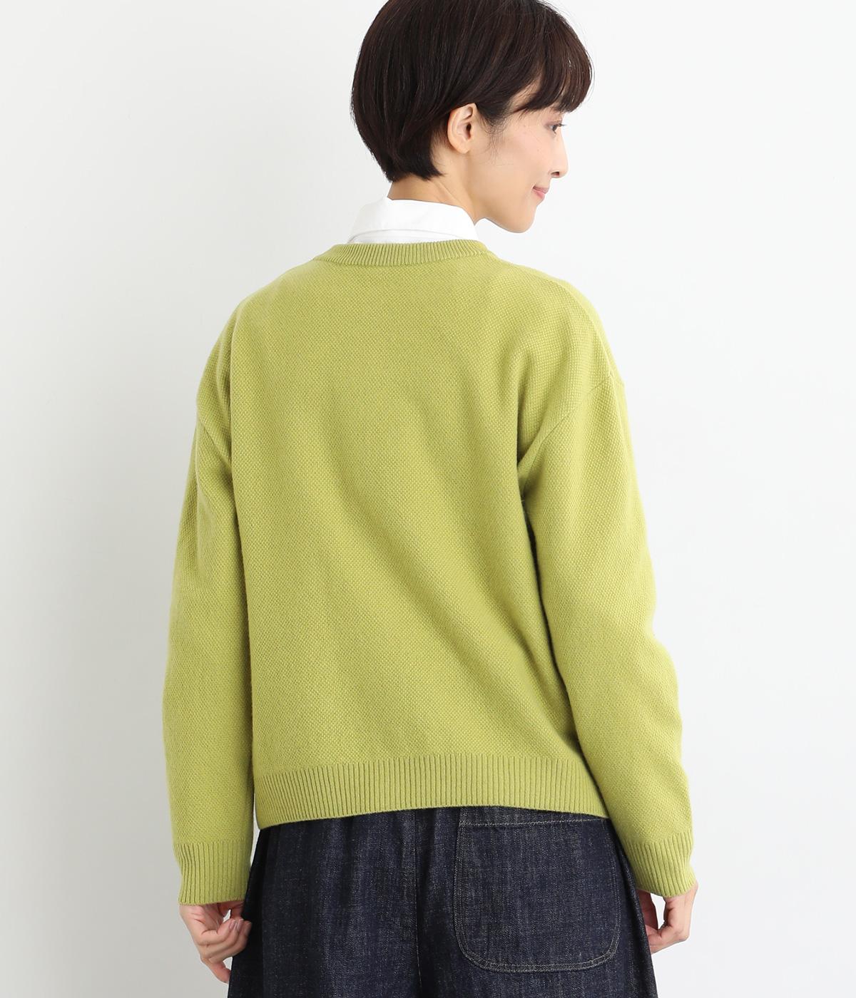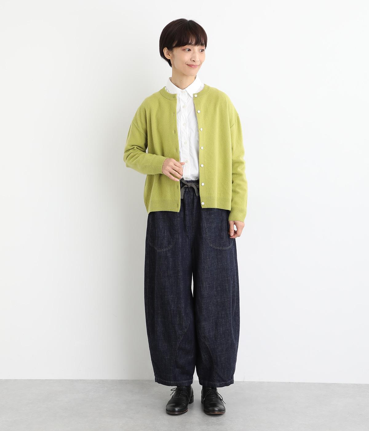 生地表面に細やかな凹凸のある鹿の子編みの丸首カーディガン。ベーシックな見た目ながらも、素材や生地に作り手のこだわりが詰まった贅沢な一枚です。丸首なので、シャツとも相性がよく、レイヤードスタイルが作りやすいのも魅力。