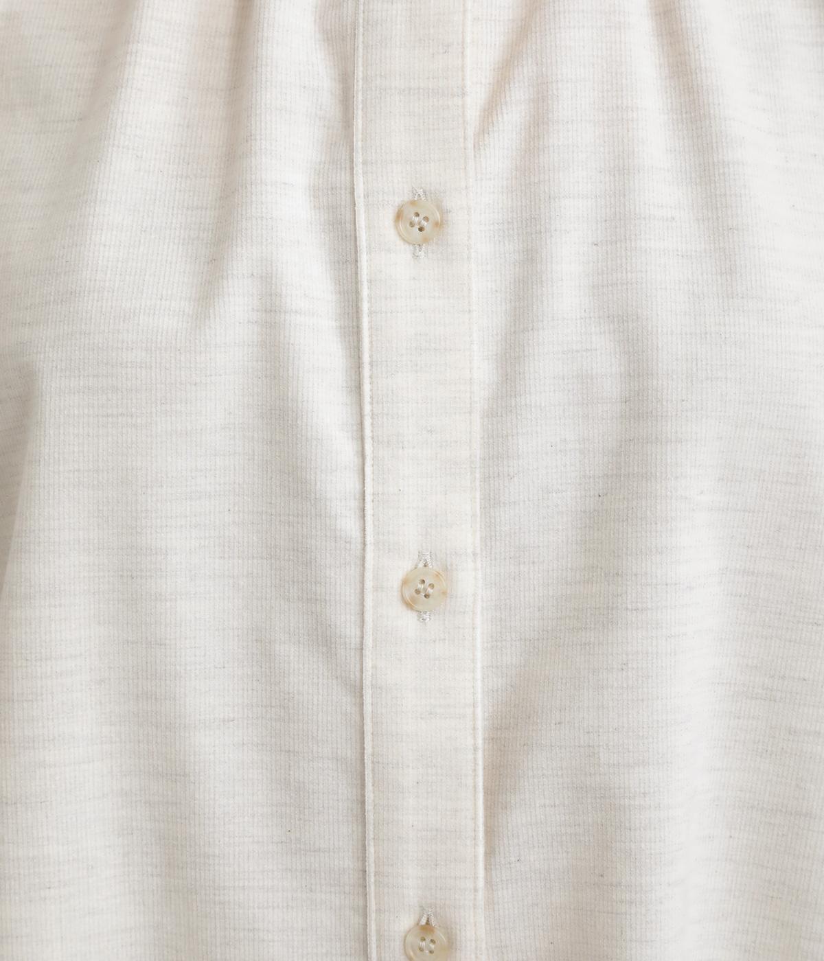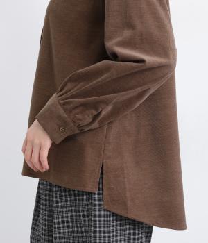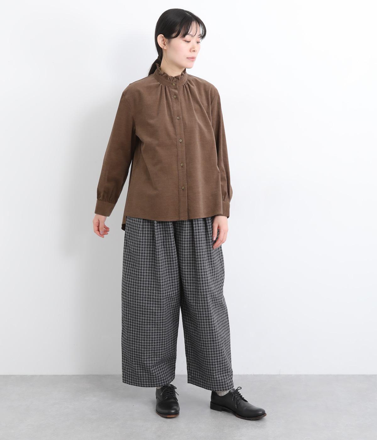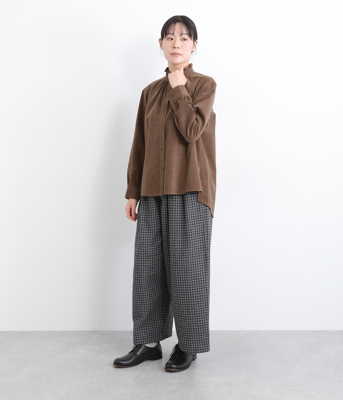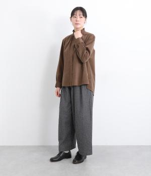 繊細な畝の立つコットンコーデュロイ生地を使用しました。軽くてやわらかく、空気をふくんだようなやさしい風合いが魅力です。カジュアルにもきれいめにもマッチする、素朴さのなかに上品さを感じる素材です。
