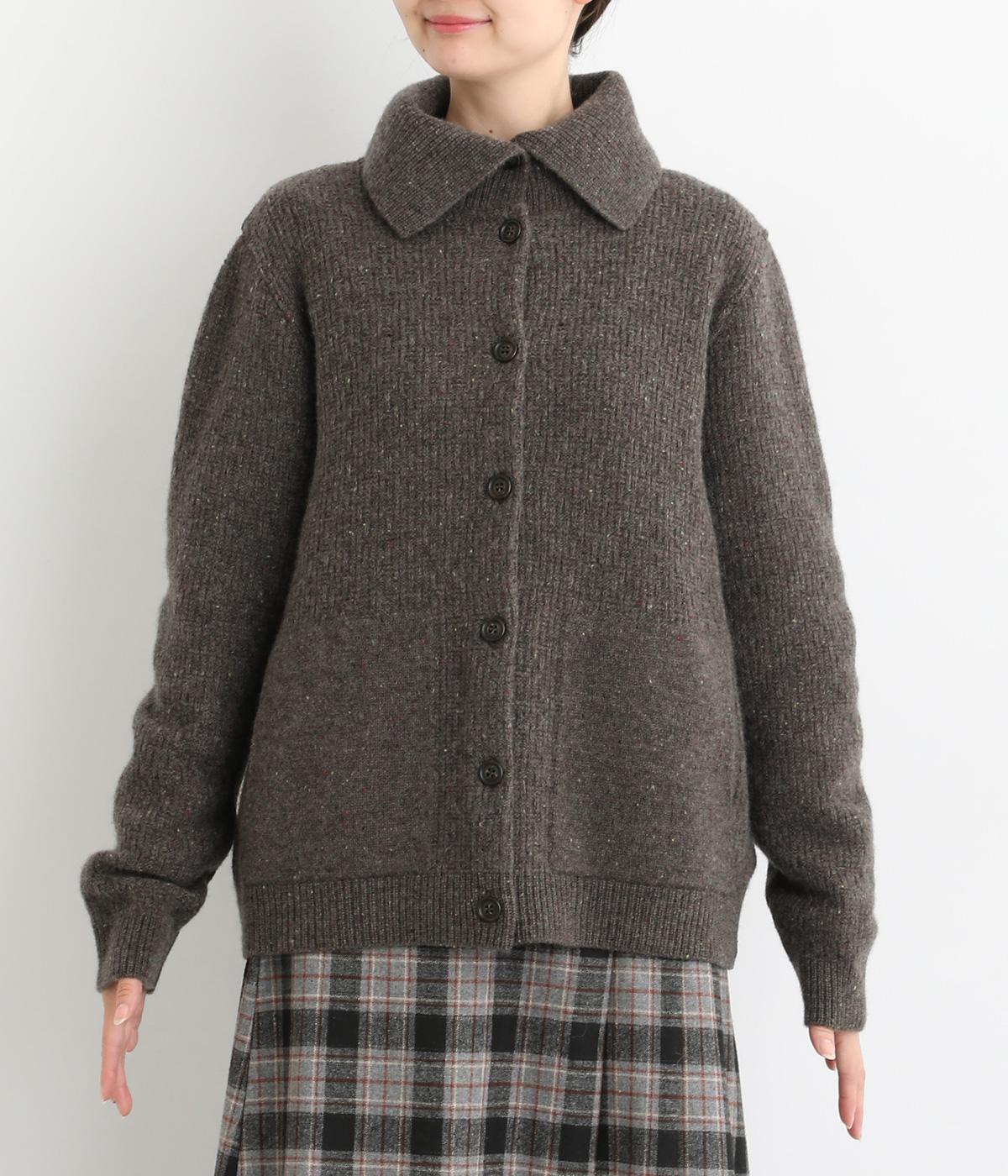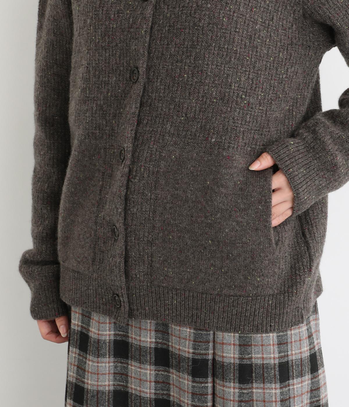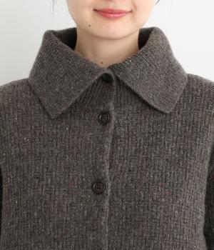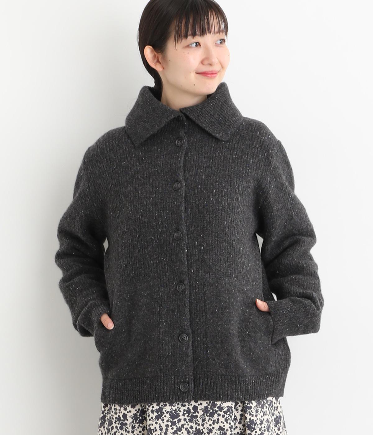 大きめの襟が首元まであたたかく包み込むカーディガン。ボタンによって襟元の開き具合を変えることで、顔まわりの印象に変化をつけられるのが魅力です。フロントにはデザイン性と実用性を両立したポケットを配しています。