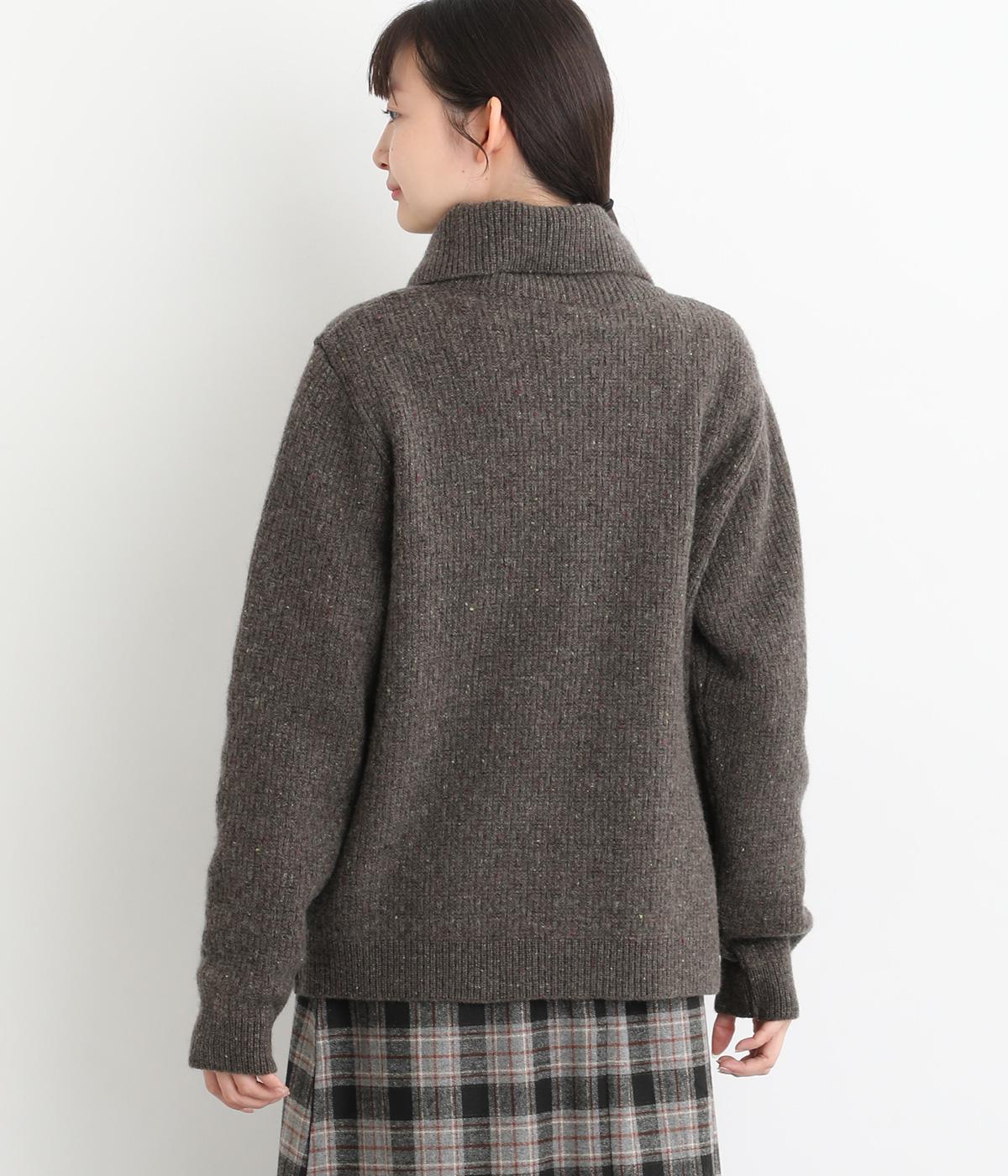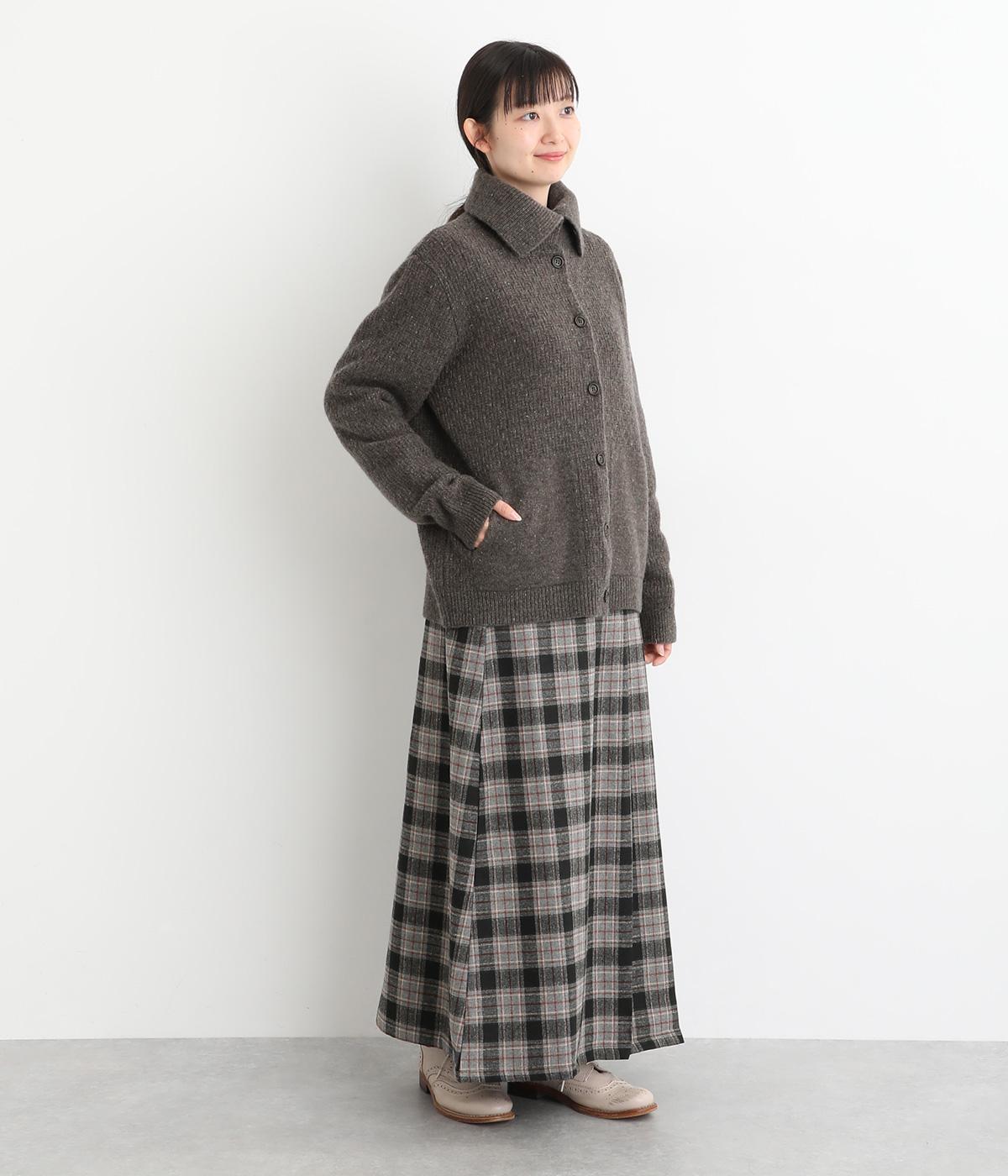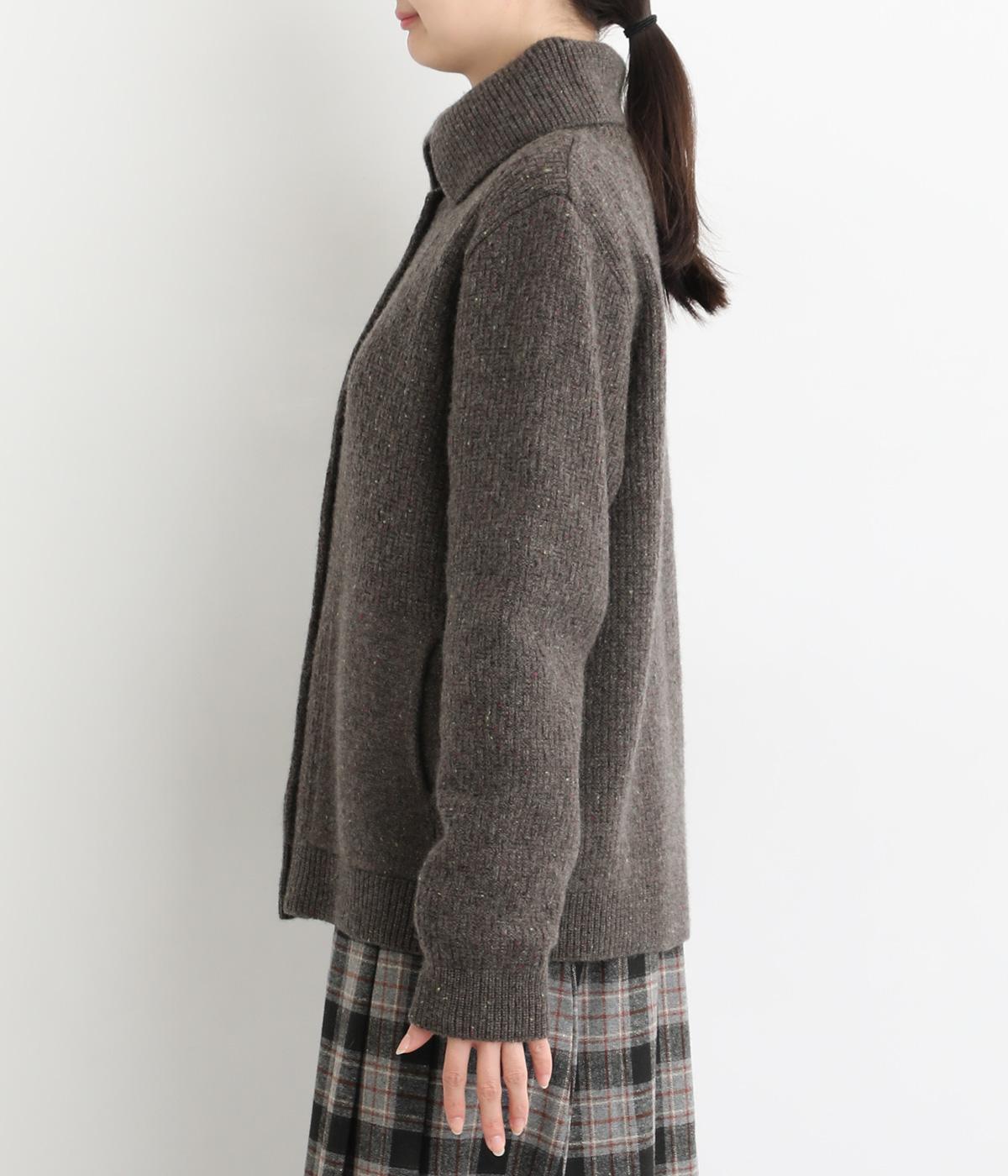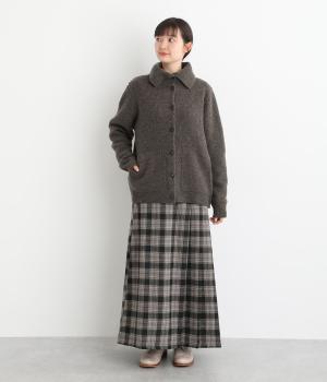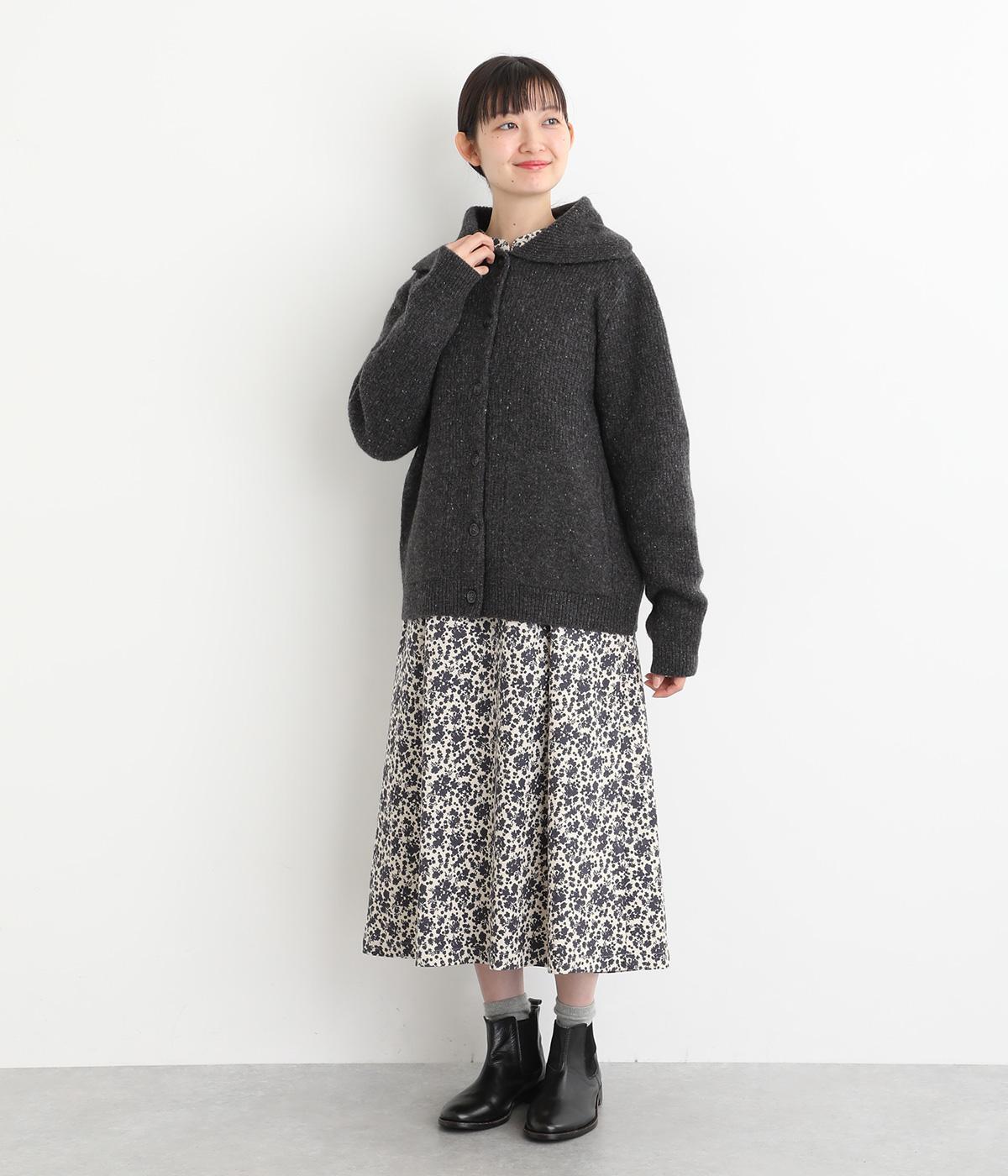 大きめの襟が首元まであたたかく包み込むカーディガン。ボタンによって襟元の開き具合を変えることで、顔まわりの印象に変化をつけられるのが魅力です。フロントにはデザイン性と実用性を両立したポケットを配しています。