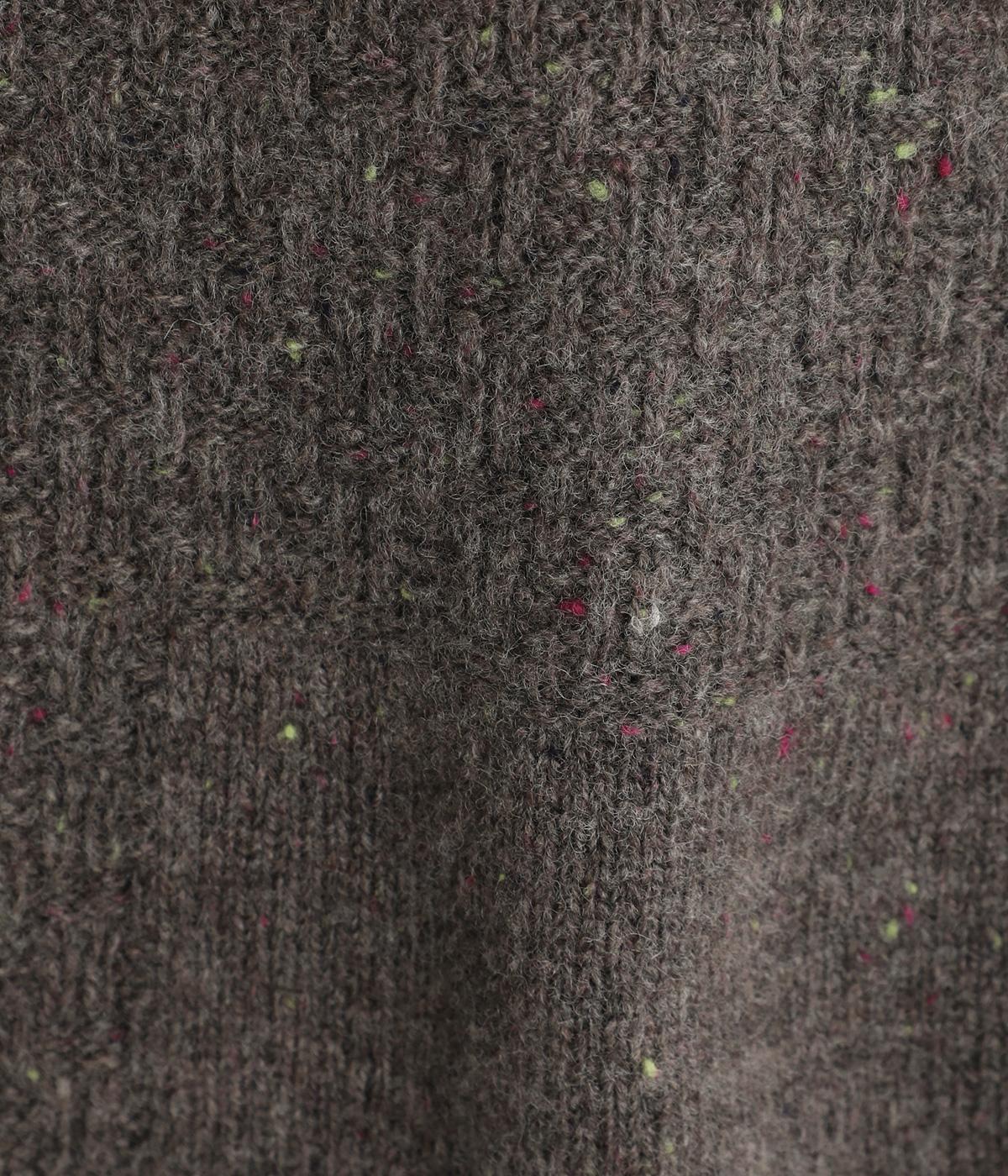カラーネップと立体感のある編み地をポイントにした表情豊かなニット生地です。ウールならではのあたたかな着用感はそのままに、チクチク感をおさえて肌触りよく仕上げました。