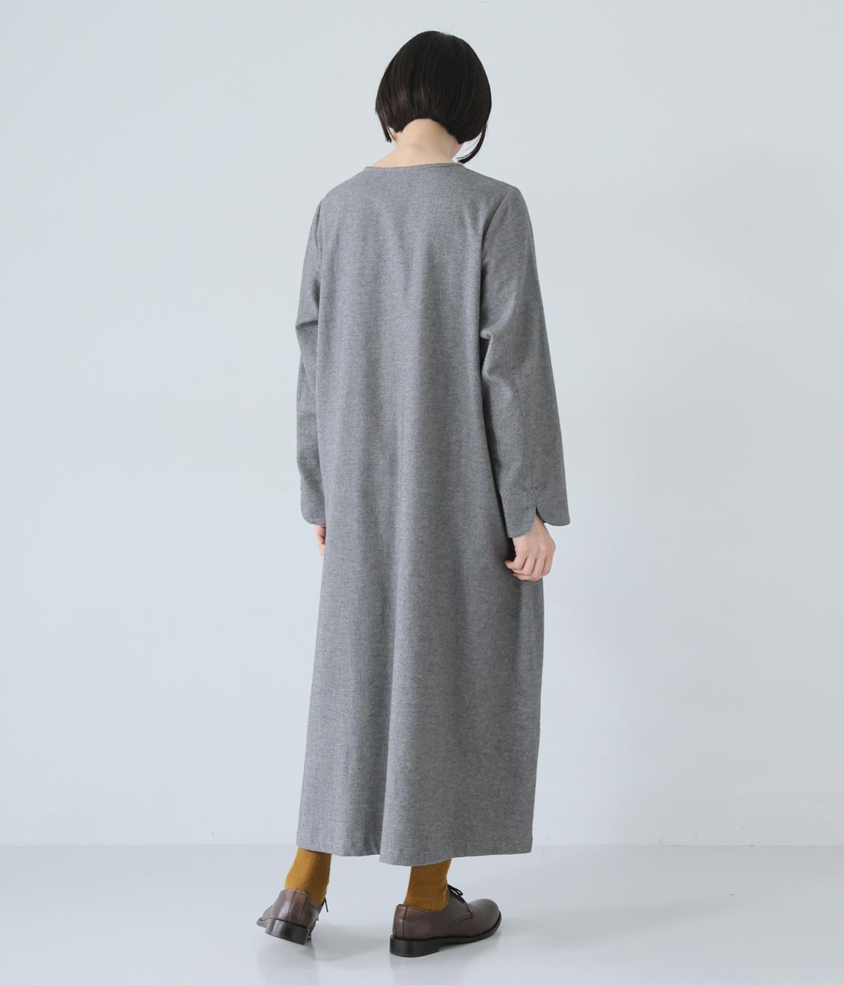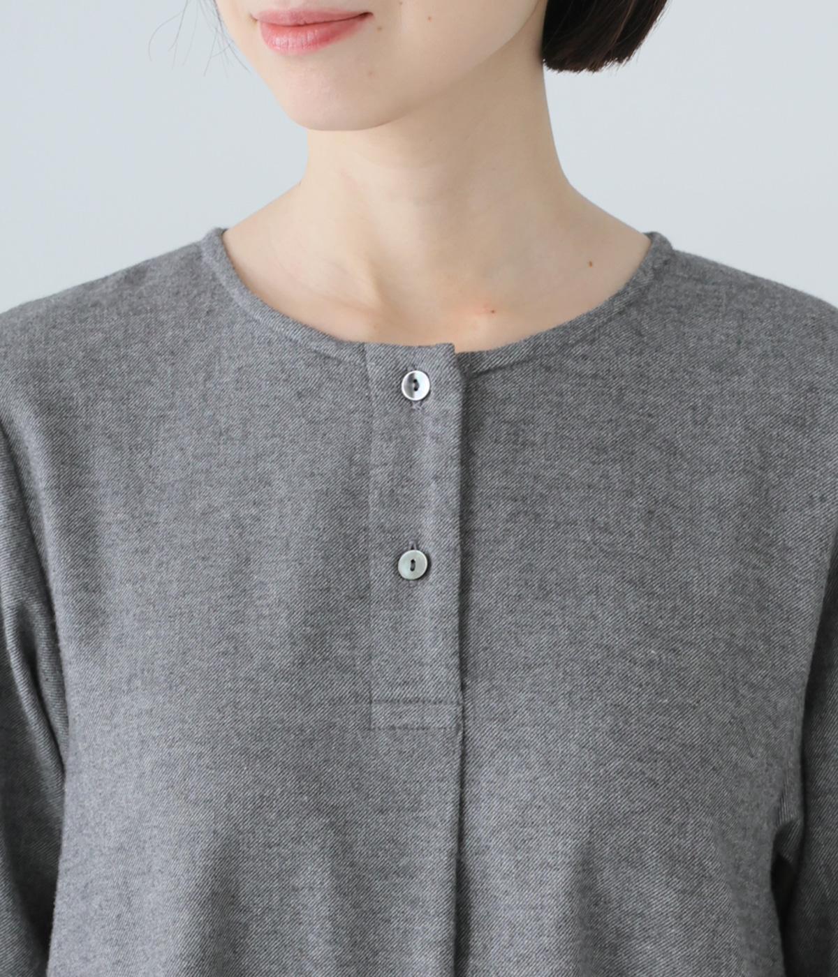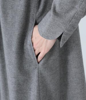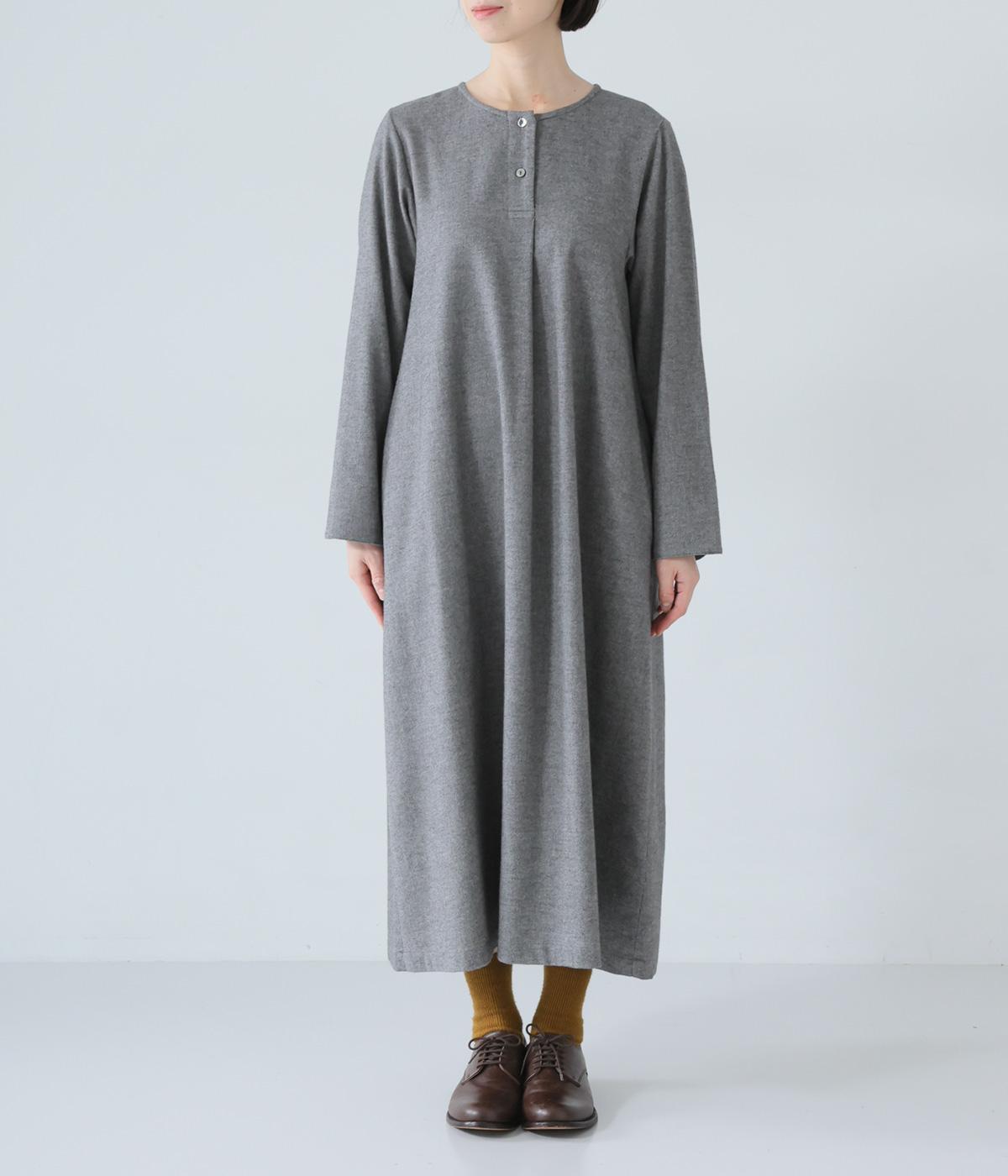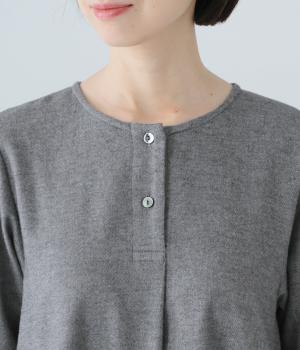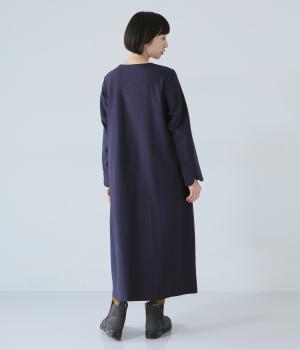 ヘンリーネックの下にタックを入れて、ふんわりとした適度なゆとりを持たせたワンピース。ラウンドした袖口が、女性らしいやさしいムードを添えます。合わせる小物選びなどスタイリングがたのしくなる、シンプルさが魅力の一枚です。