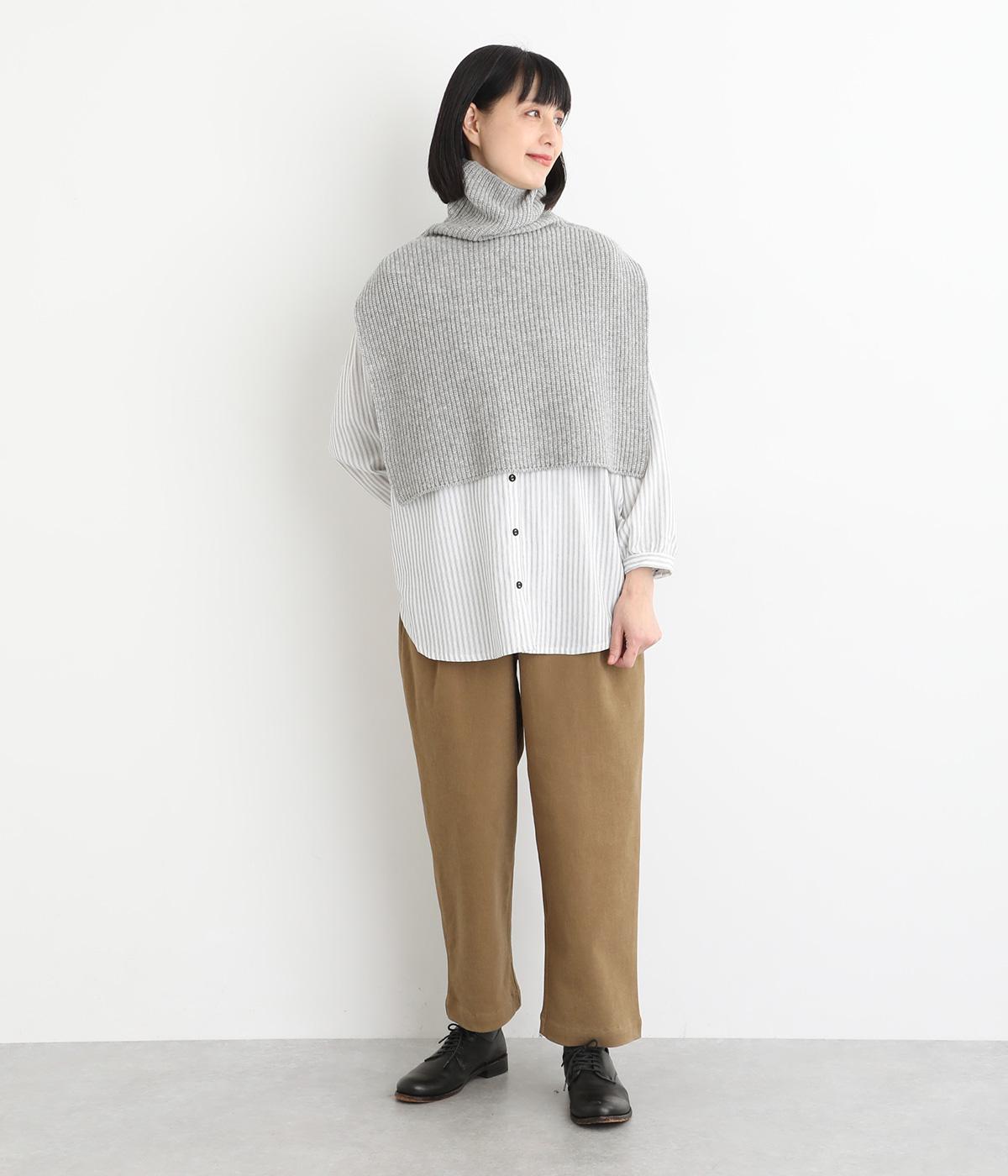 おしゃれと防寒が同時に叶うネックウォーマー。ベストのようなデザインが着こなしのアクセントになります。首元にやさしく沿わせた長めのタートルネックは締めつけ感が少ないのが◎。自然にくしゅっとさせれば、こなれたムードがただよいます。