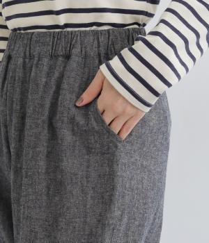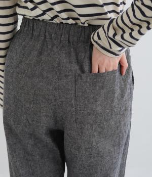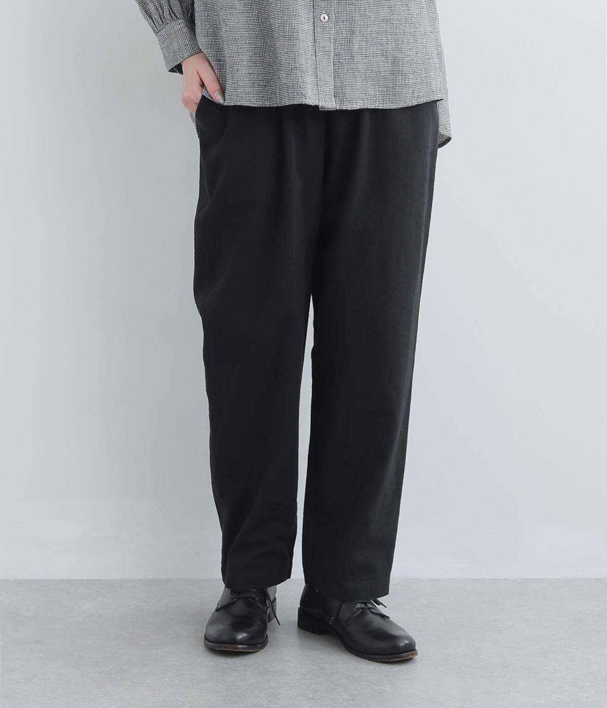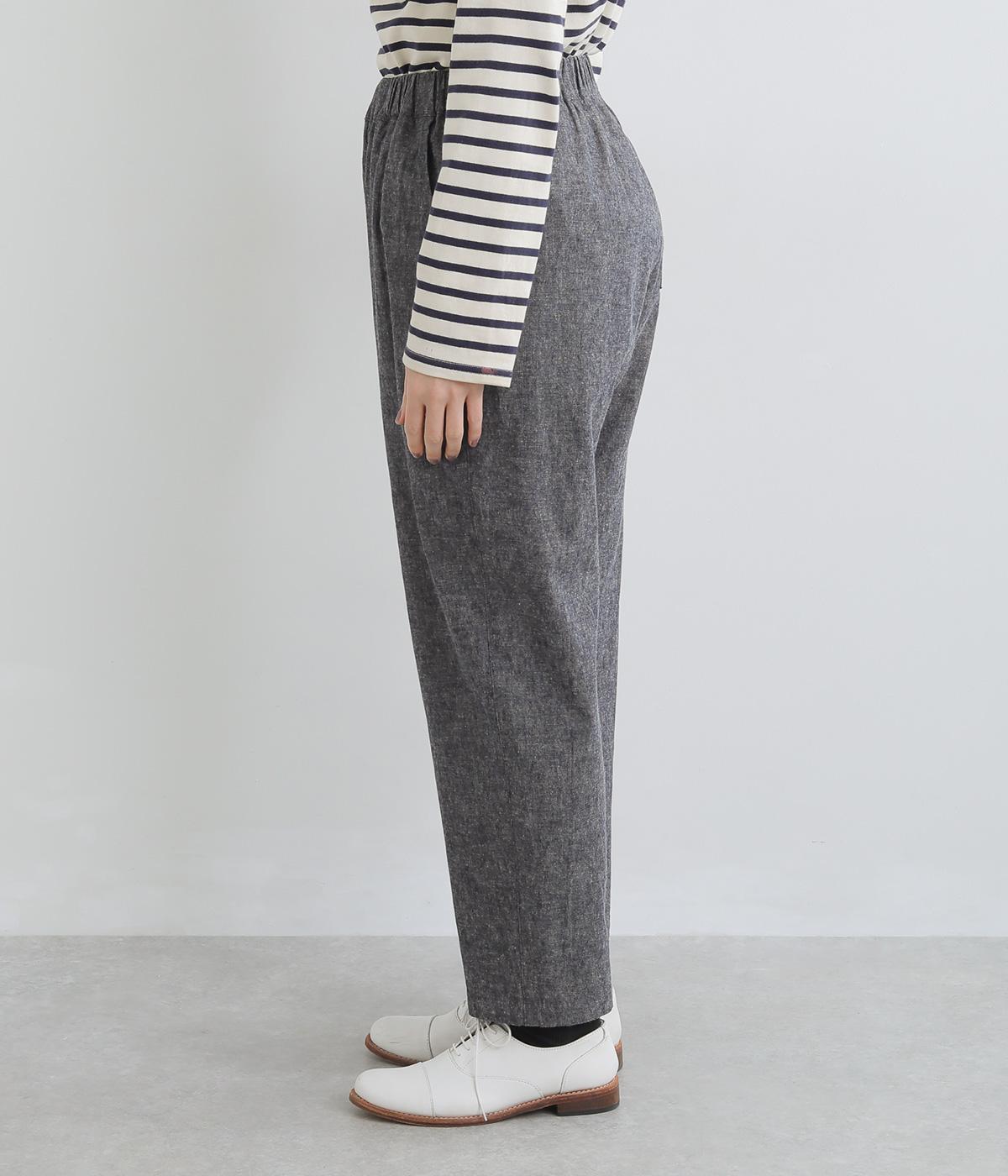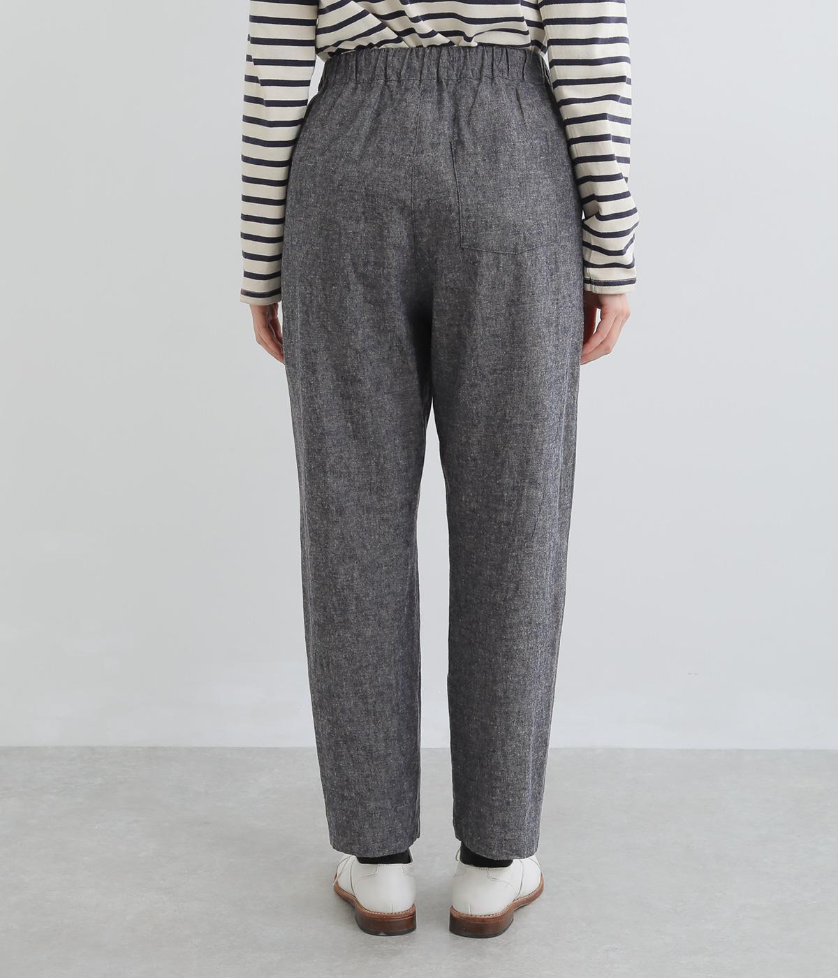 シンプルなデザインのテーパードパンツ。太すぎず細すぎないストレートラインで、すっきり見えしつつ動きやすいシルエットに。イージーな穿き心地でデイリーに活躍する一本です。
