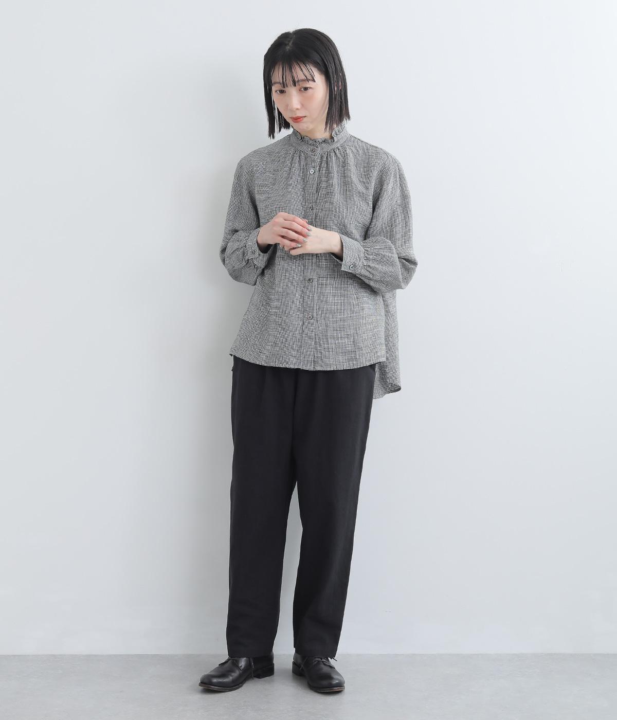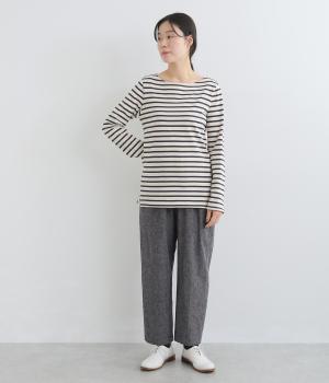 さらりとした肌ざわりのリネンコットン生地を使用しています。軽くてやわらかな着心地です。ロングシーズン快適に過ごせます。