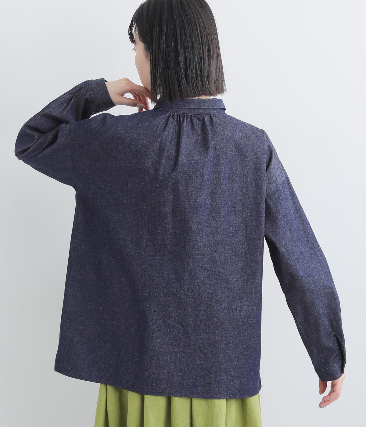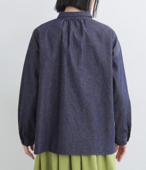 ゆったりとした身幅でリラックス感のあるちび襟ブラウス。袖口に施したタックと背中のさりげないギャザーがシルエットに動きを添えます。サイドのミニスリットもアクセントに。
