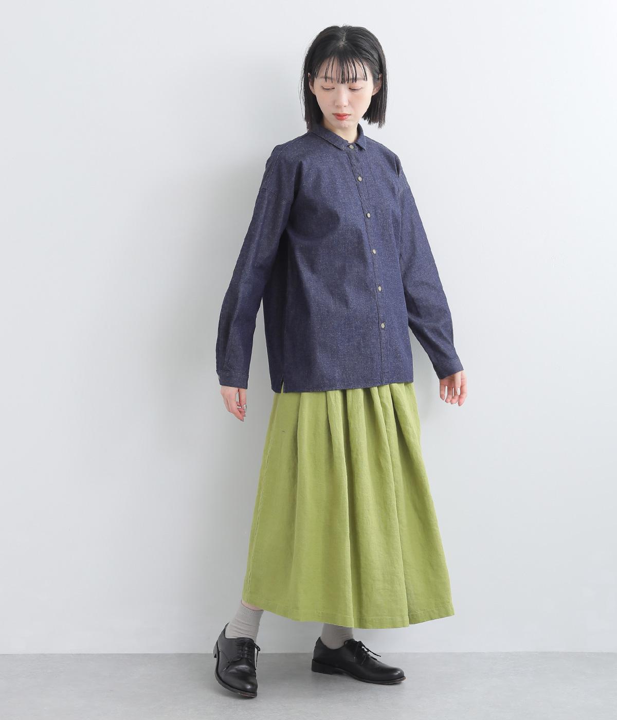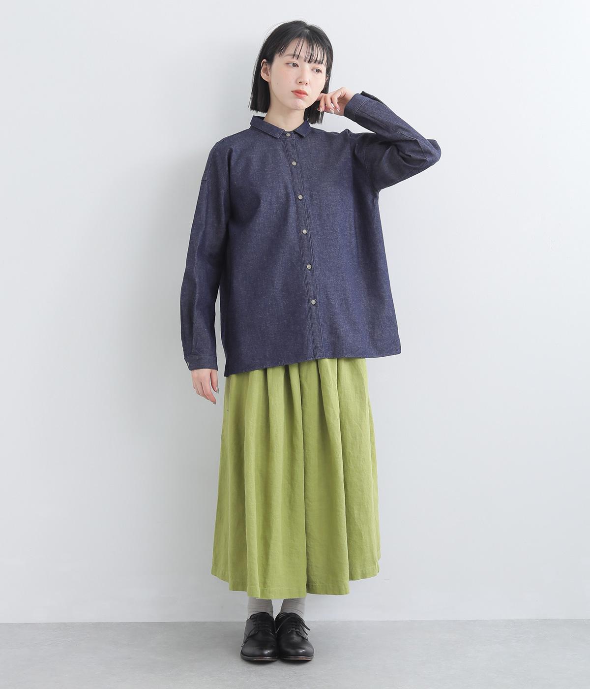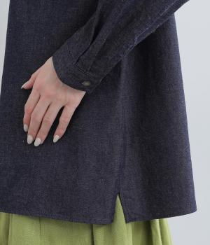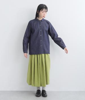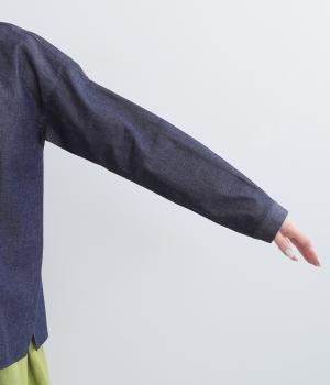軽くてやわらかなコットンデニム生地を使用しています。ほどよいハリがありつつゴワつかないので、長時間着ても疲れにくい着用感です。ロングシーズン着まわしできます。
