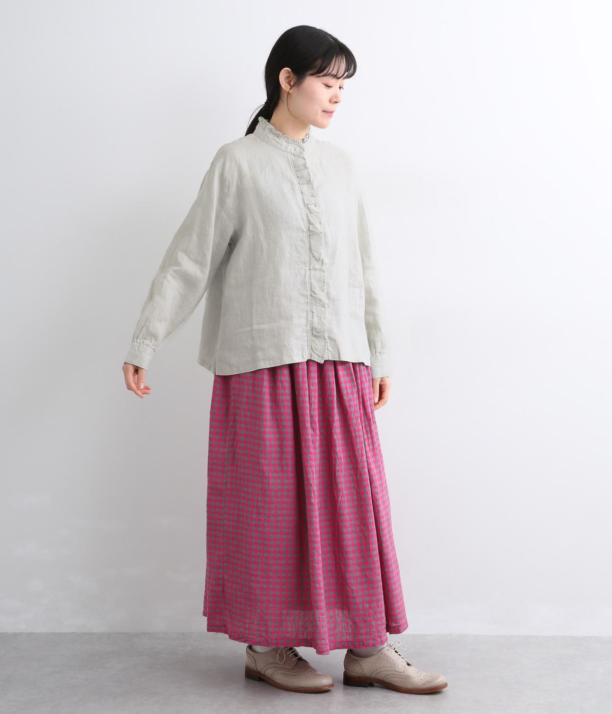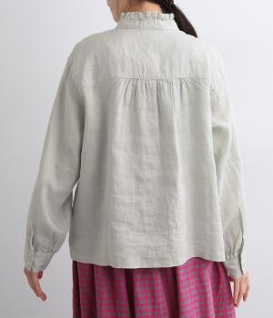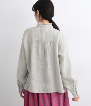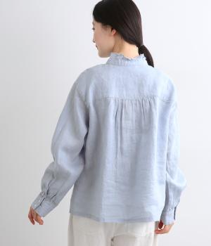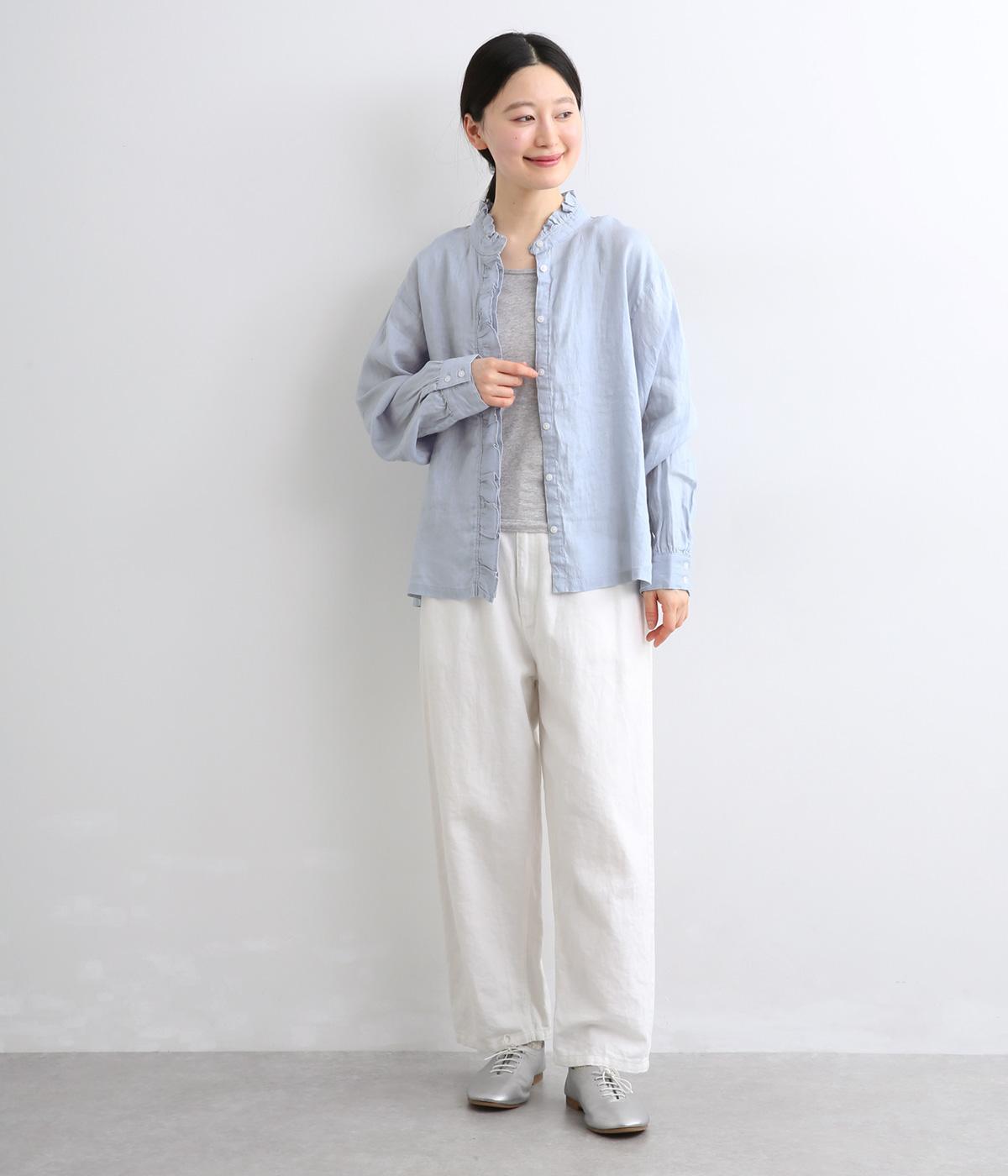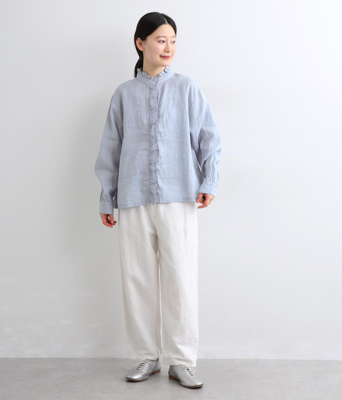 しなやかな素材がフリルをきれいに表現し、肌あたりも優しくなじみます。ナチュラルな表情の生地が甘すぎない大人かわいい雰囲気に引き寄せて、フェミニンにもカジュアルにも着まわせるブラウスに仕上がりました。