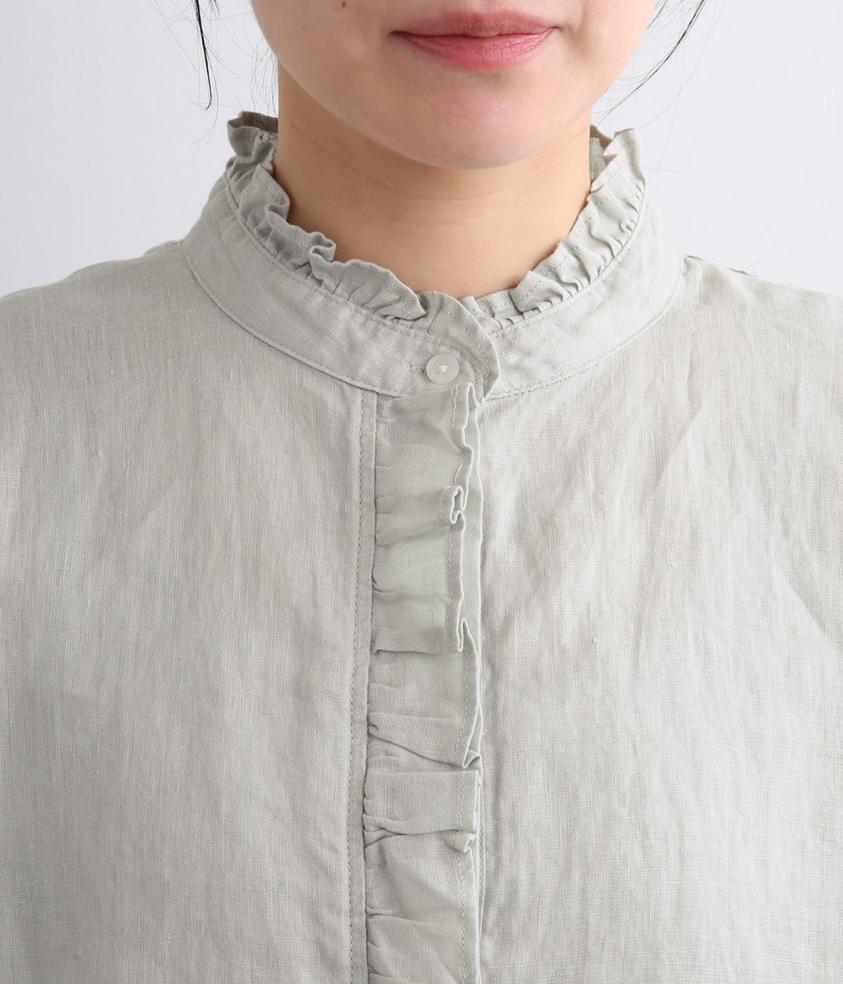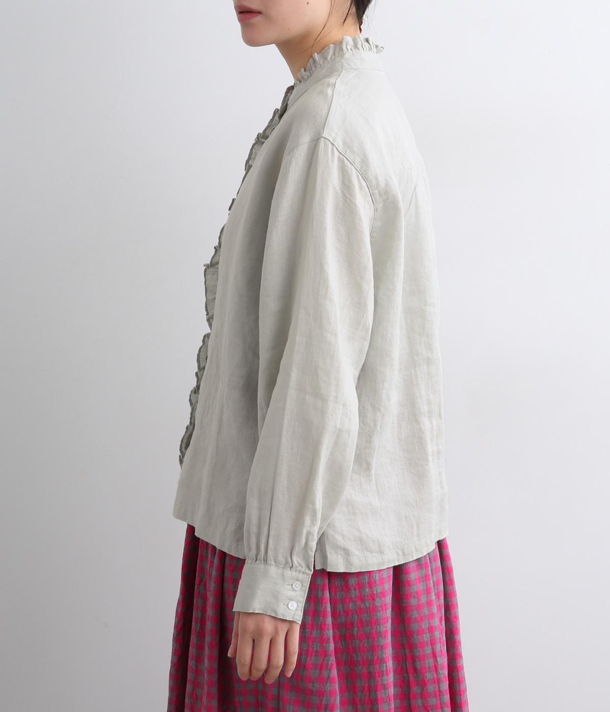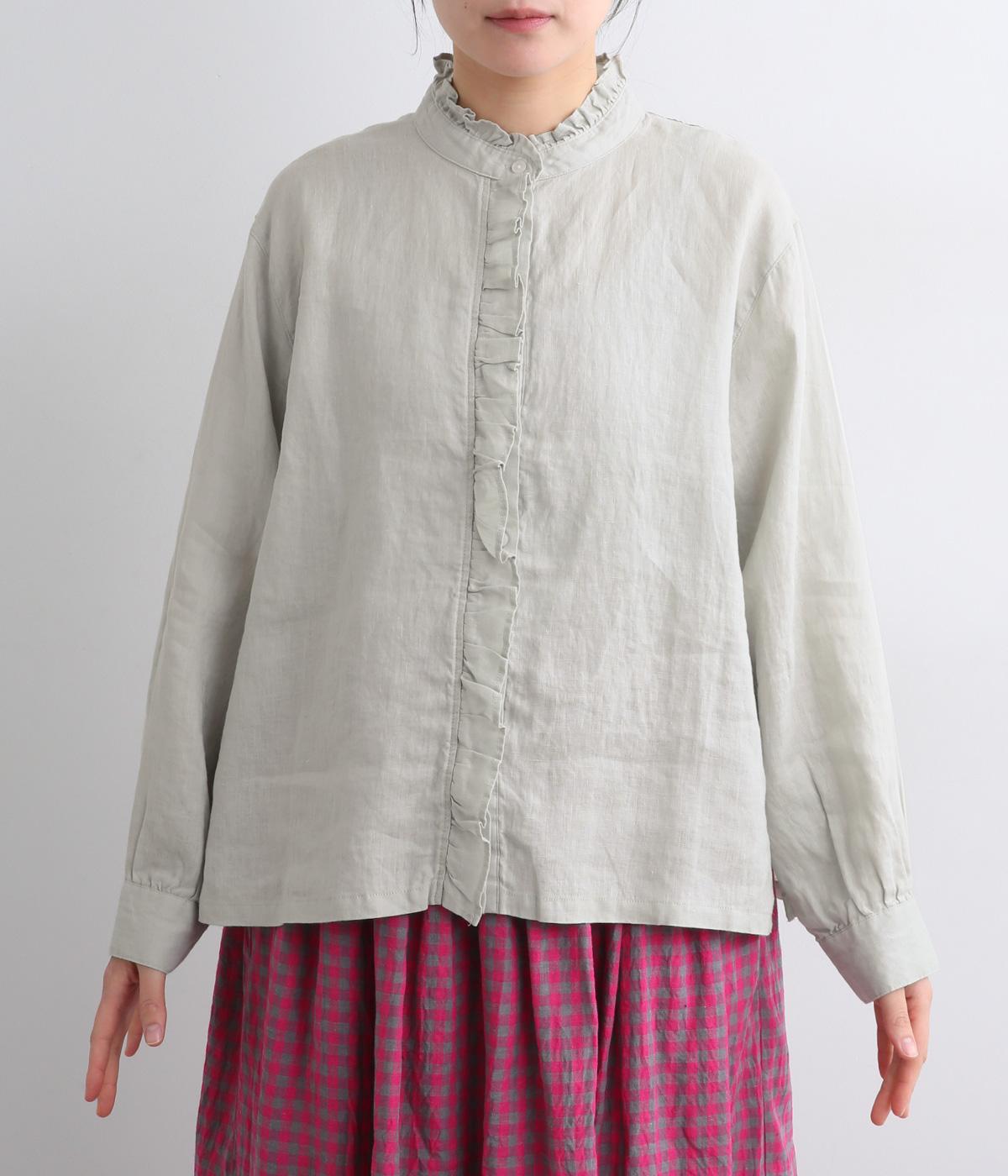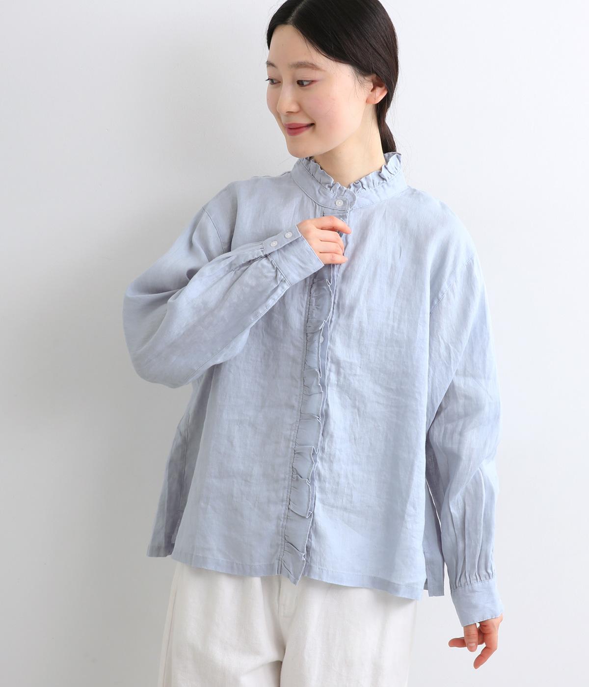 しなやかな素材がフリルをきれいに表現し、肌あたりも優しくなじみます。ナチュラルな表情の生地が甘すぎない大人かわいい雰囲気に引き寄せて、フェミニンにもカジュアルにも着まわせるブラウスに仕上がりました。