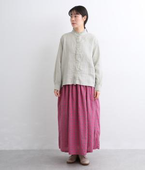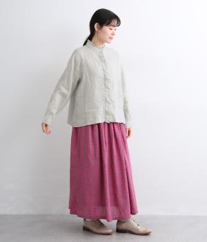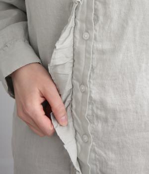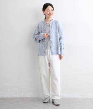やわらかな肌ざわりとしなやかなハリが特徴のリネン生地を使用しています。リネンならではのネップのある自然な表情が魅力です。清涼感があり、暖かい季節でも快適な着心地です。