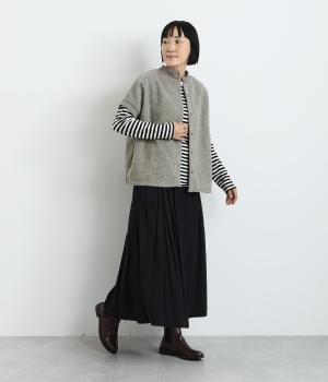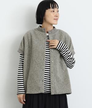 ゆったりとしたボックスシルエットに襟ぐりと袖口のリブ使いが特徴的なニットソーベスト。羽織りにも後ろあきにもなる前後2wayで着こなしの幅も広がります。いつものスタイリングに季節感と新鮮味を与えてくれる一枚です。