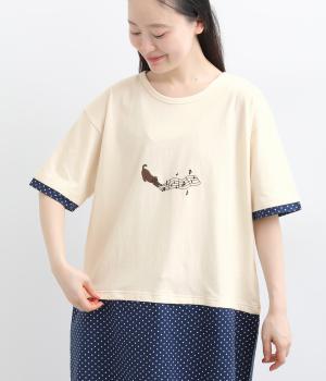 薄地天竺もぐらとハリネズミ刺繍Tシャツ