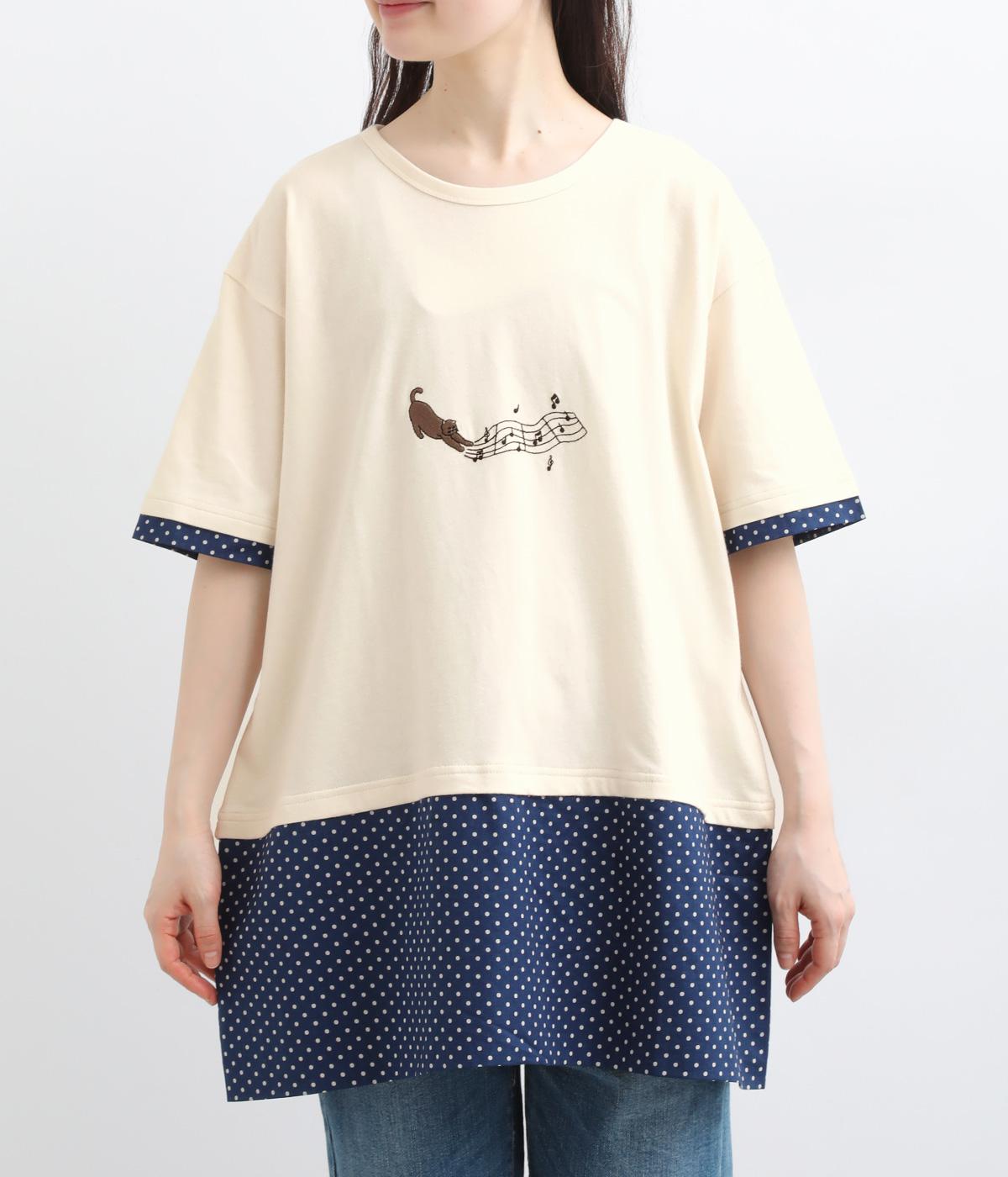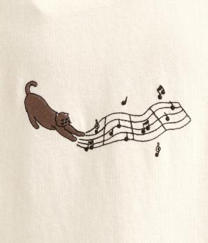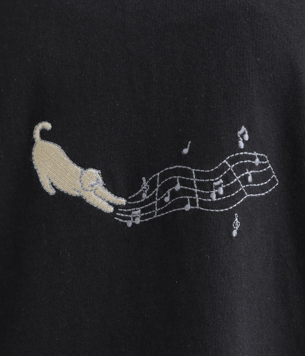 コットン天竺ネコの文房具刺繍Tシャツ