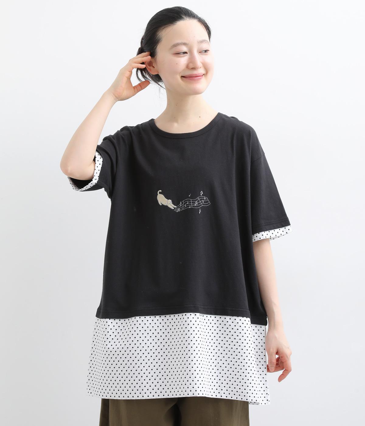 コットン天竺2匹のねこ刺繍Tシャツ