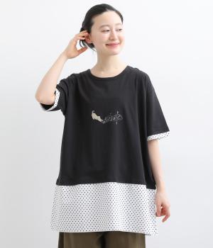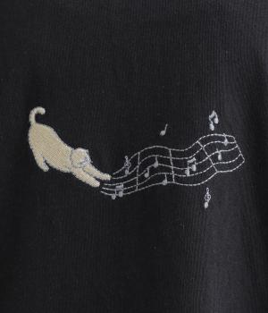 コットンボイル トラネコボンボン刺繍Aラインプルオーバー