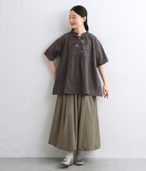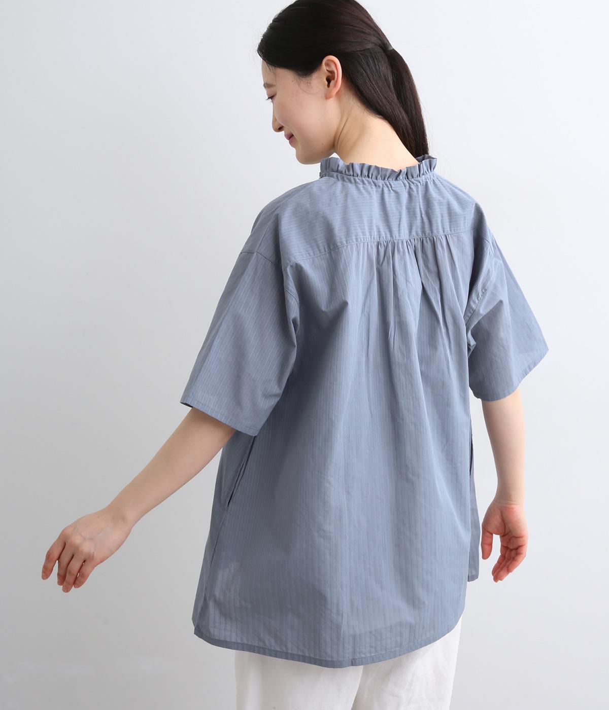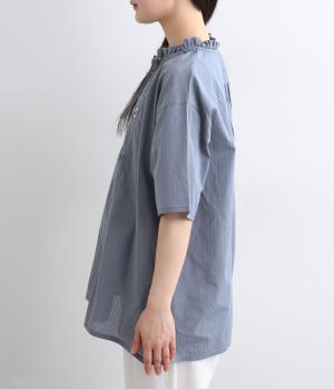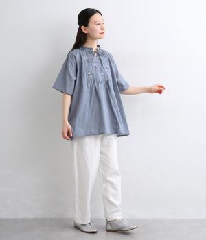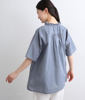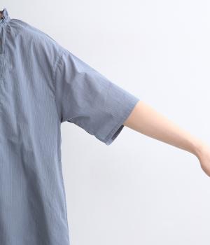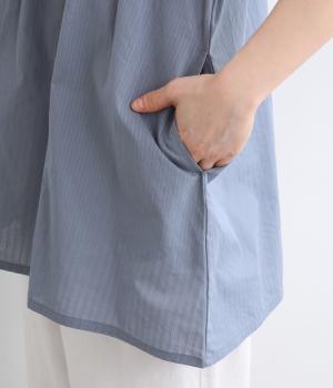 やや薄手ながらほどよいハリを備えたコットン生地にストライプ柄を織り込みました。さりげない柄が奥行きのある表情をつくります。しなやかで上品な雰囲気の素材感です。