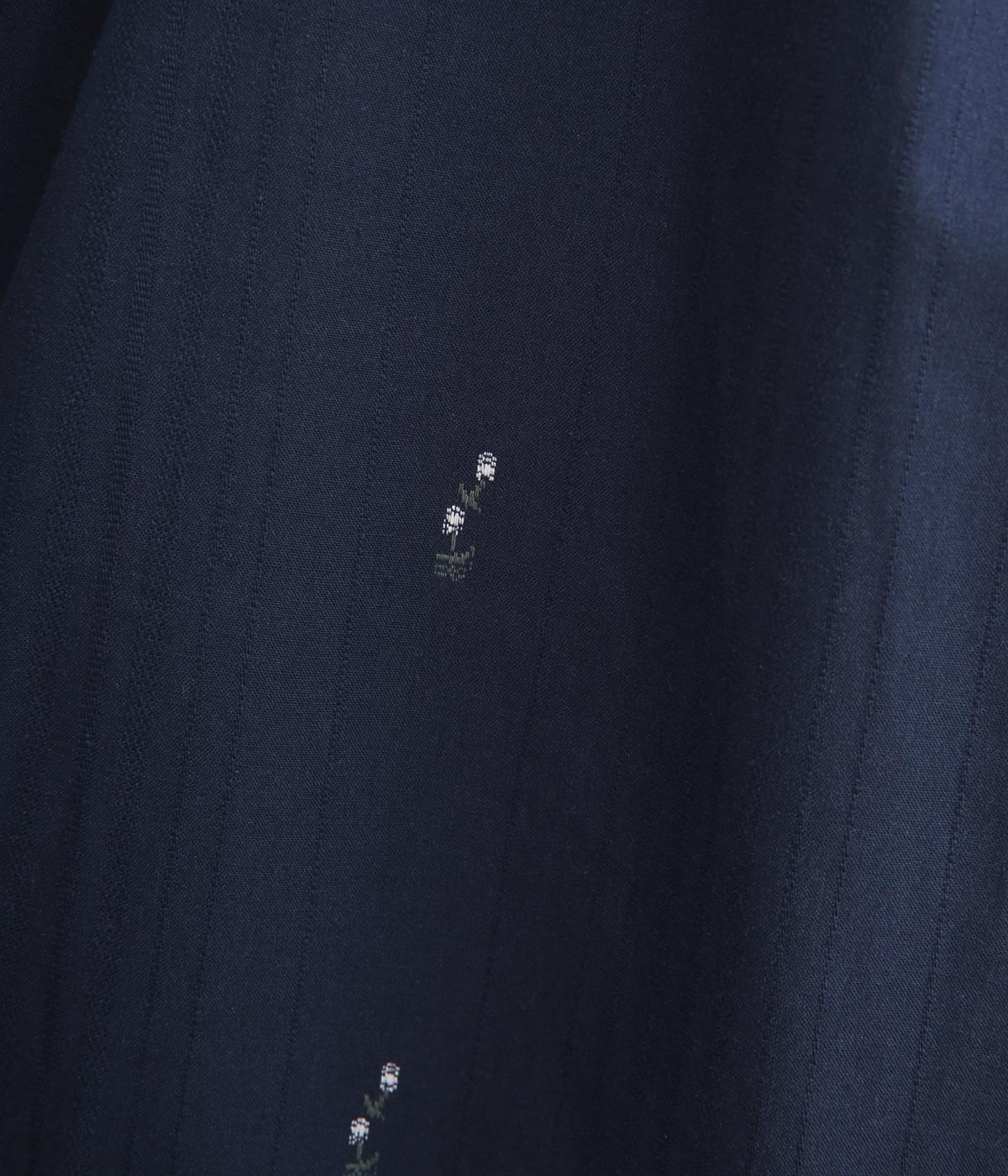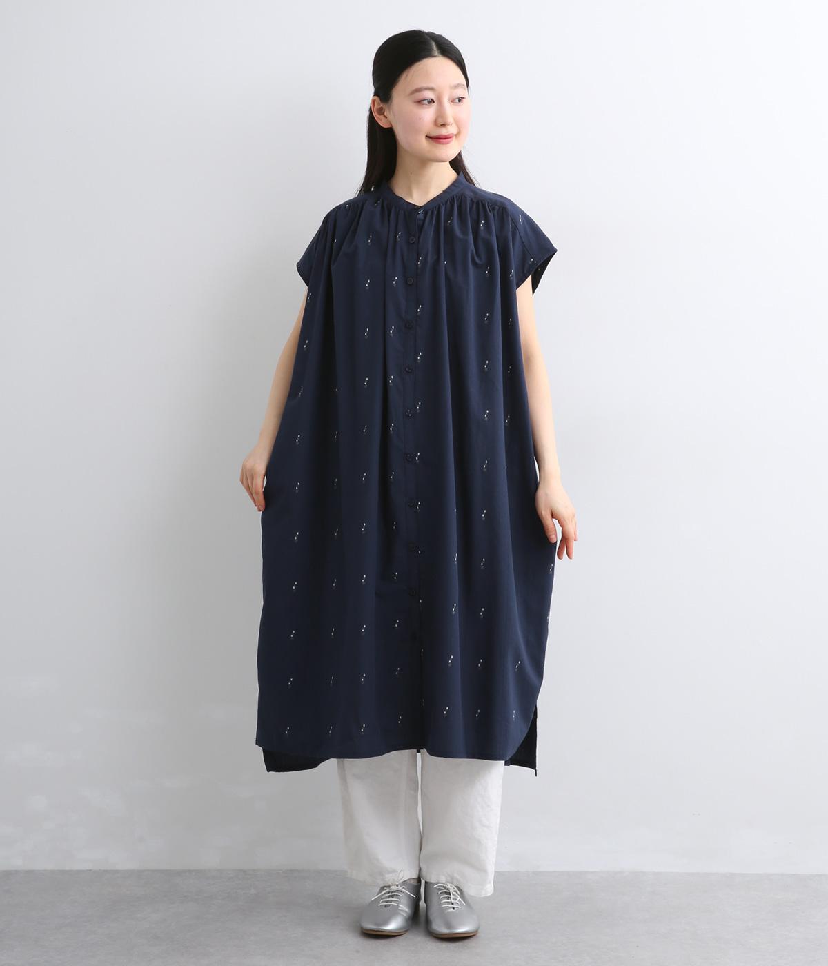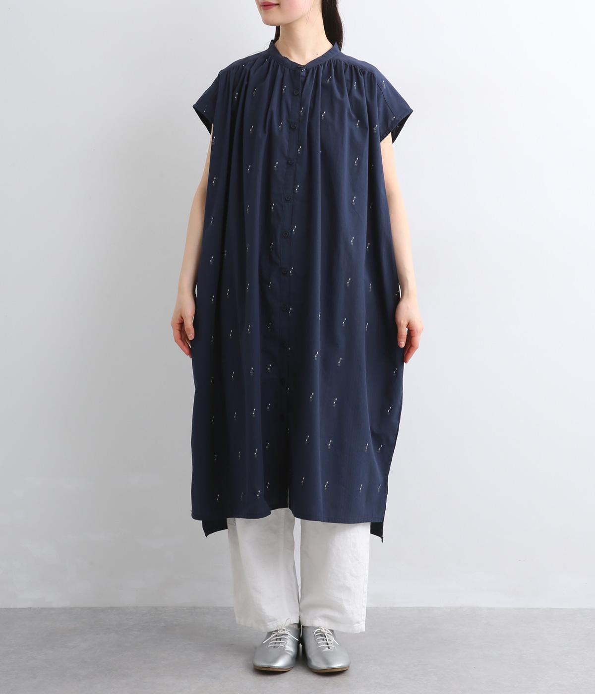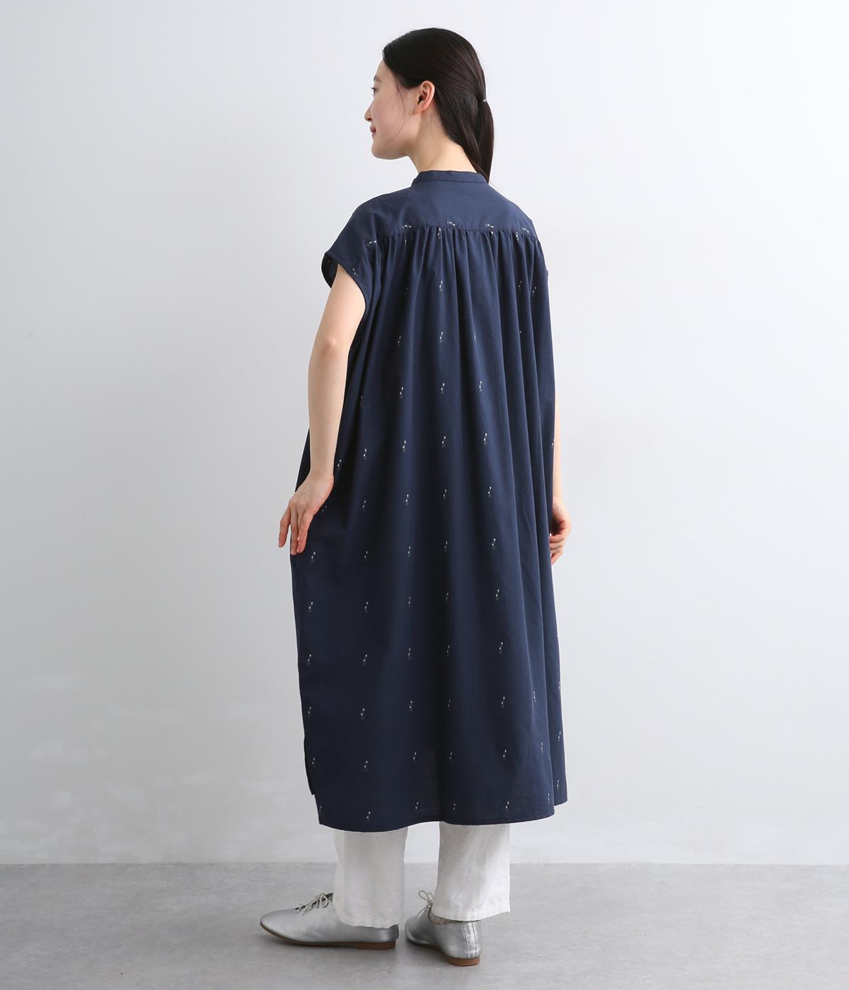 コットンジャカードストライプ×花柄 ギャザーワンピース(ネイビー-F)