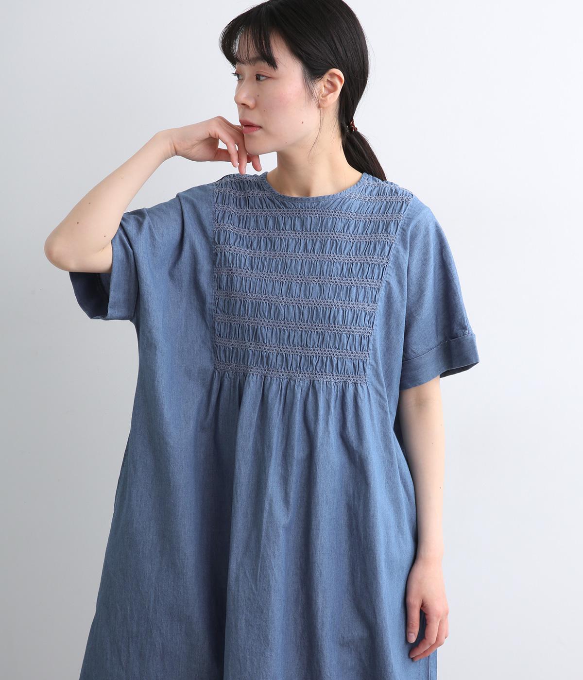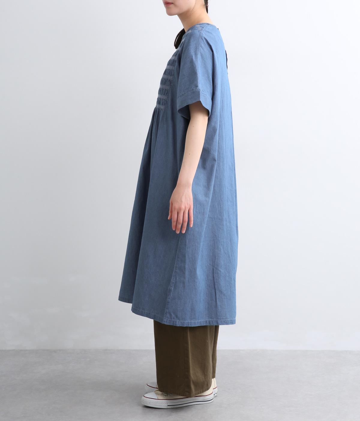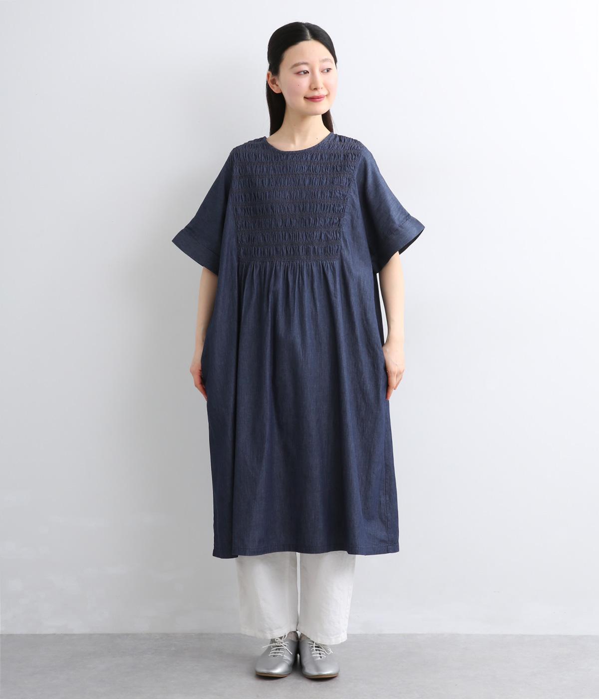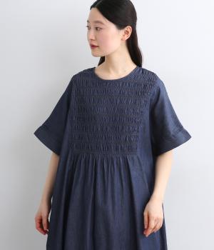 くしゅっとした表情が愛らしい印象のスモッキング刺しゅう。ナチュラルな生地に華やかさを添えて、一枚で着映えするワンピースに仕上がりました。軽やかな生地が落ち感を生み、ドレープの陰影が表情に奥行きを与えます。