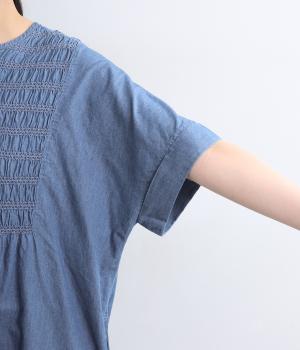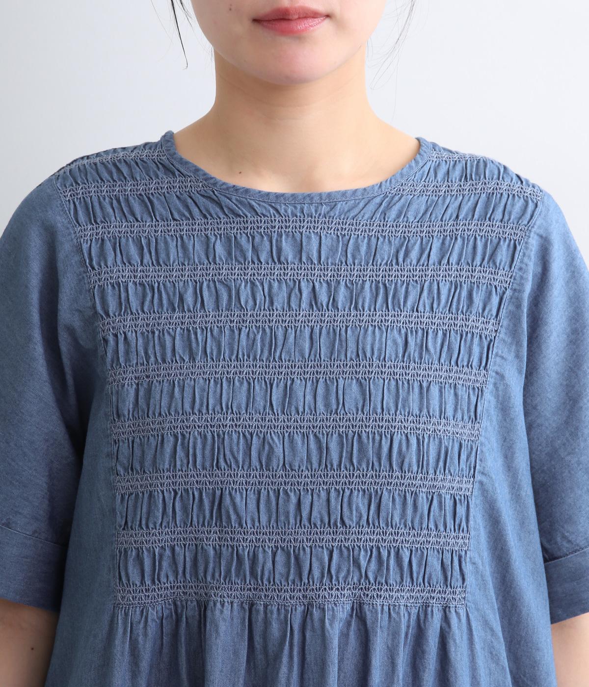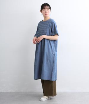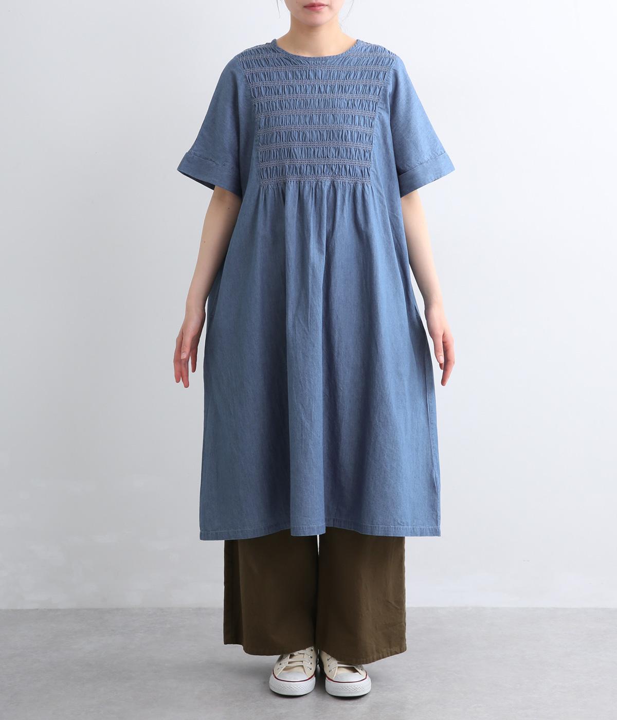 くしゅっとした表情が愛らしい印象のスモッキング刺しゅう。ナチュラルな生地に華やかさを添えて、一枚で着映えするワンピースに仕上がりました。軽やかな生地が落ち感を生み、ドレープの陰影が表情に奥行きを与えます。