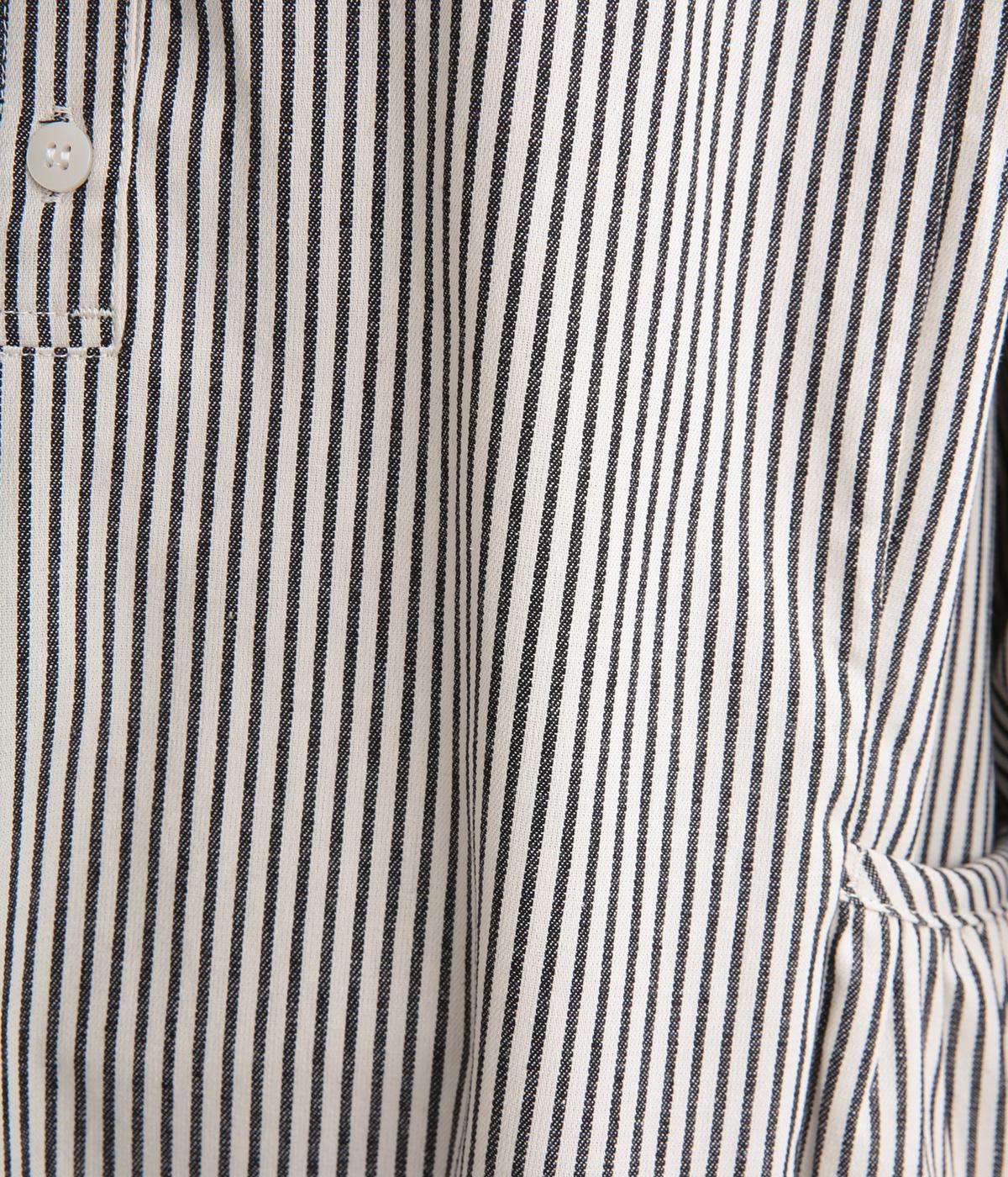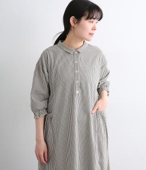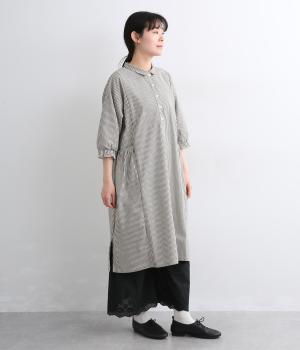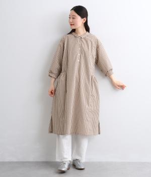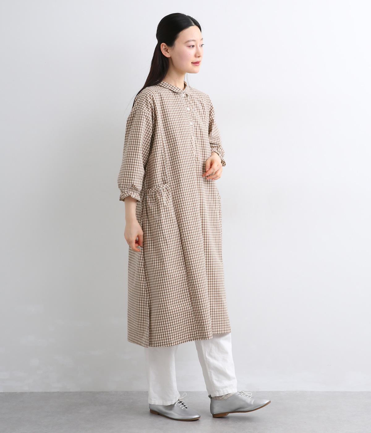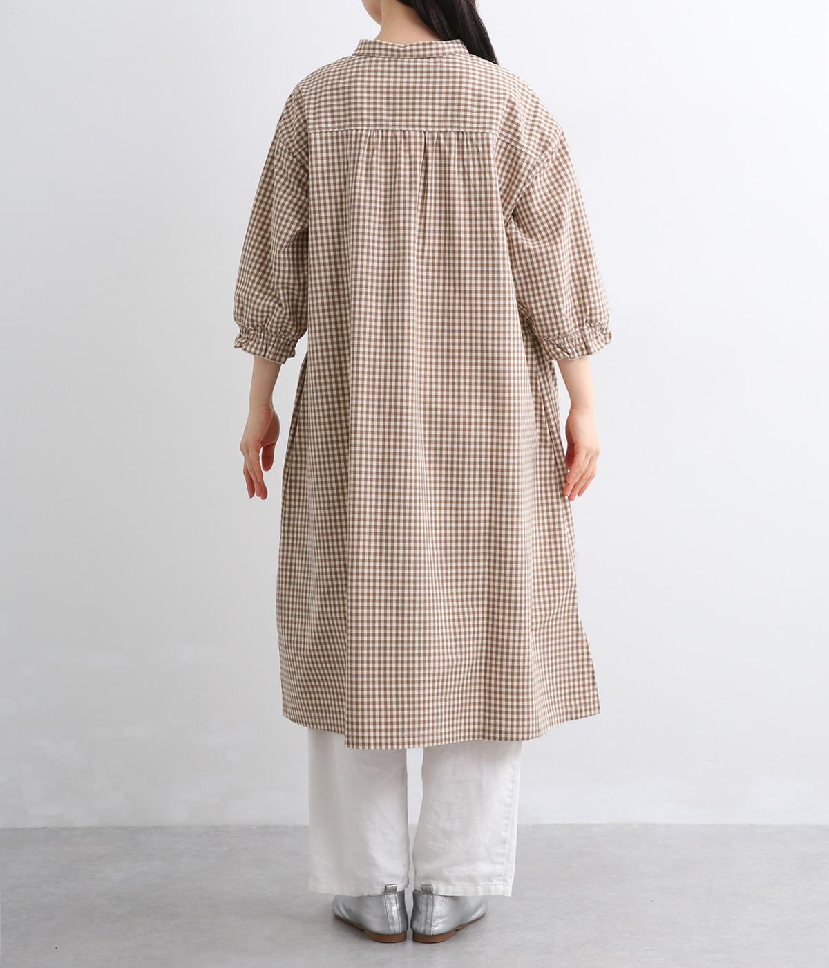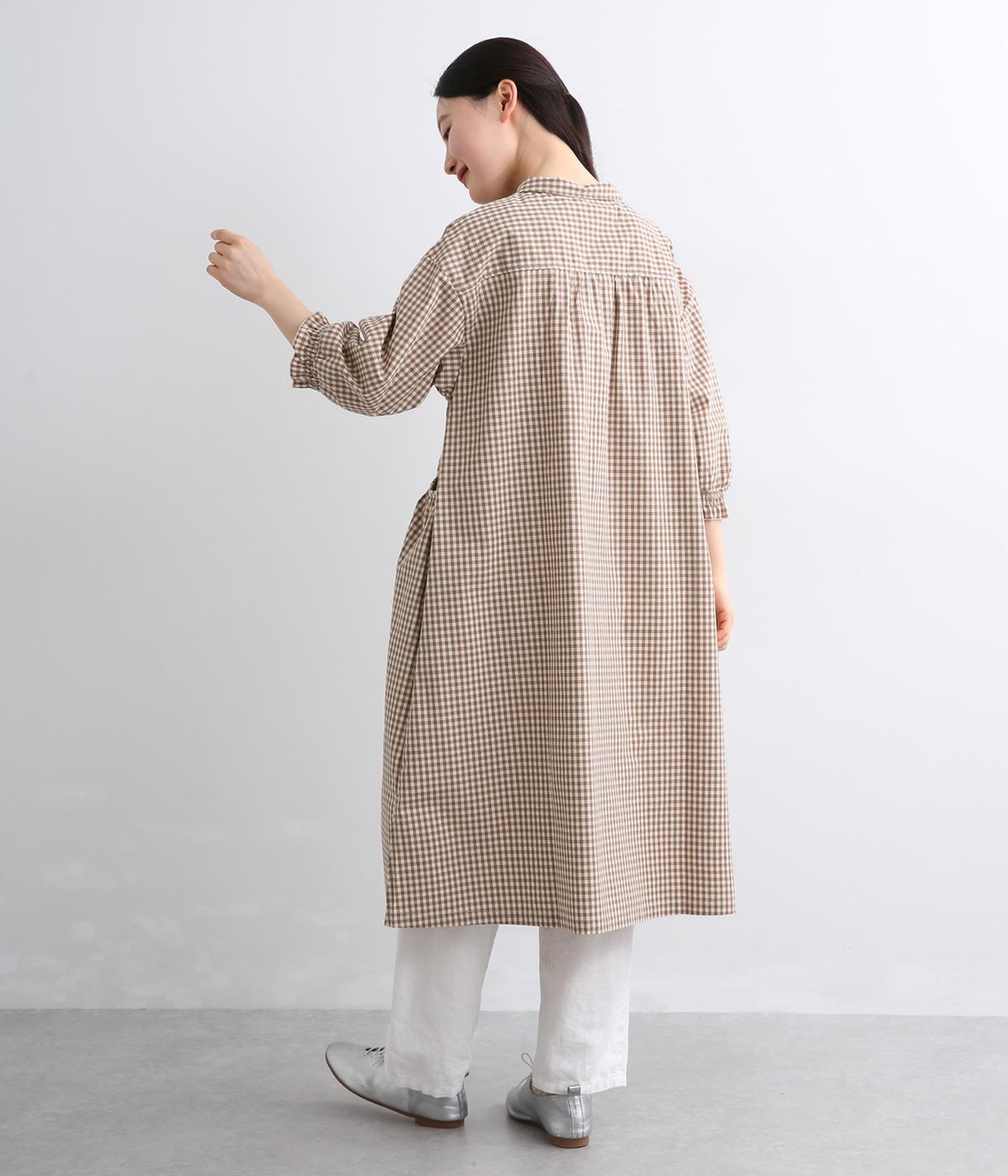 袖口とポケットに寄せたギャザーがかわいらしさを添えるワンピース。コットンデニムの素材感やヘンリーネックが大人のデイリーカジュアルに寄り添います。七分袖やサイドスリットでほどよい抜け感を加え、レイヤードスタイルにもおすすめの一枚です。