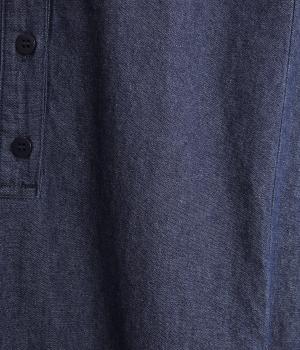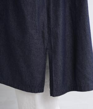 しなやかなハリのあるほどよい厚みのコットンデニム生地。洗いざらしのような自然な風合いで、はじめからかたさの少ないやさしい肌あたりです。ネイビーはインディゴ染めの奥行きある色合いです。