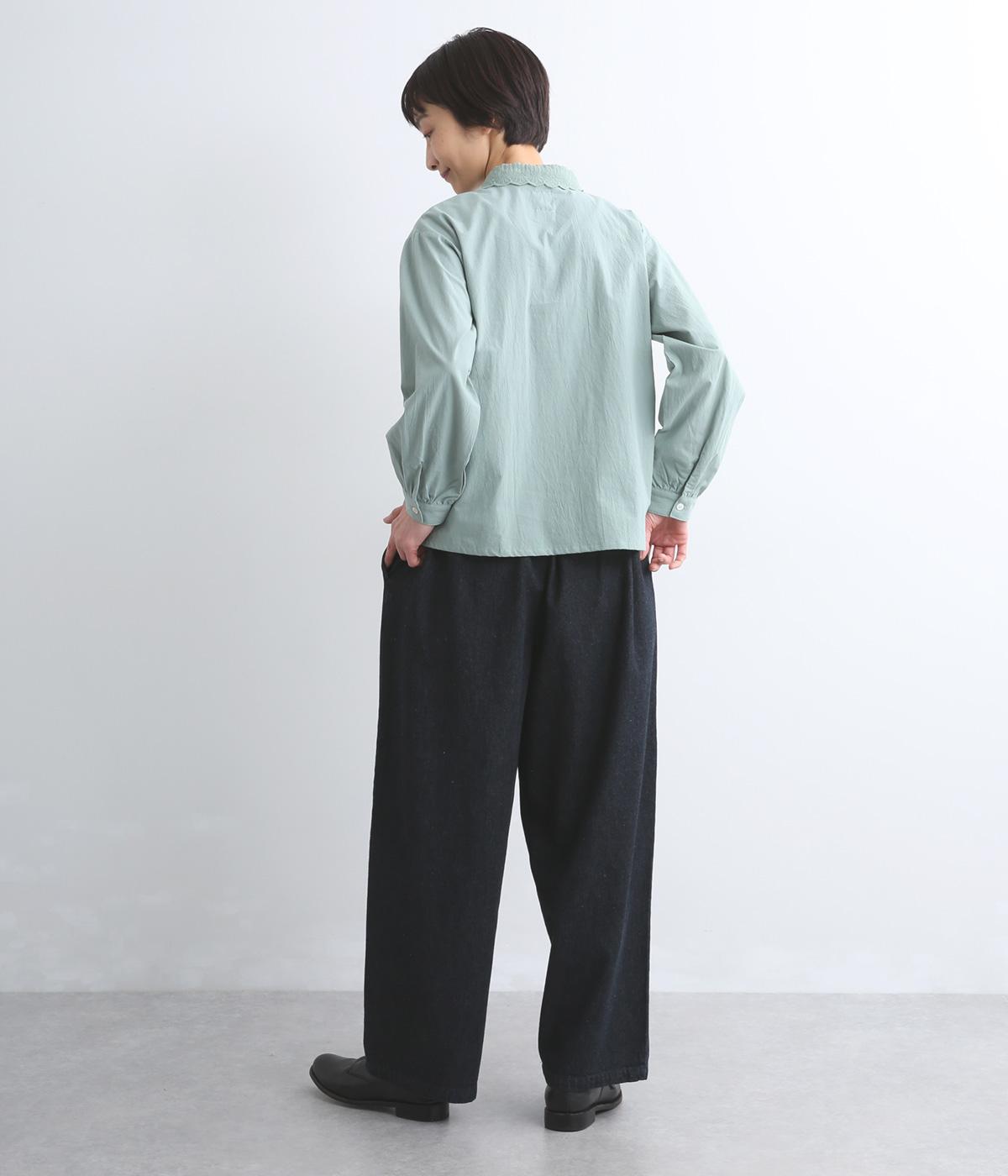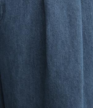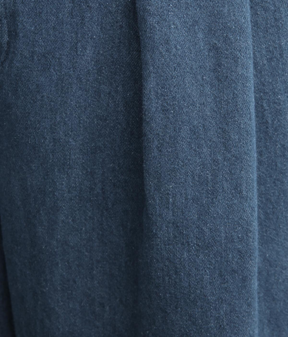 デニムらしいタフさとコットンのやわらかさを感じさせる中厚手生地仕立て。着用初期から肌なじみがよく、インディゴ染めならではのエイジングもたのしめます。