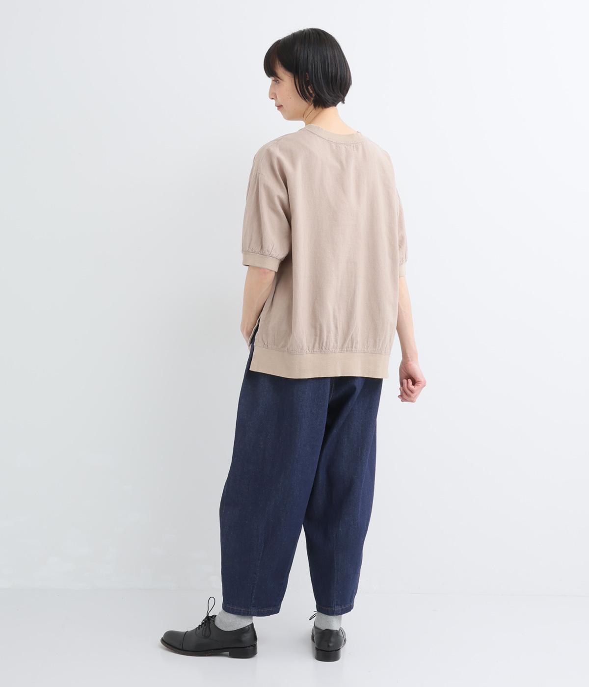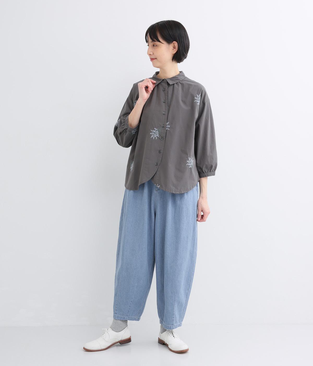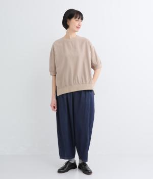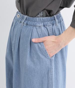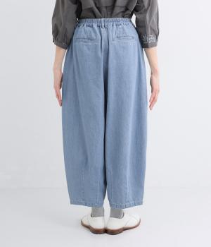 生地を甘織りにした、やわらかなソフトデニム生地です。ふんわりとソフトな肌ざわりで、やわらかな穿き心地です。洗いをかけたナチュラルな風合いが魅力です。