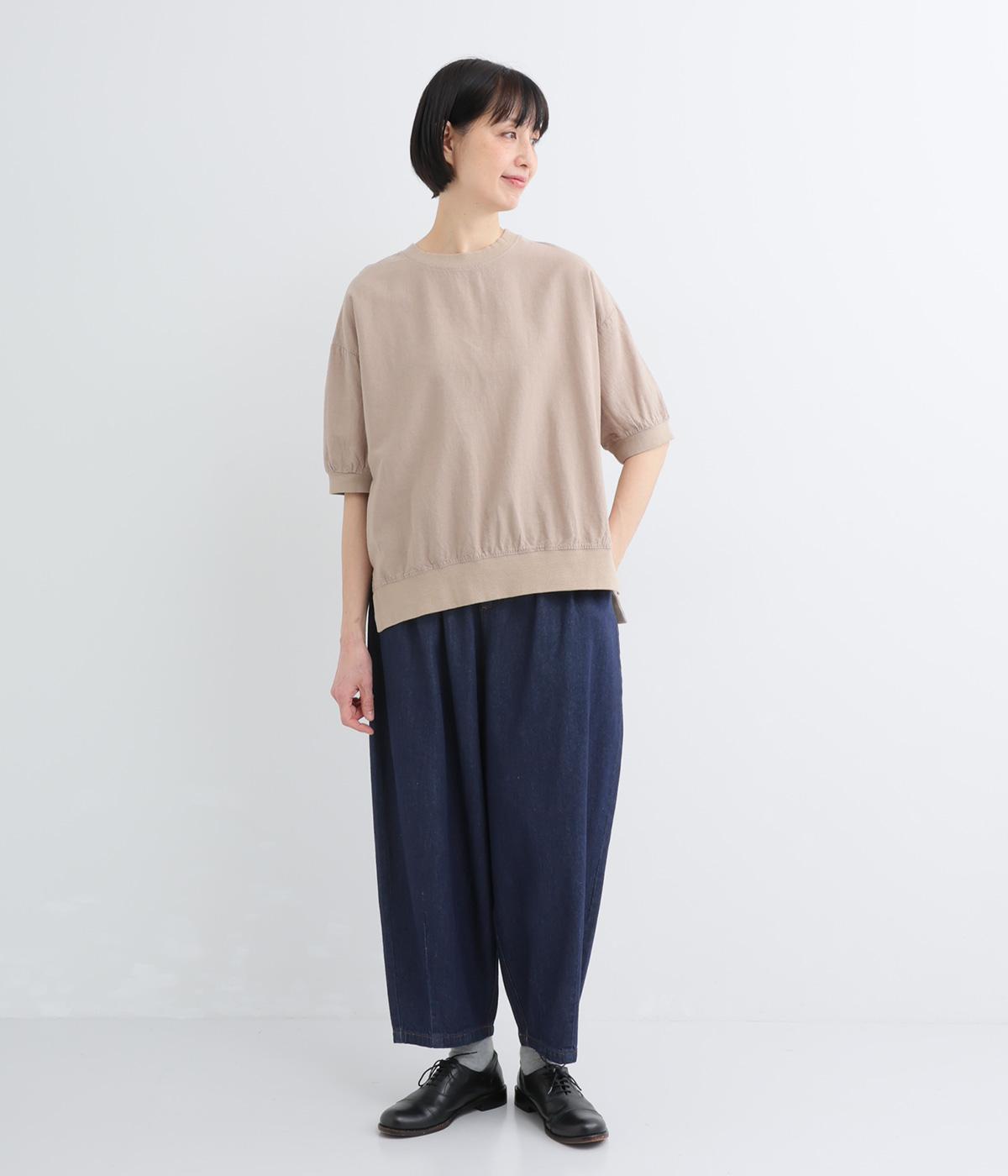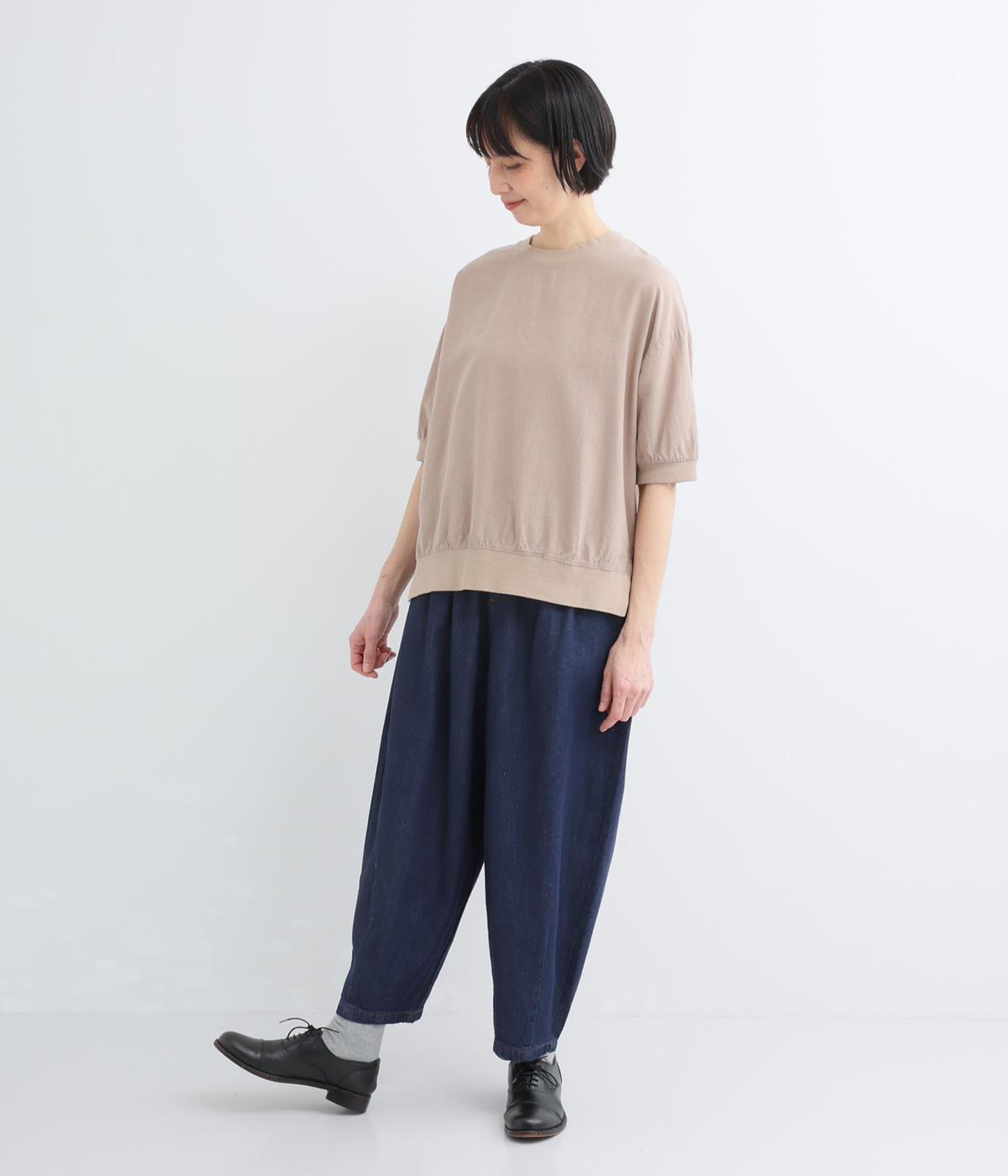 体のラインを拾いにくい、タック入りのバルーンシルエット。9分丈に仕立てた軽やかなバランスが足元に抜け感をもたらし、シューズやソックスとのコーディネートを楽しめます。ウエストは総ゴムに前ファスナーを備え、安心感のある穿き心地です。
