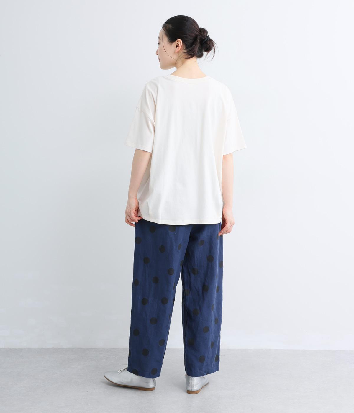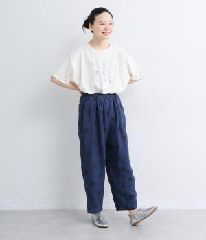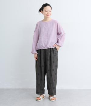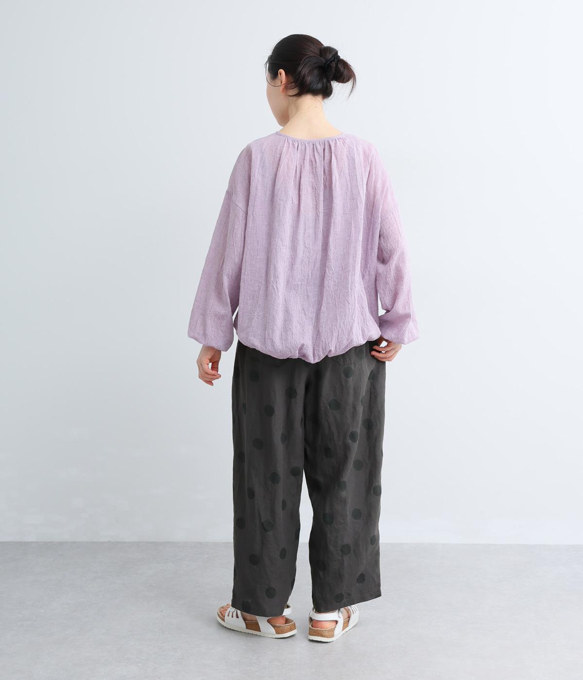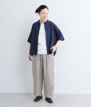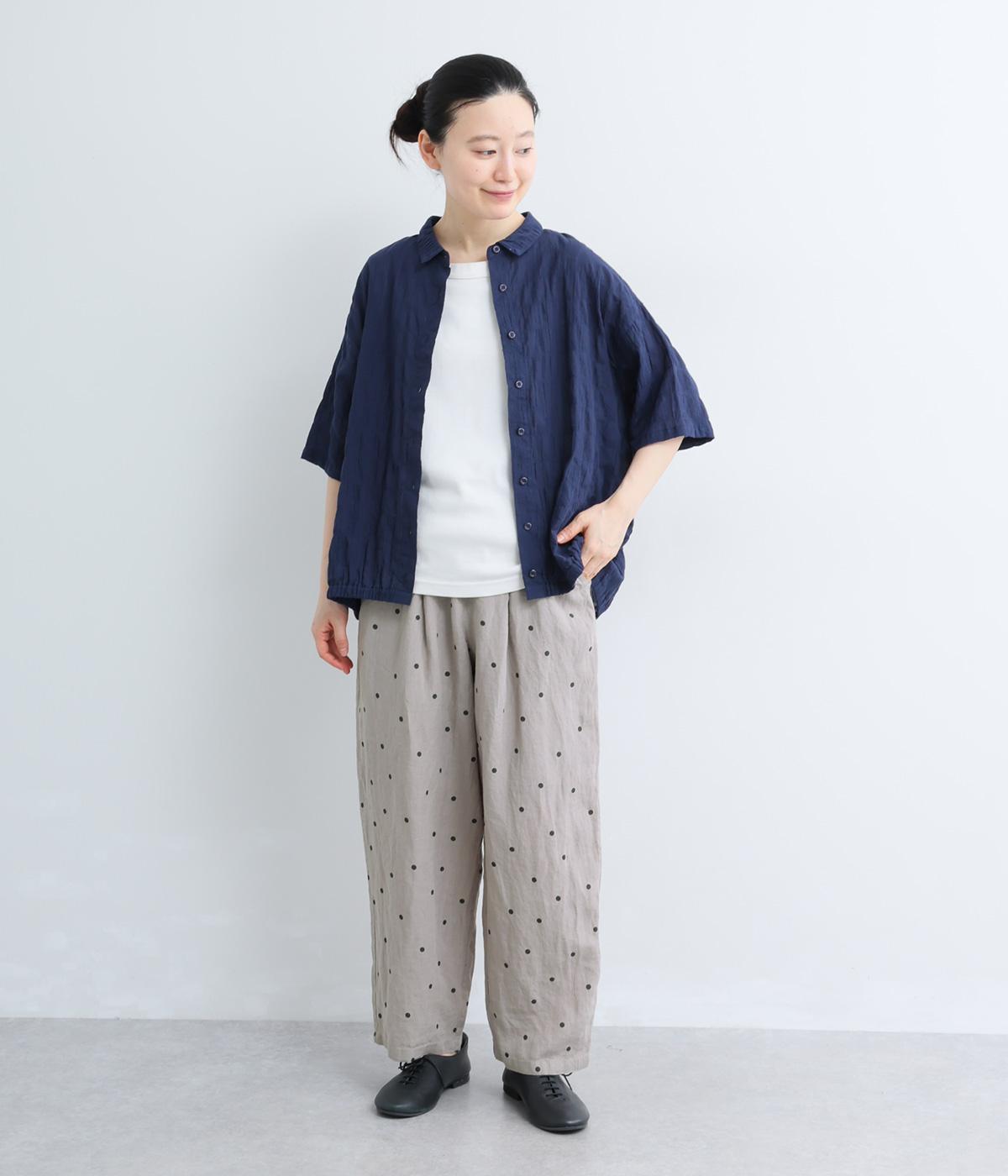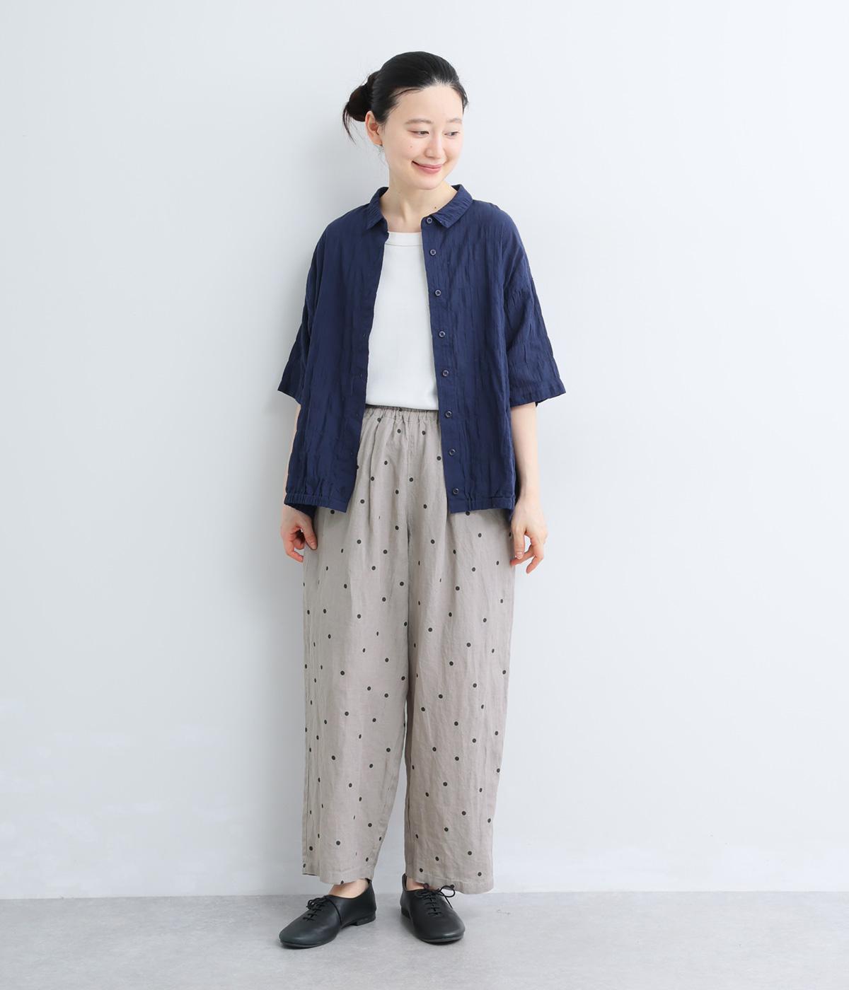 先染めコットン裾ゴム入り前あきブラウス(ネイビー)